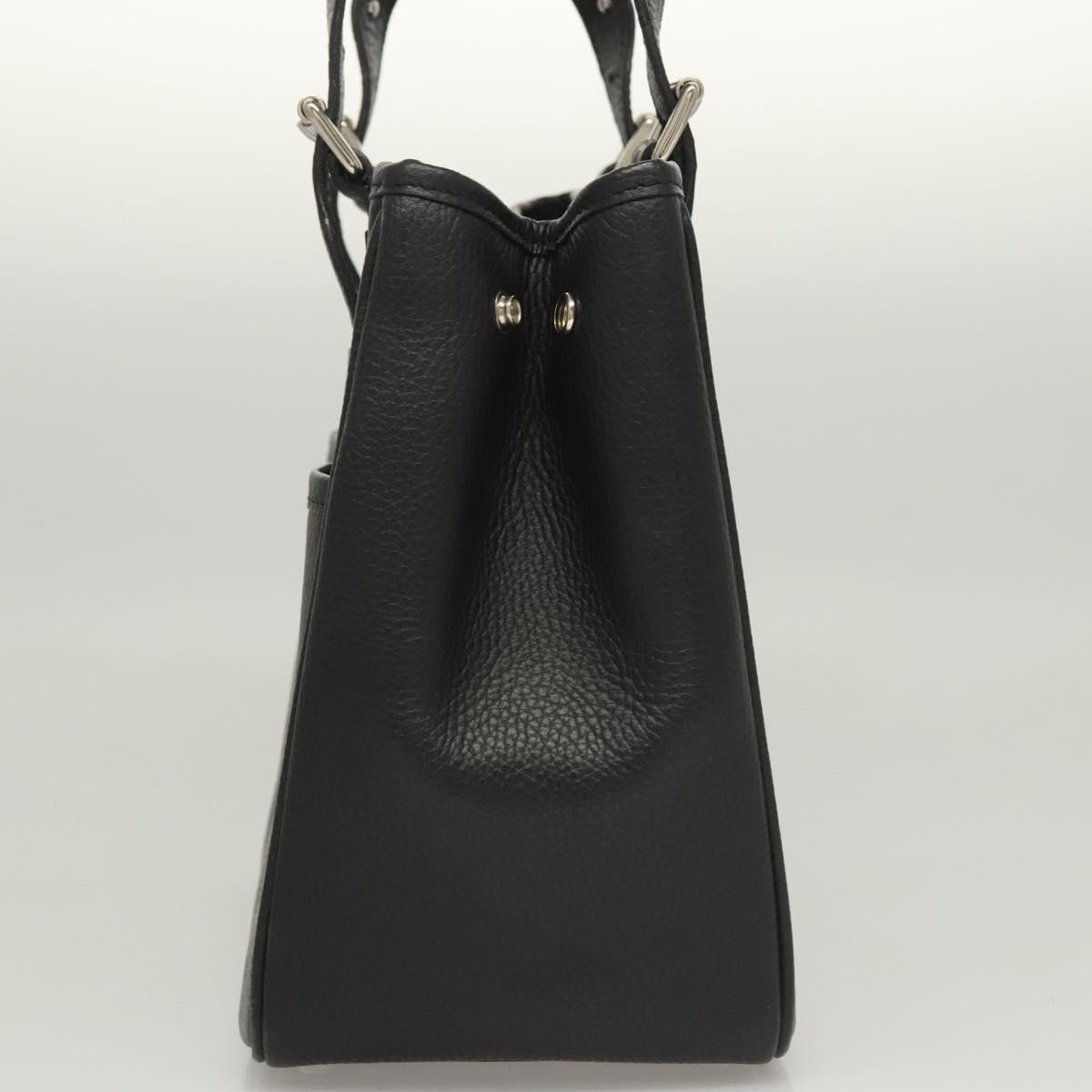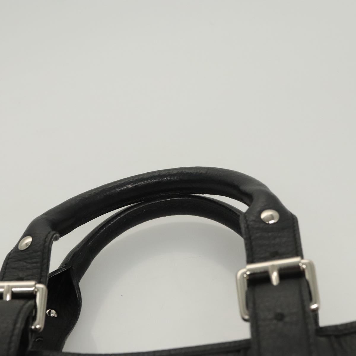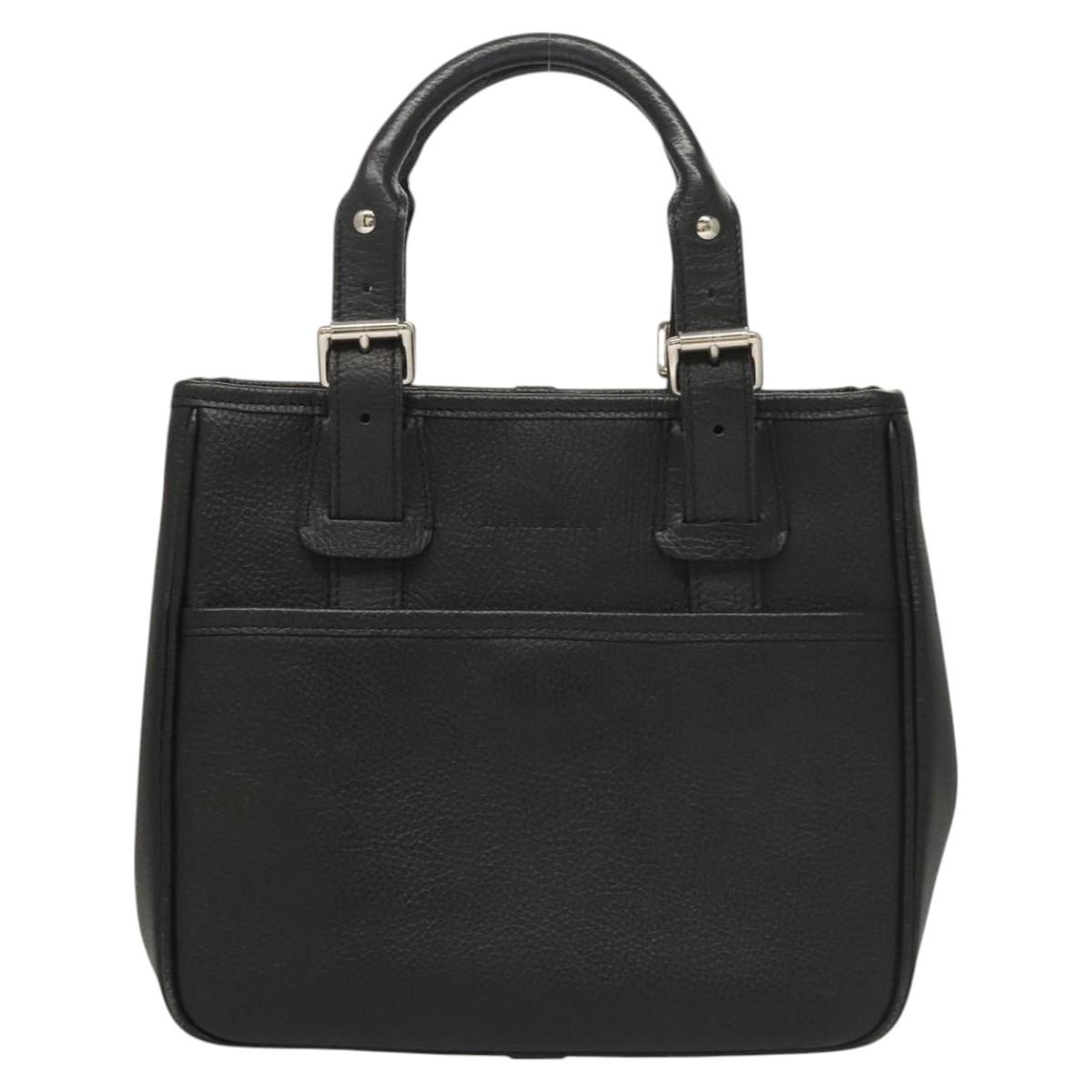 BURBERRY Hand Bag Leather Black Silver Auth BA1908
