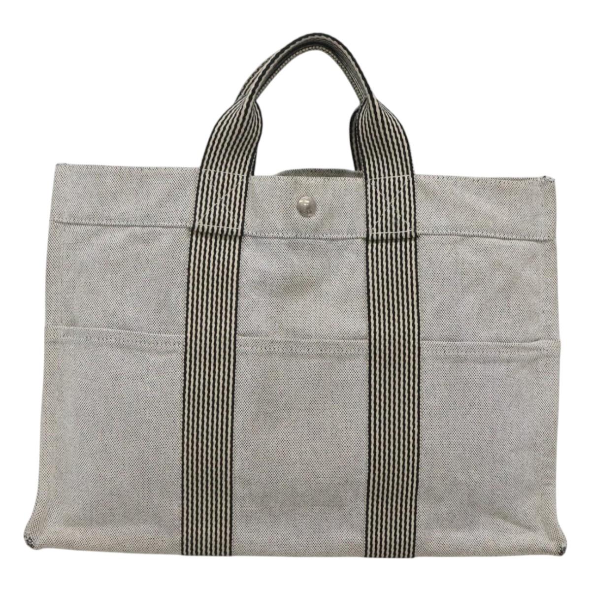 HERMES New Fourre Tout MM Hand Bag Canvas Gray Silver Auth bs25765