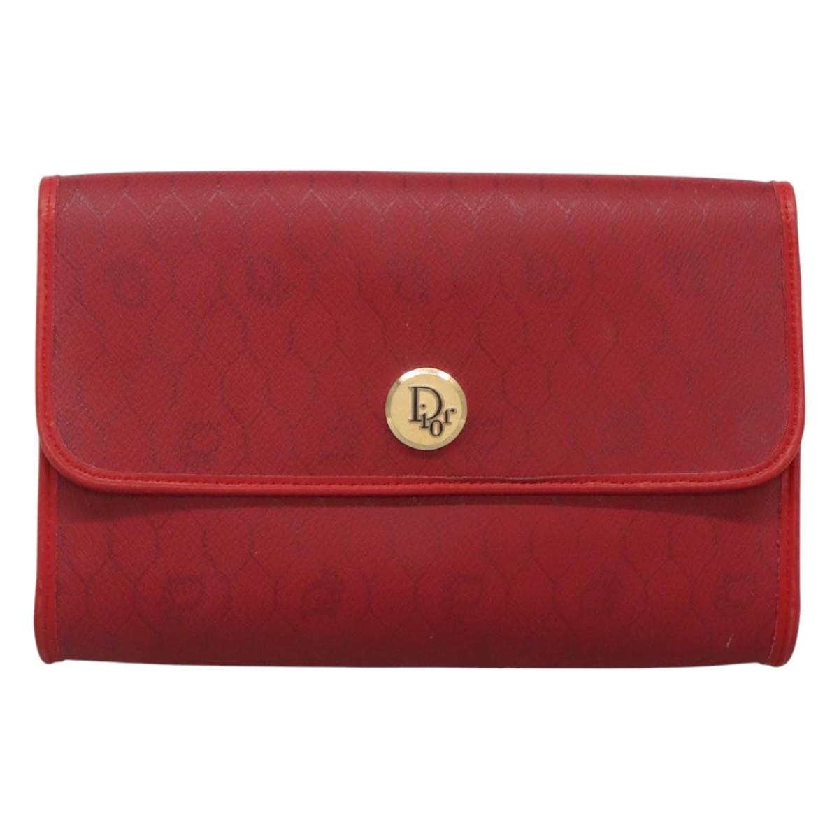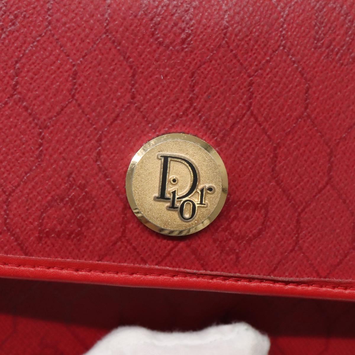 Christian Dior Honeycomb Canvas Chain Shoulder Bag PVC Red Gold Auth MX492