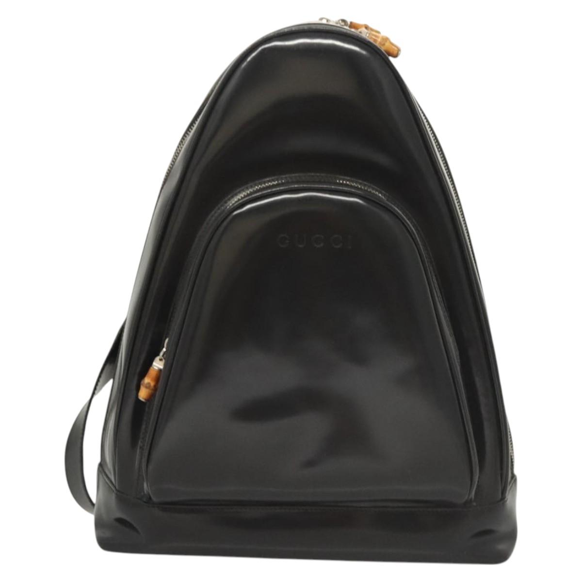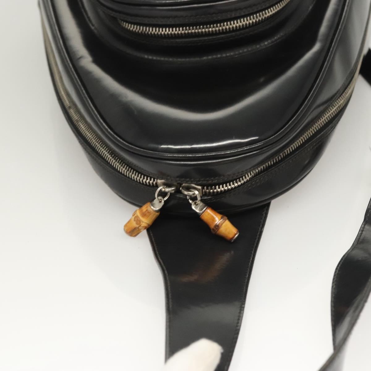 GUCCI Bamboo Shoulder Bag Enamel Black Silver 003 3444 0027 Auth am8391