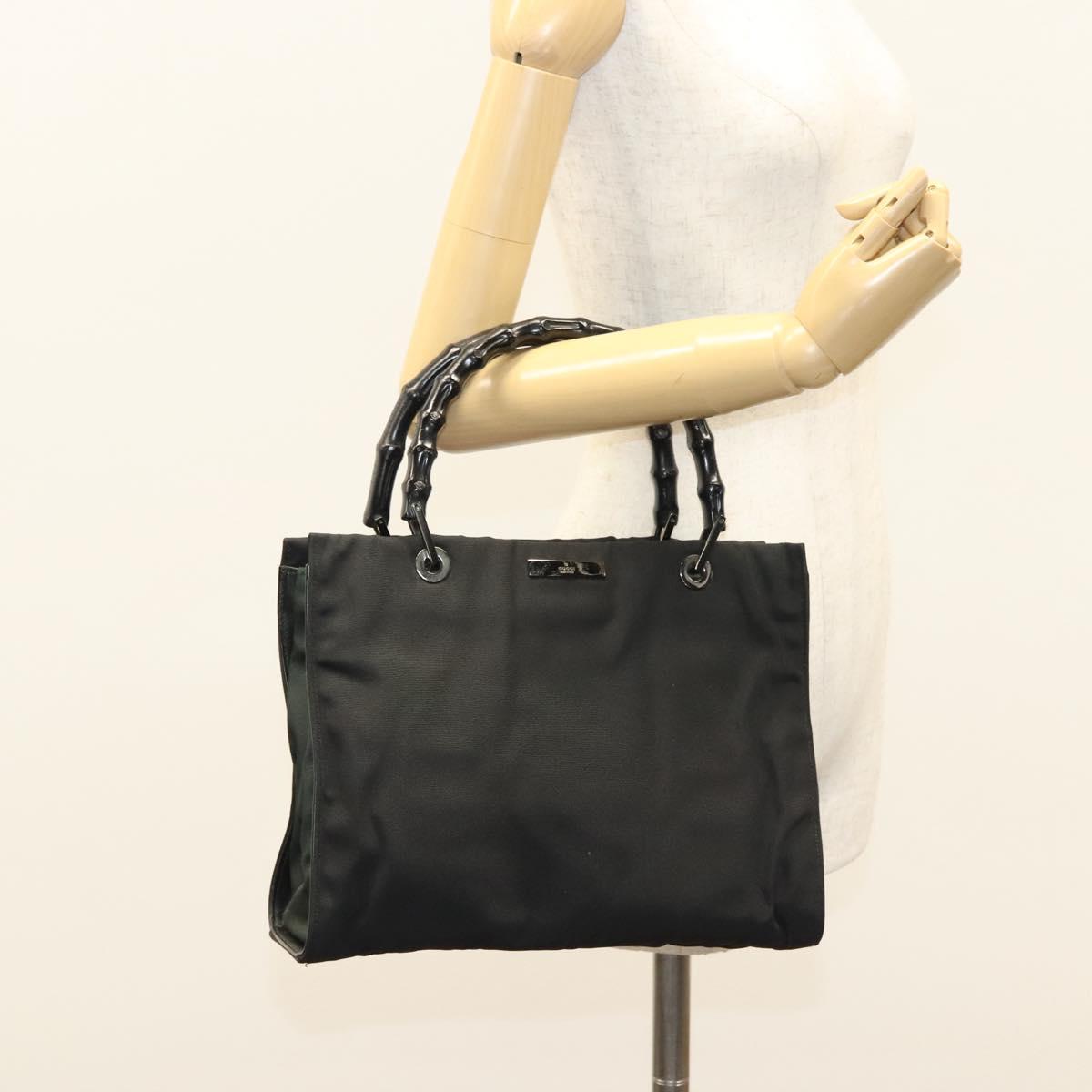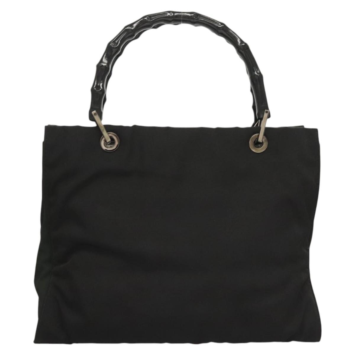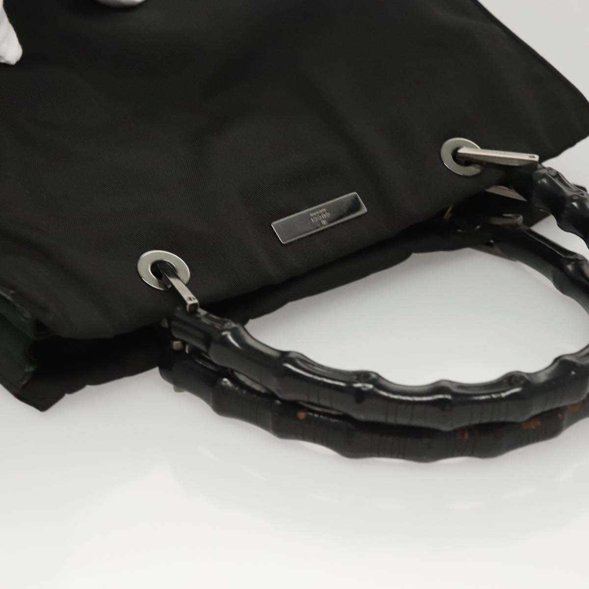 GUCCI Bamboo Hand Bag Nylon Black Silver 032 1016 Auth ep9066