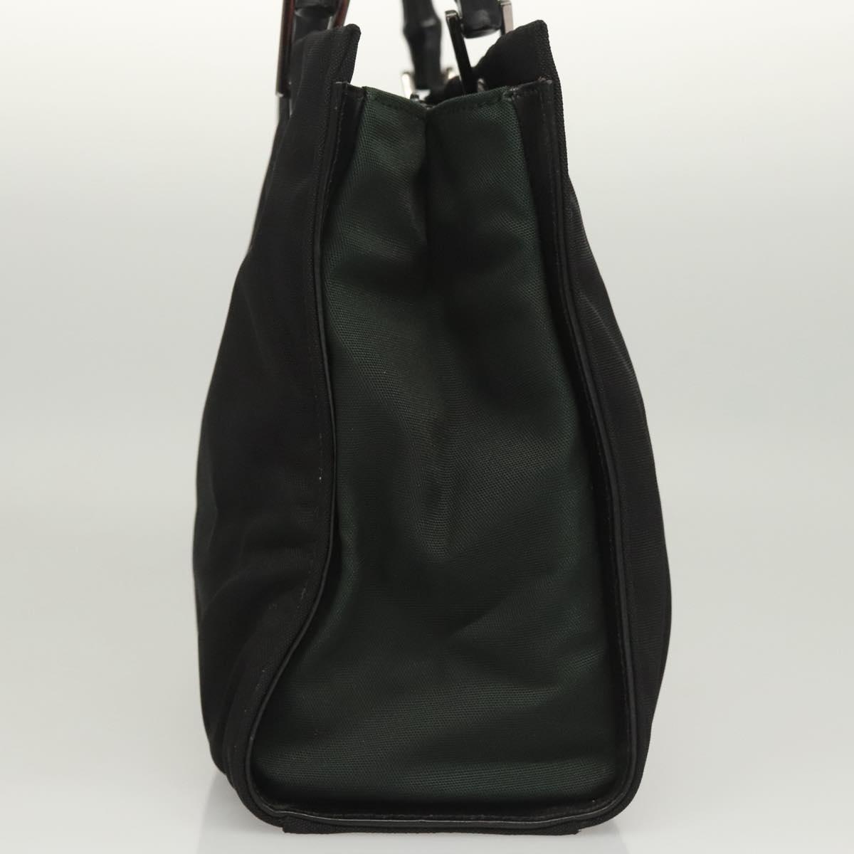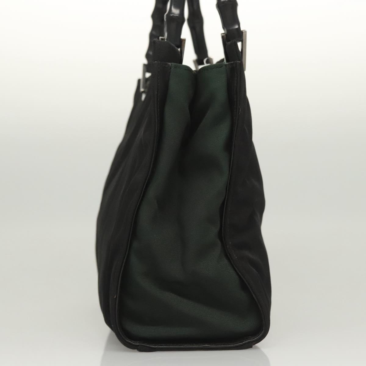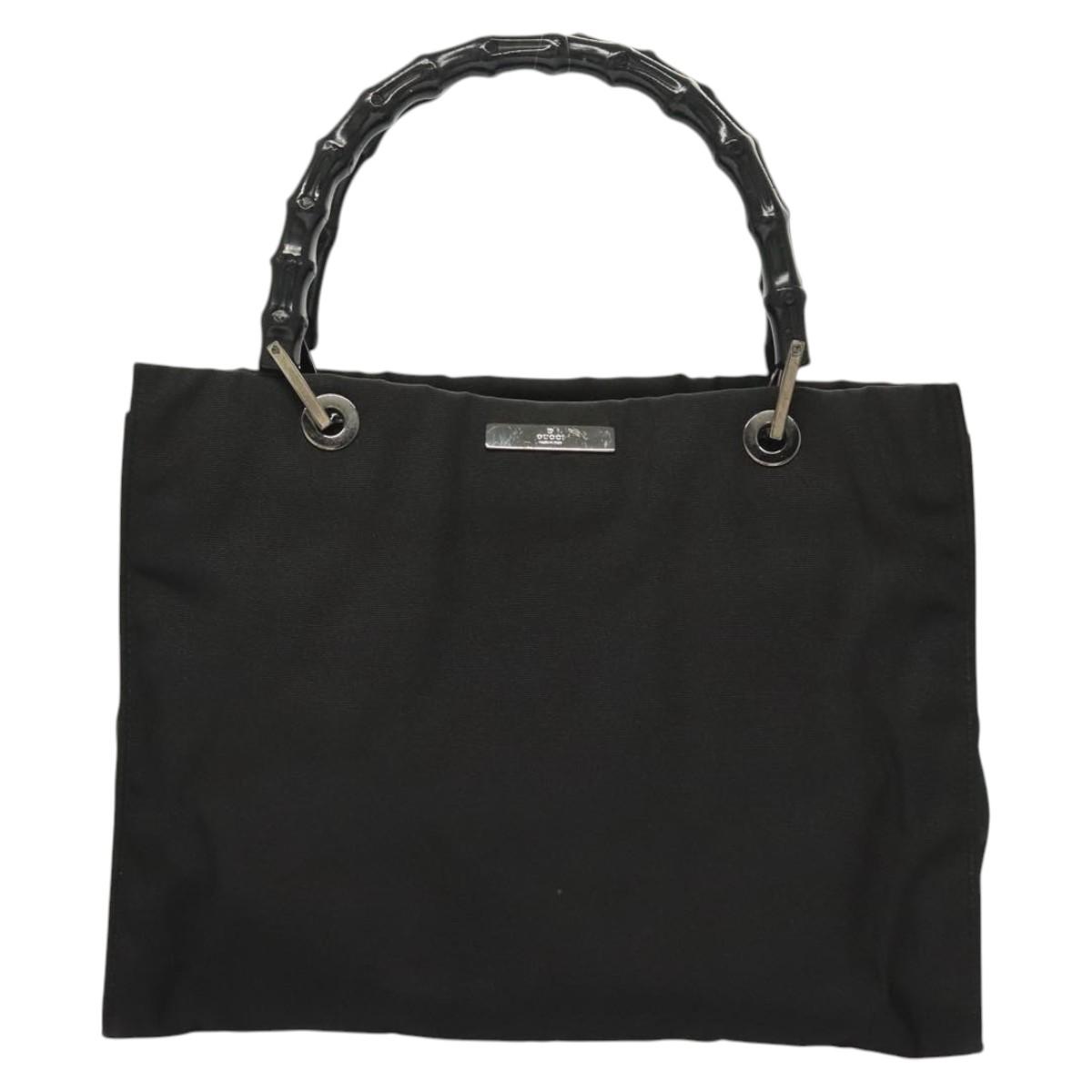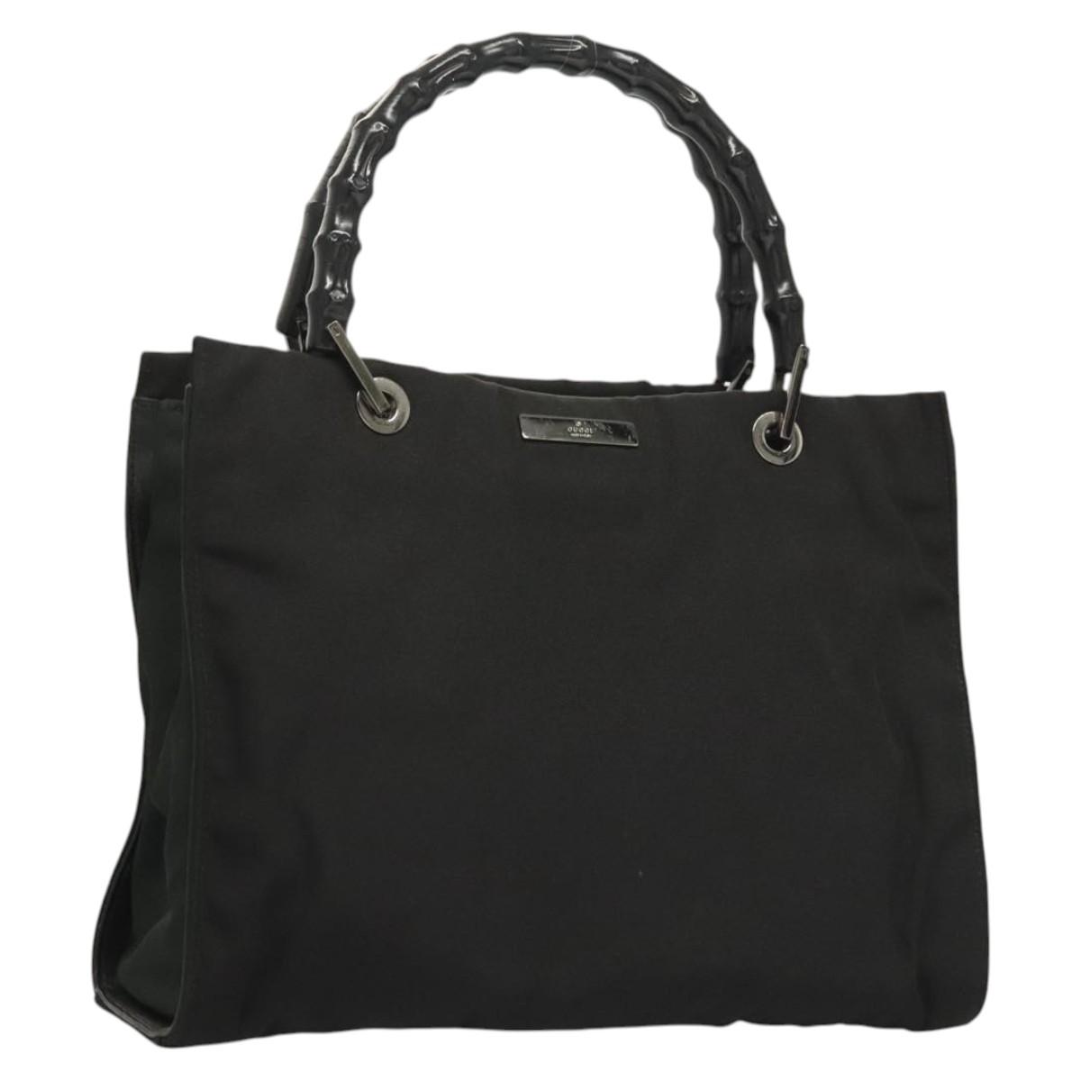 GUCCI Bamboo Hand Bag Nylon Black Silver 032 1016 Auth ep9066
