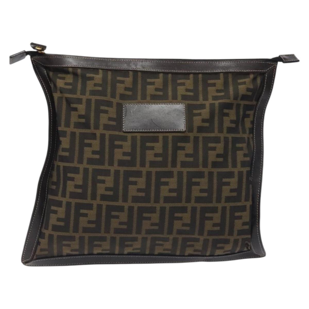 FENDI Zucca Canvas Pouch Black Brown Auth ep9276
