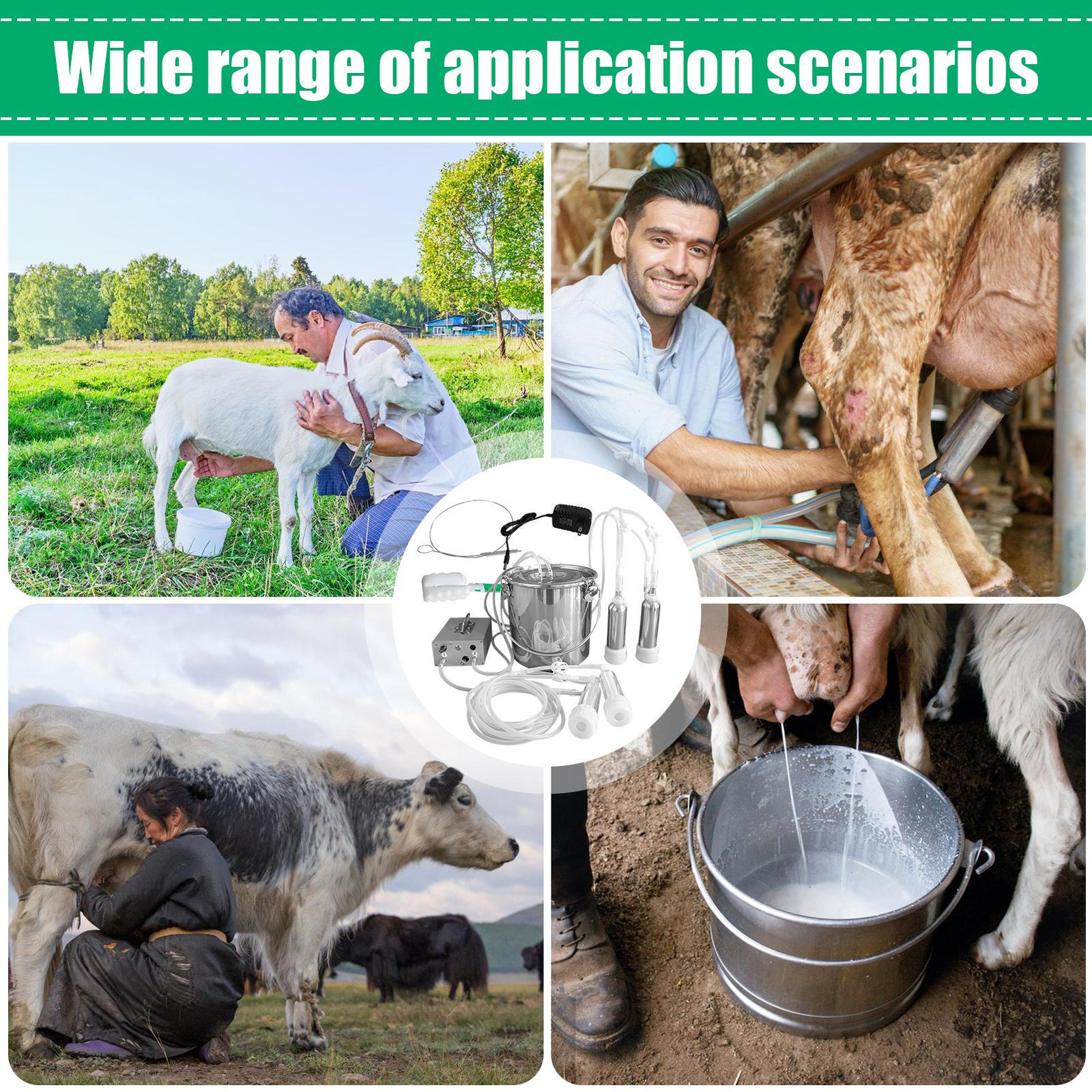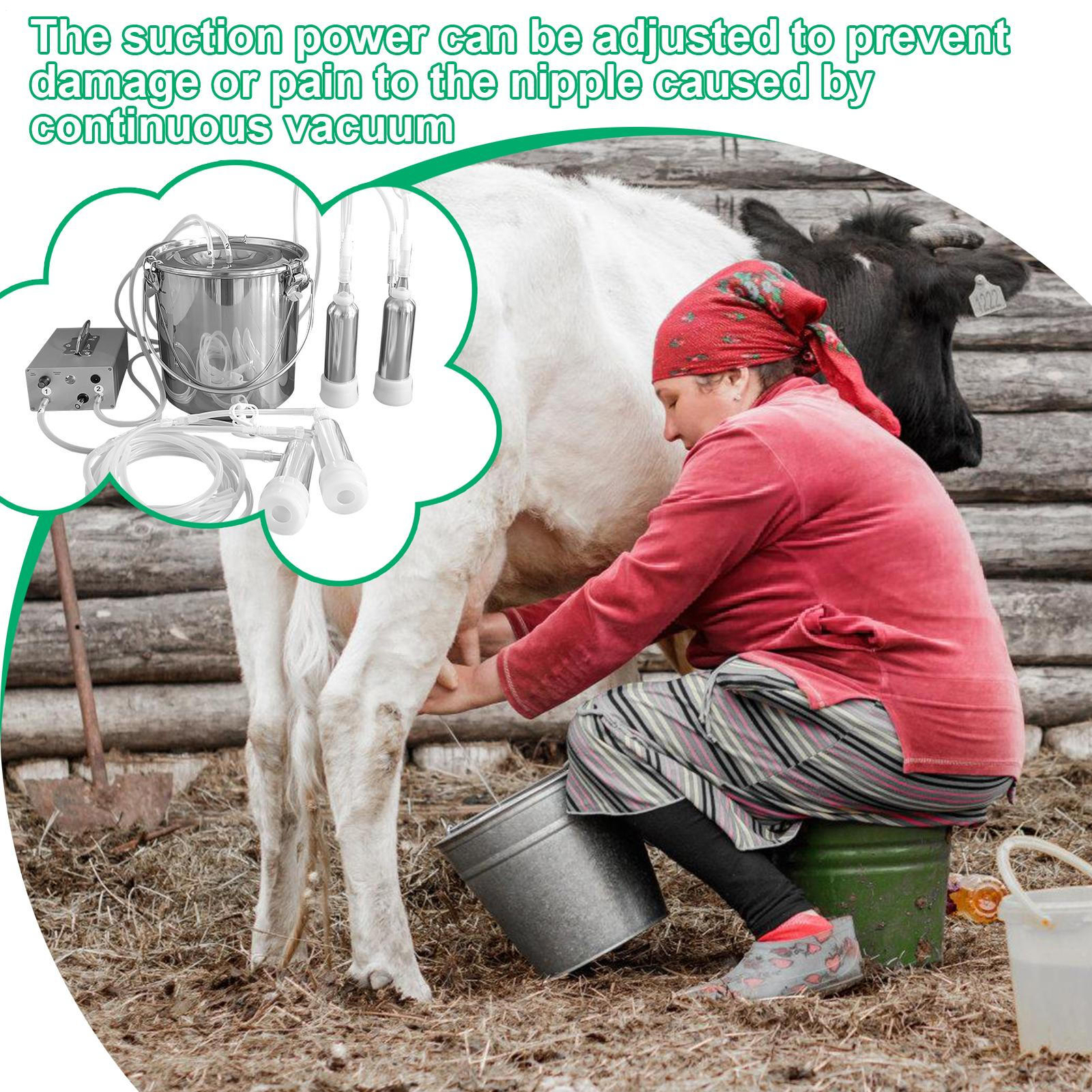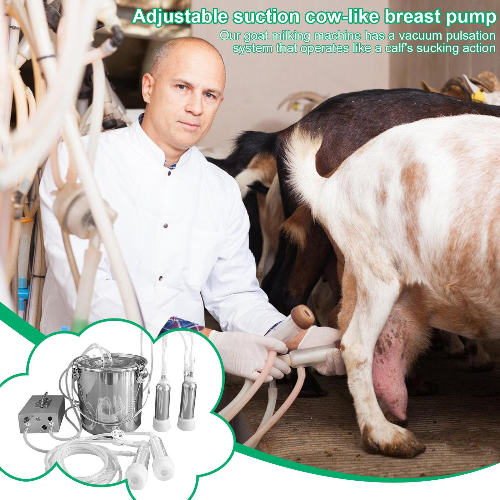 Wide Uses: With the capability to milk cows and goats, this goat milker is a versatile solution for farms and homes, offering wide range of usage scenarios. Can be used for cows or goats on farms and at homes.