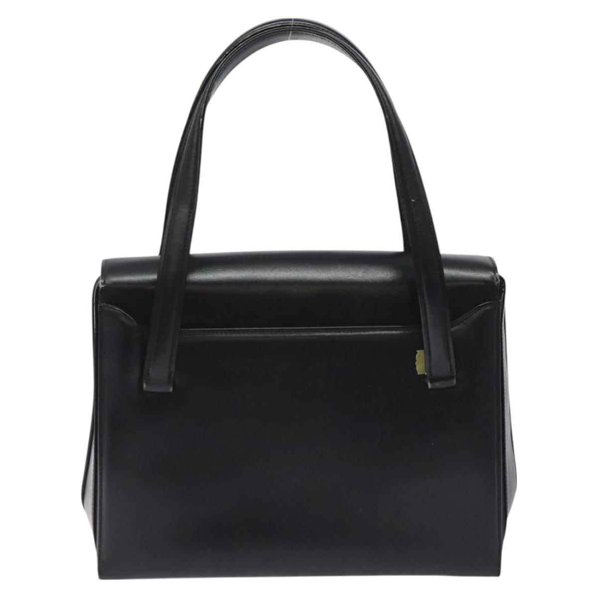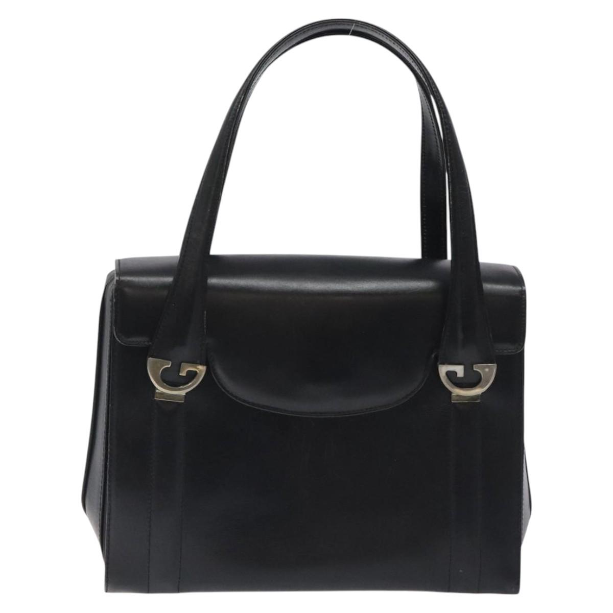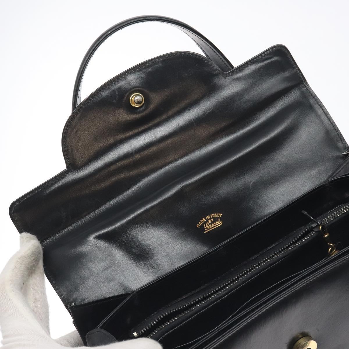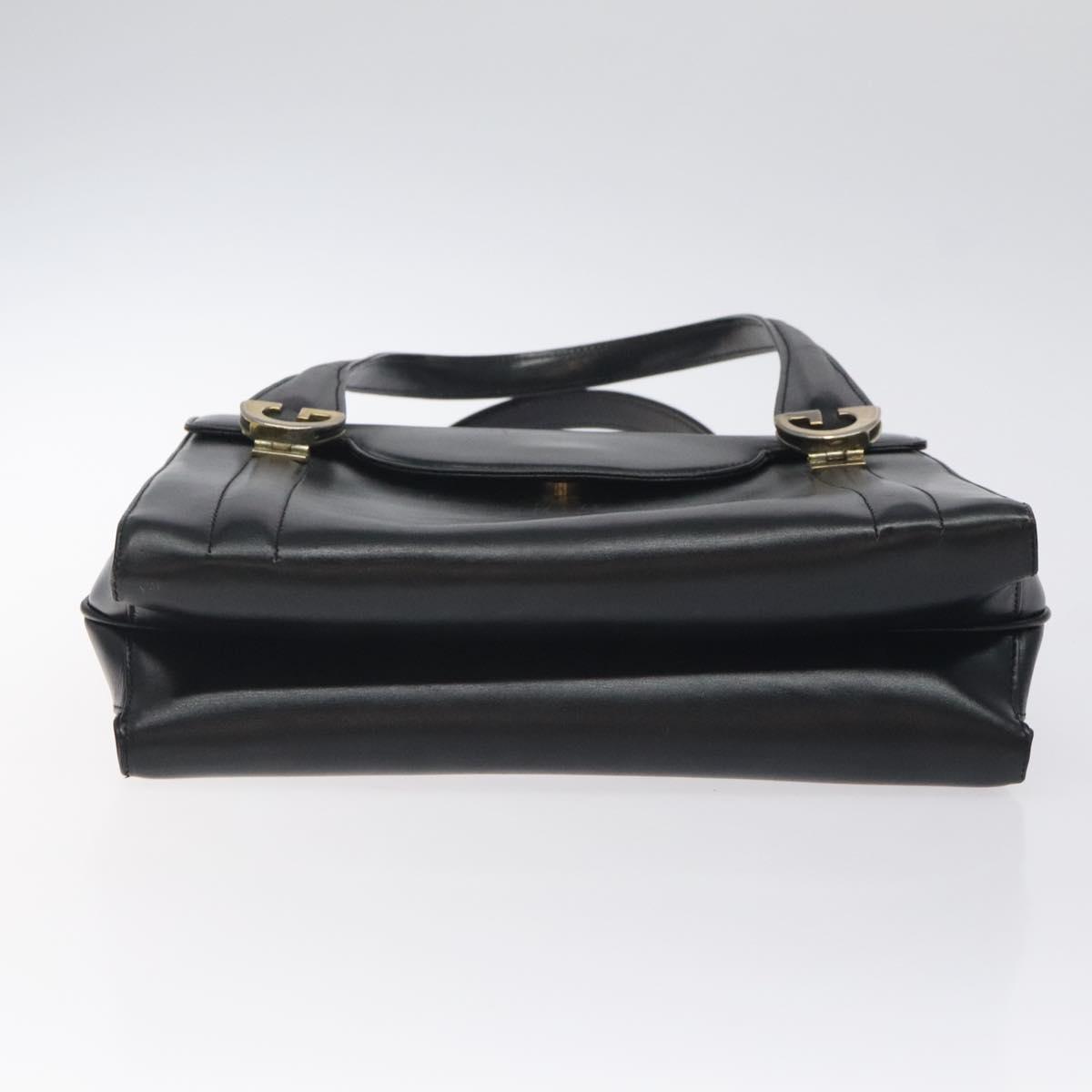 GUCCI Hand Bag Leather Black Gold Auth ep9297