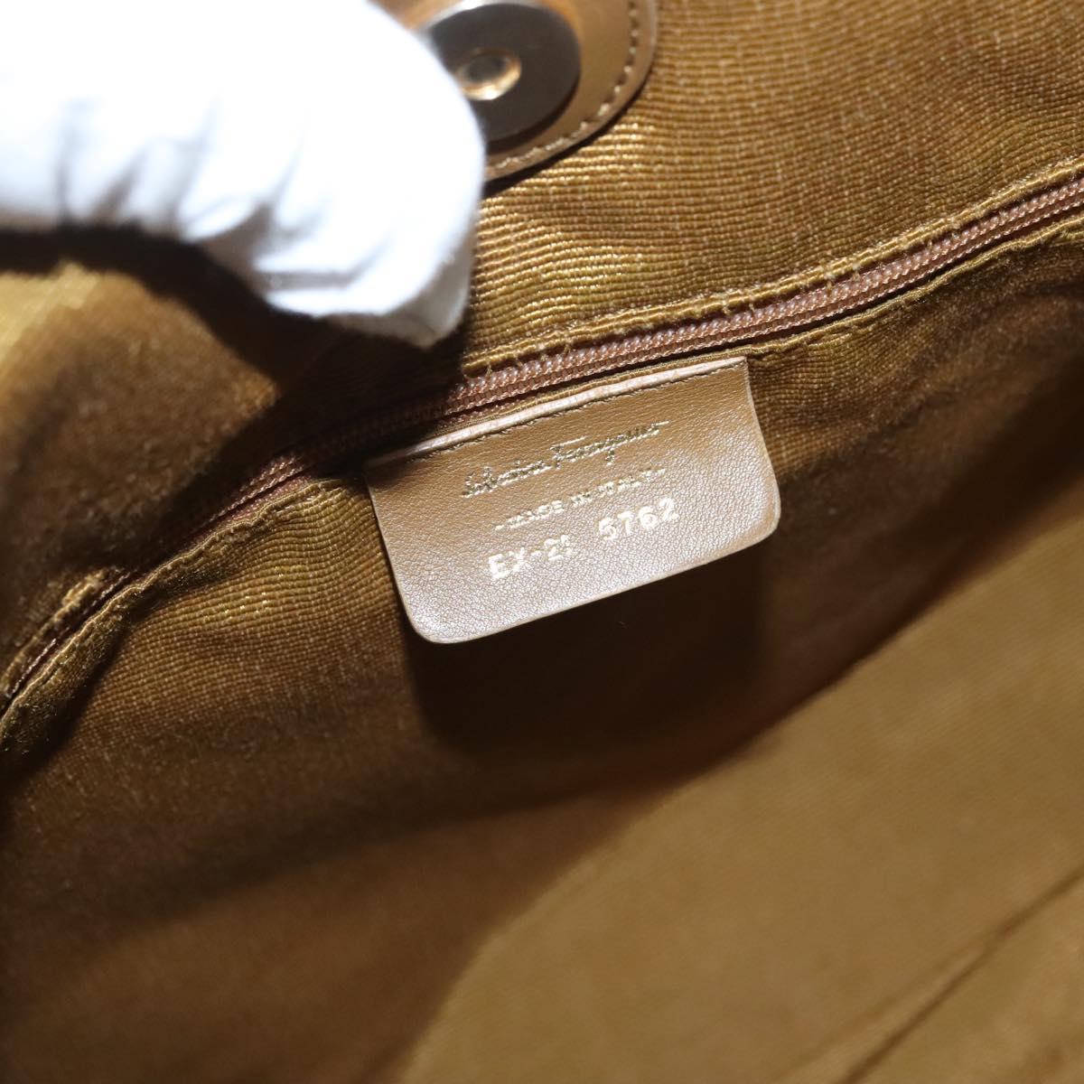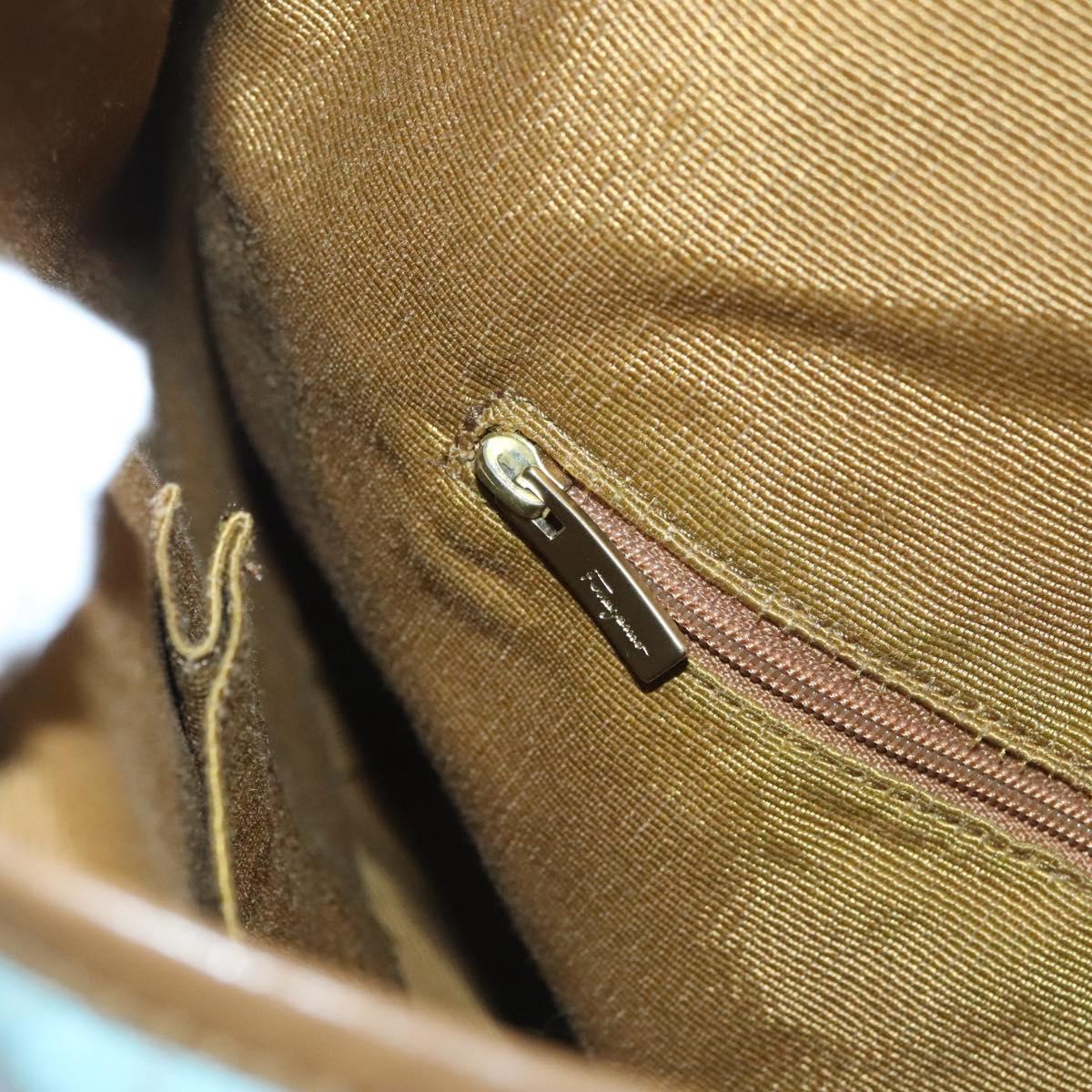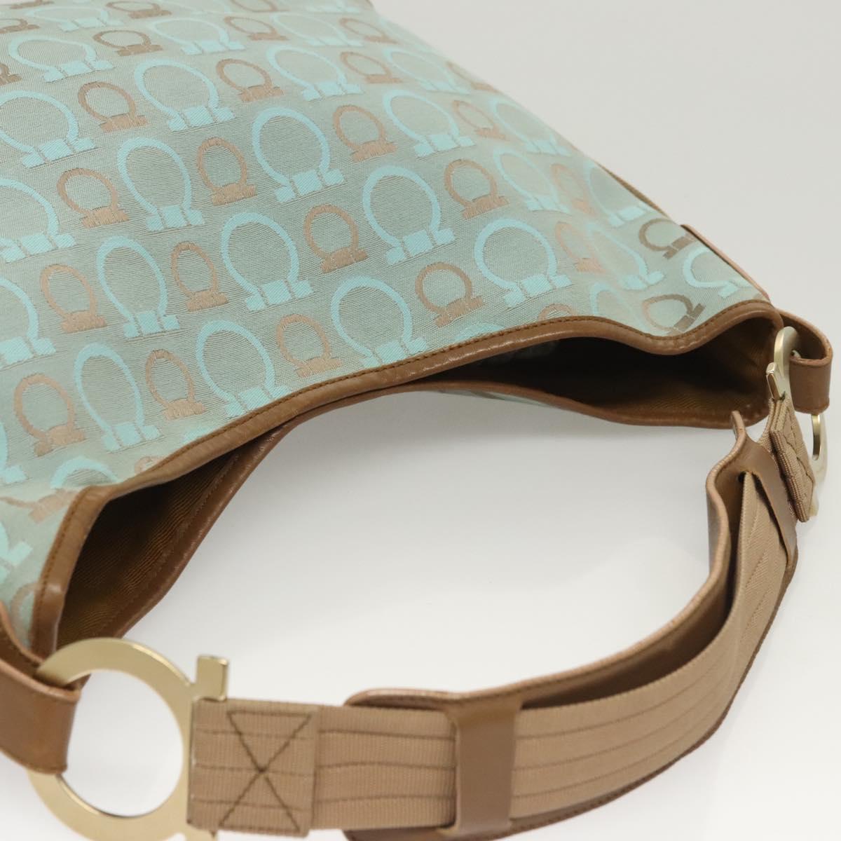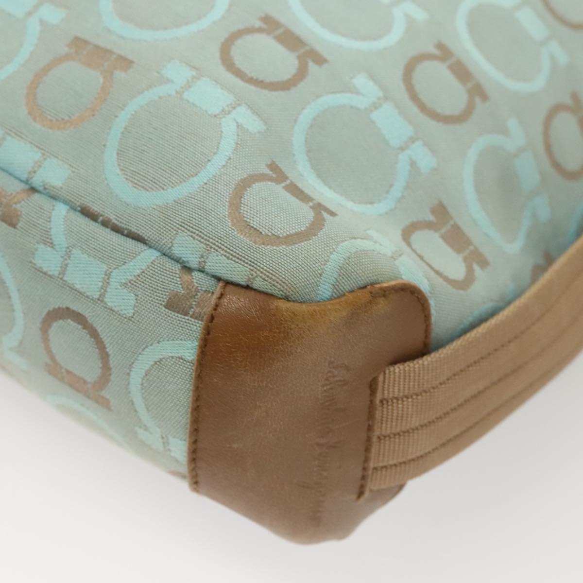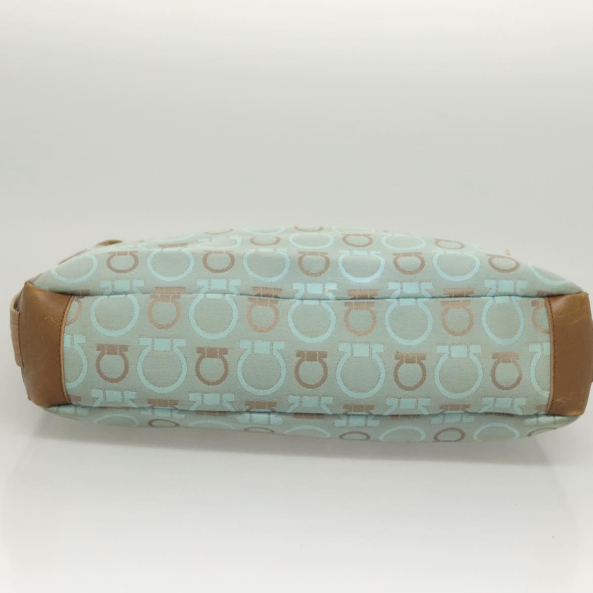 Salvatore Ferragamo Gancini Shoulder Bag Canvas Light Blue Gold Auth 125278