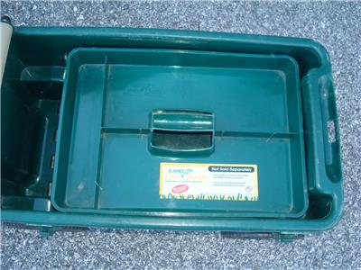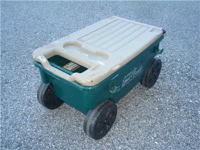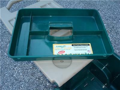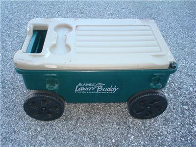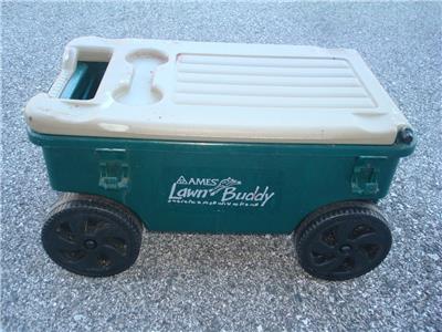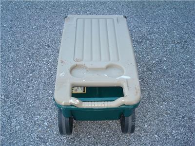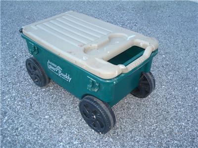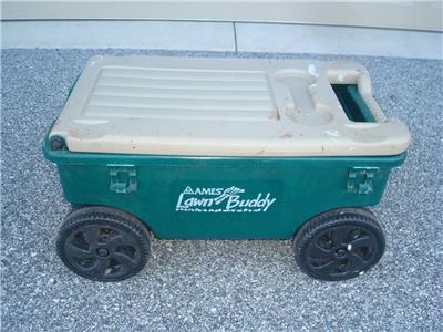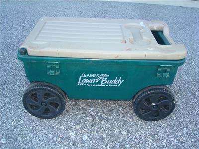 Here's a nice Ames Lawn Buddy Rolling Garden Storage Cart Seat in good used condition. The cart is model 72978 and is in good condition. The cart is a nice Green color, measures approximately 24" x 14" x 14", is in good overall condition as shown. The cart was primarily used for painting so there is some dried paint on it...mostly on the top seat. This is only cosmetic and does not affect the performance of the cart in any way. You may be able to remove the paint somehow if you desire, but it really isn't necessary. Includes a very useful removable tray as well. The cart was quality-made in the USA and is model 72978. Includes the removable storage tray as shown. This is a very cool-looking and functional Ames Lawn Buddy Garden Cart that will make your gardening or painting chores a breeze. Keep all the tools you need at your disposal as you roll along down the rows of your vegetable or flower garden or fence.