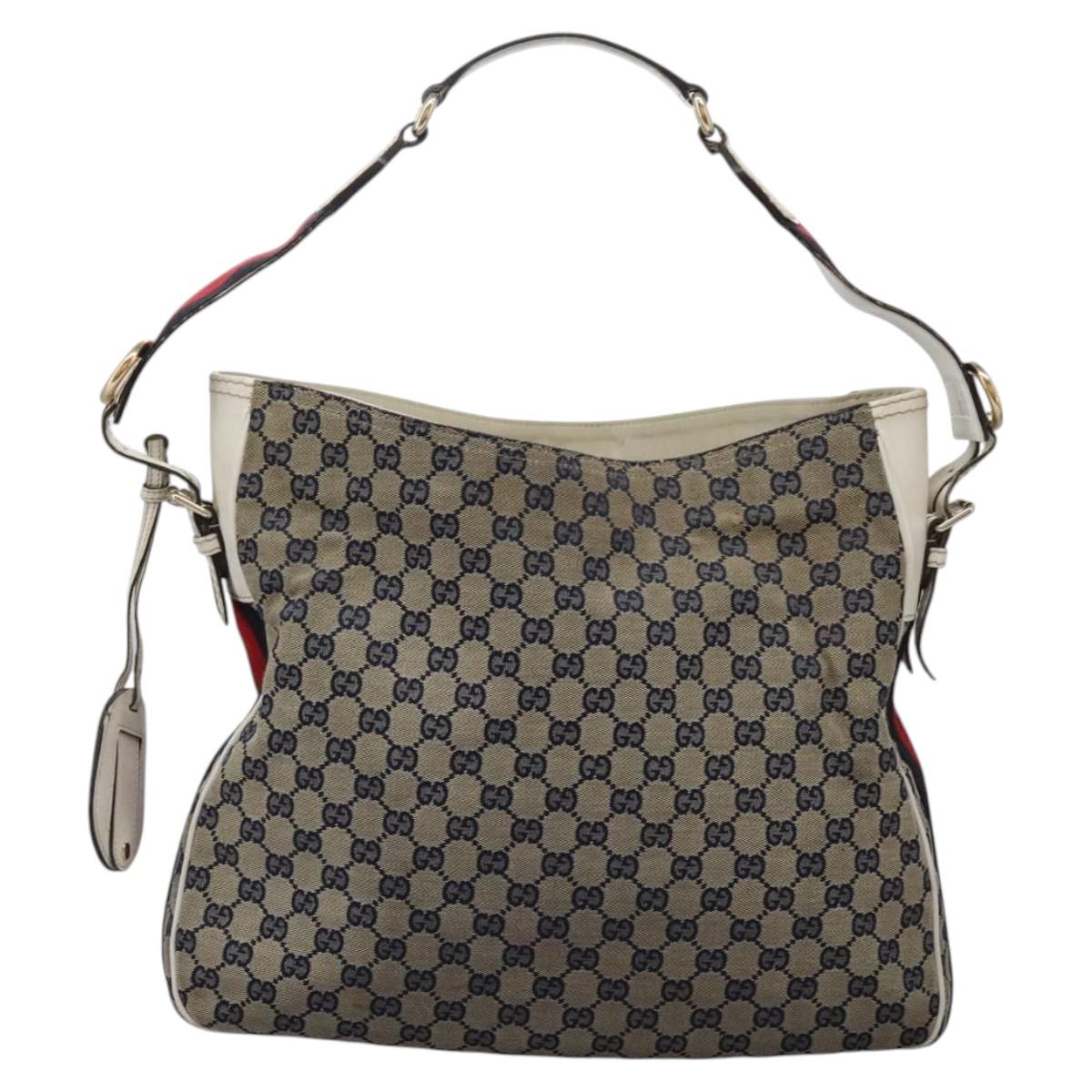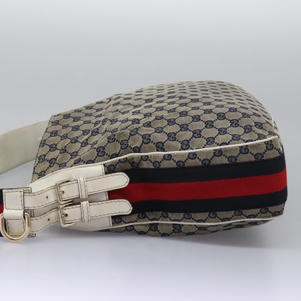 GUCCI GG Canvas Sherry Line Shoulder Bag Navy Gold 247597 203998 Auth 122316