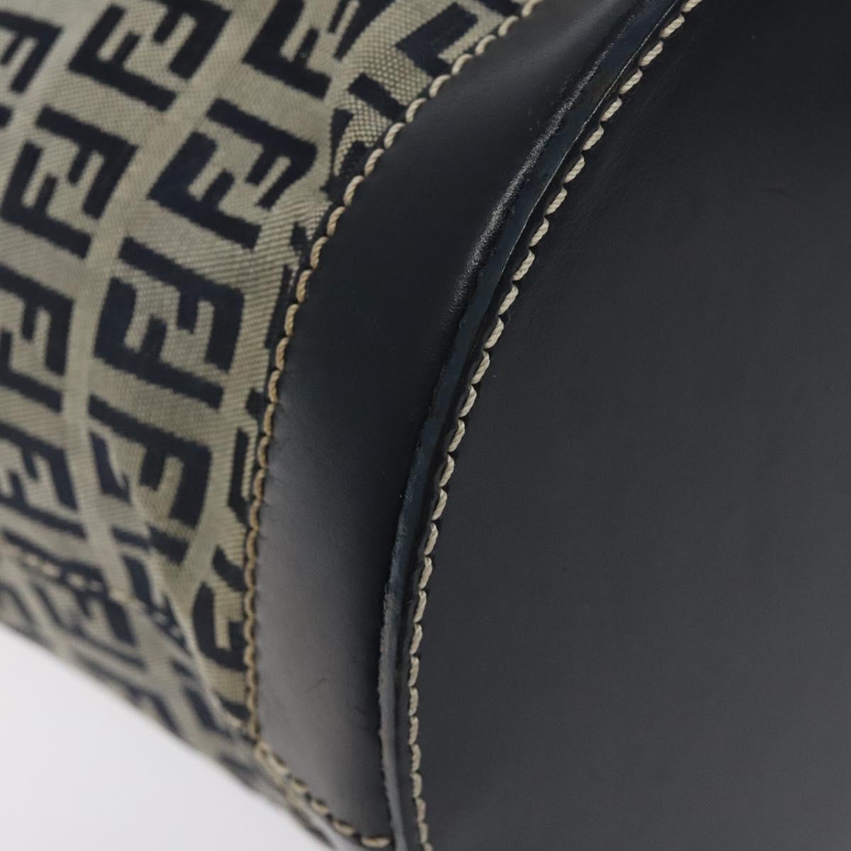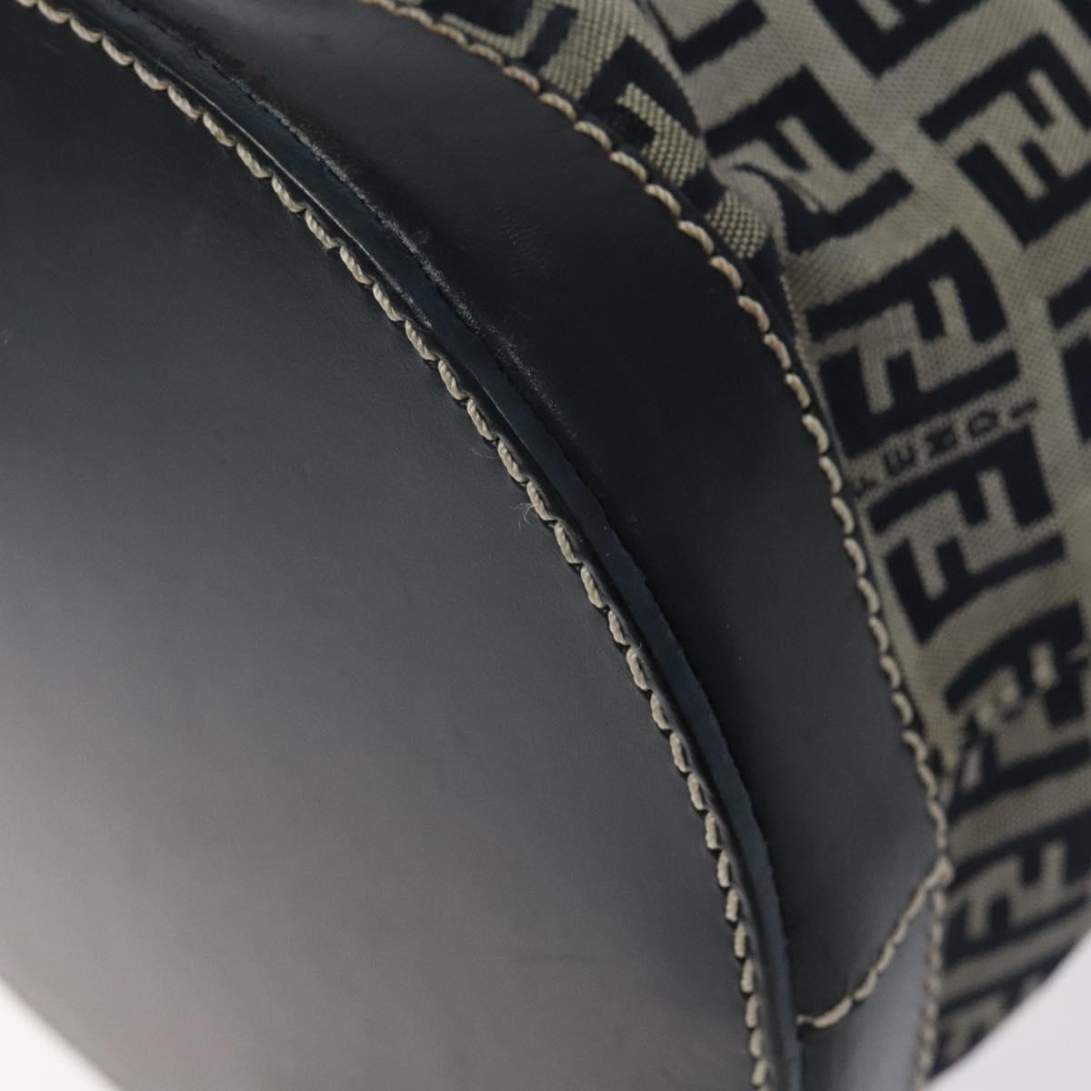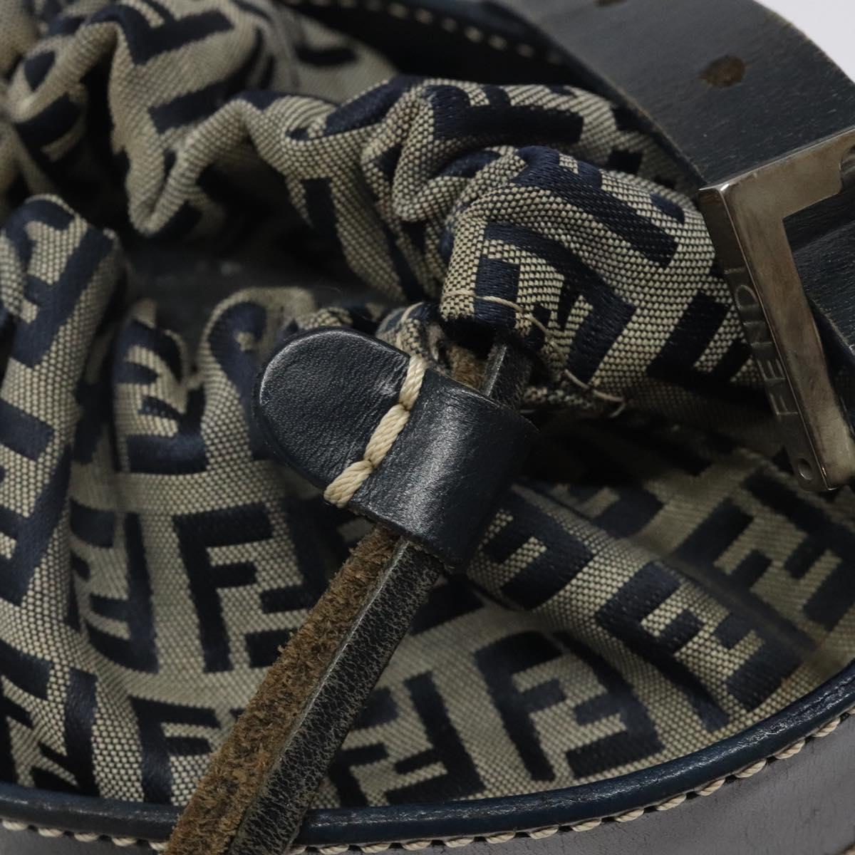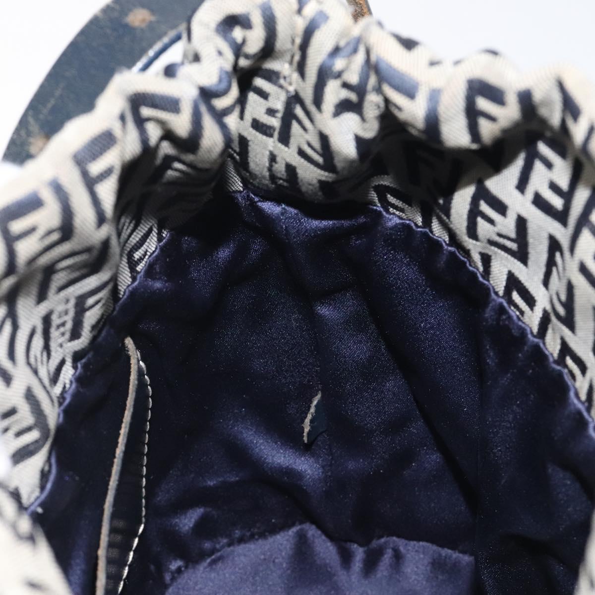 FENDI Zucchino Canvas Shoulder Bag Navy Silver Auth 123405
