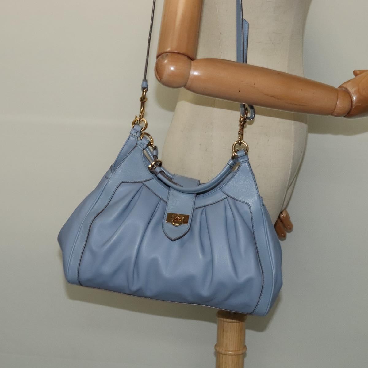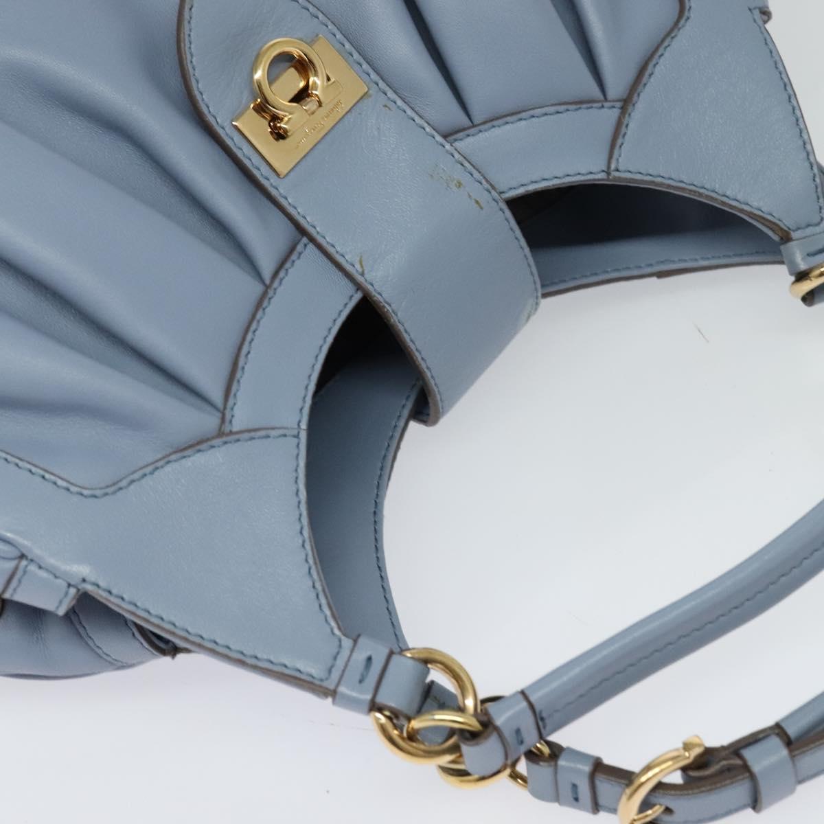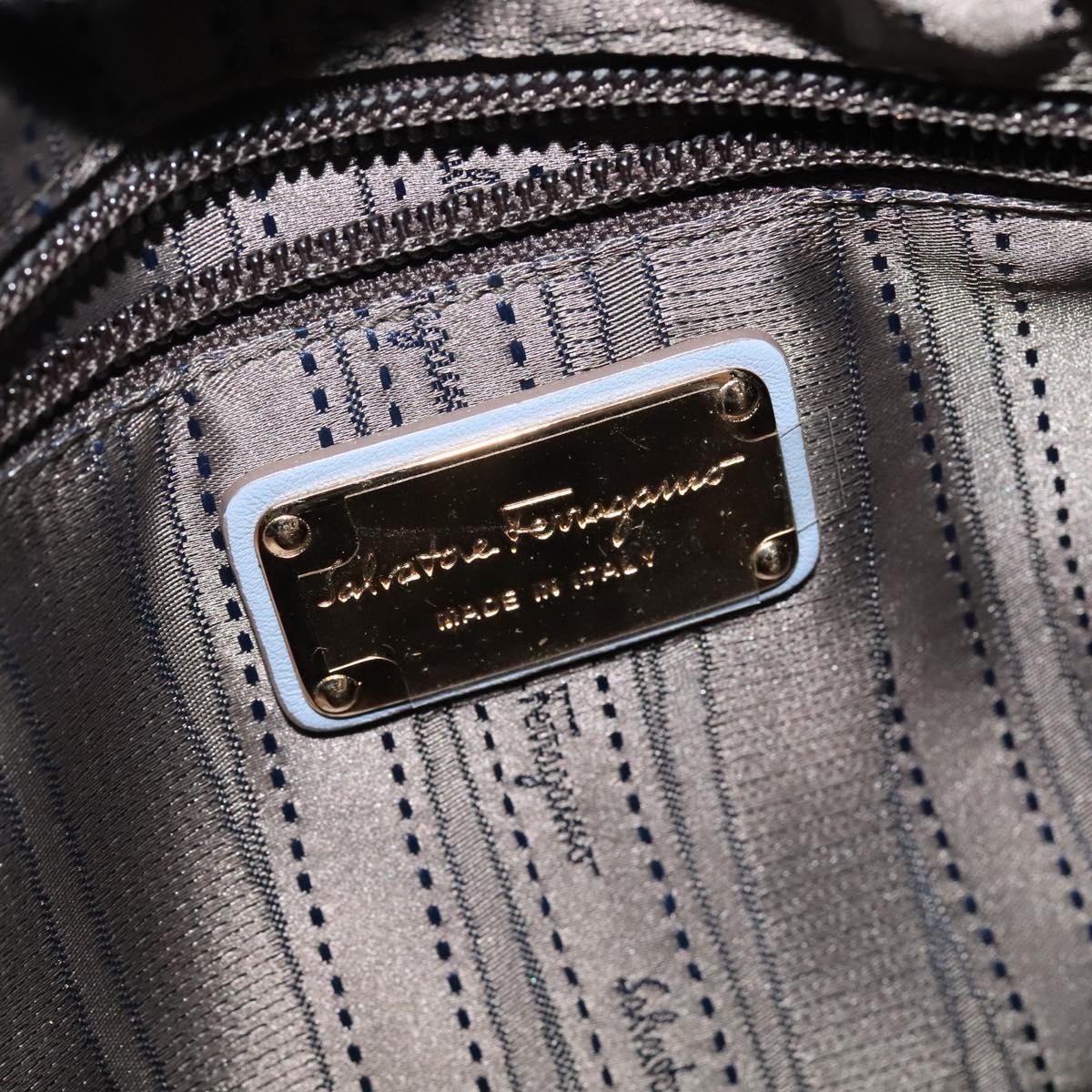 Salvatore Ferragamo Gancini Hand Bag Leather 2way Blue Gold Auth 128064