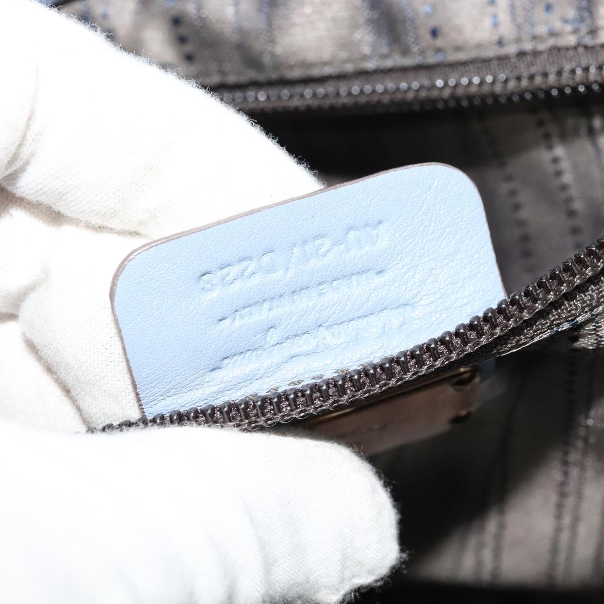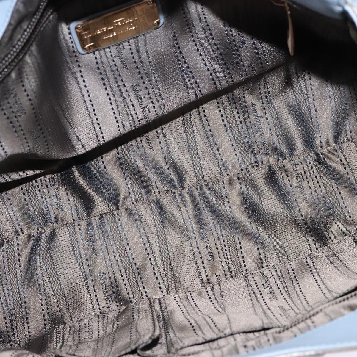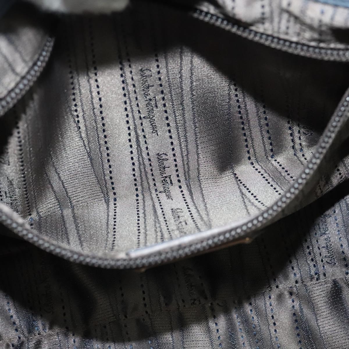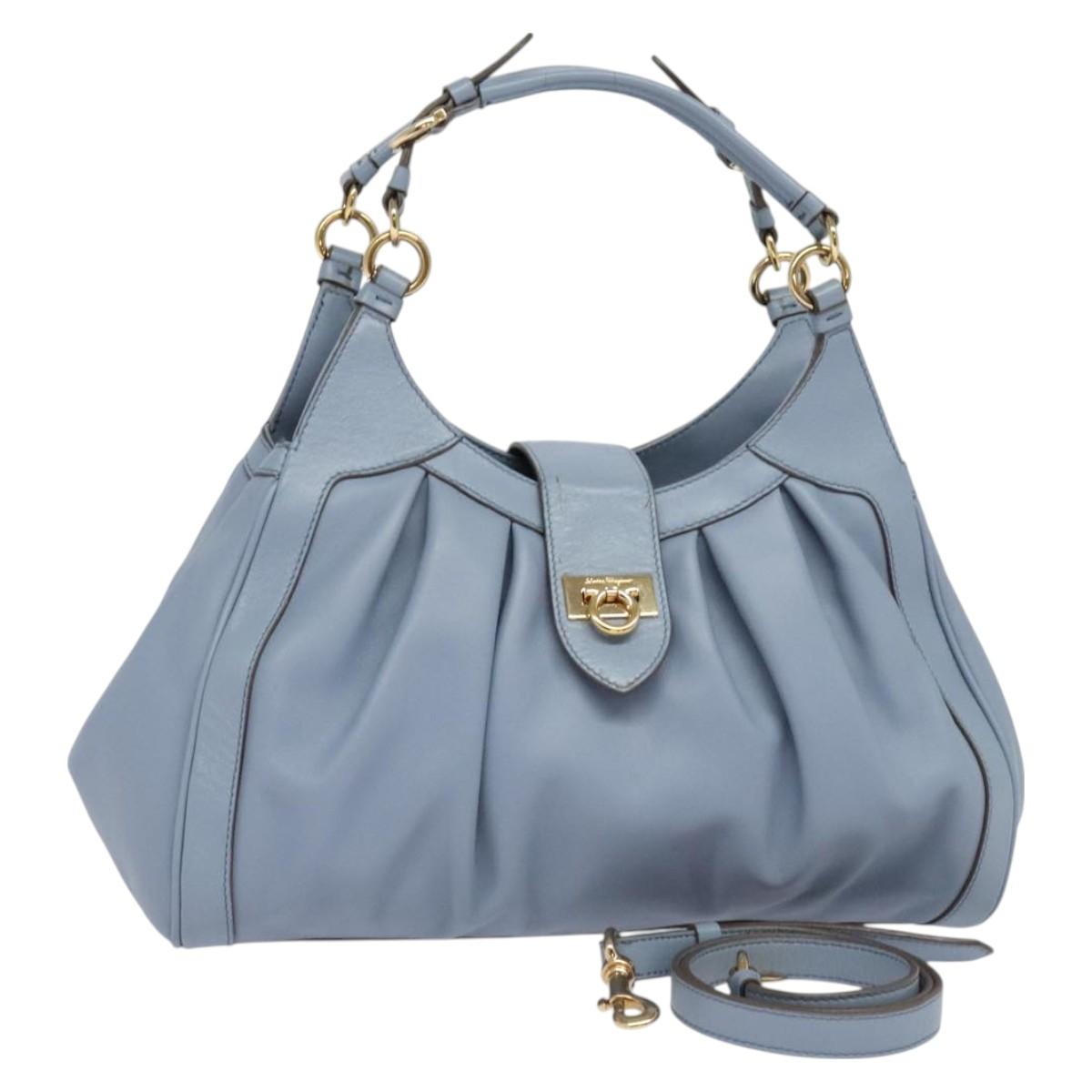 Salvatore Ferragamo Gancini Hand Bag Leather 2way Blue Gold Auth 128064