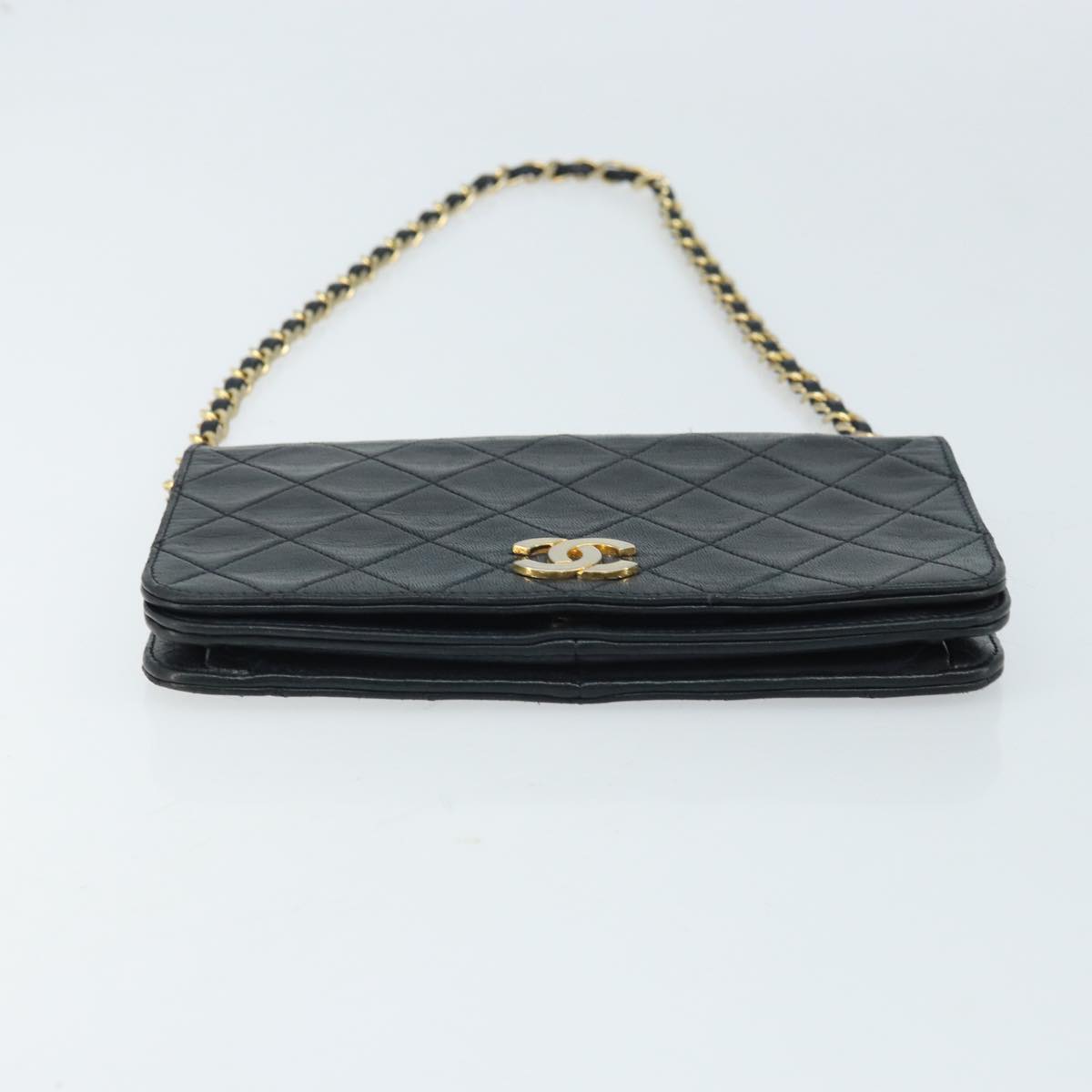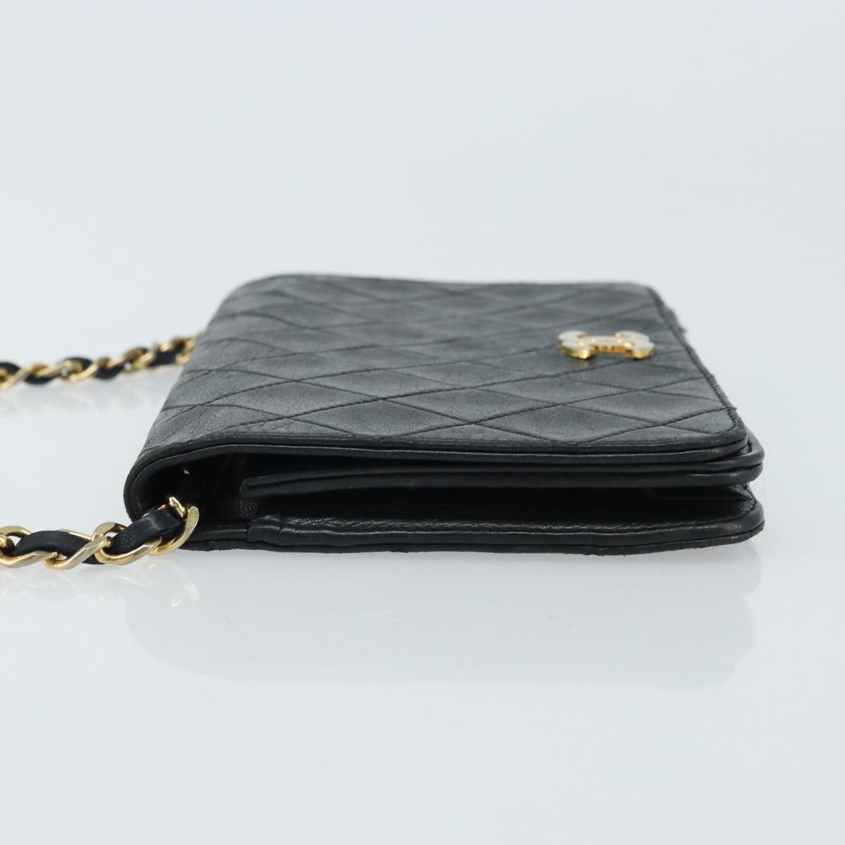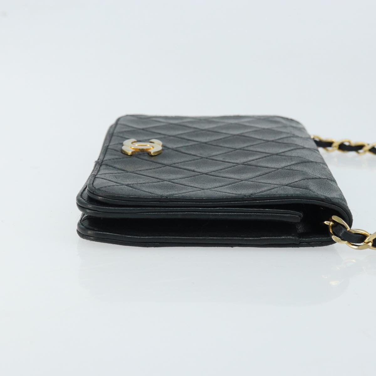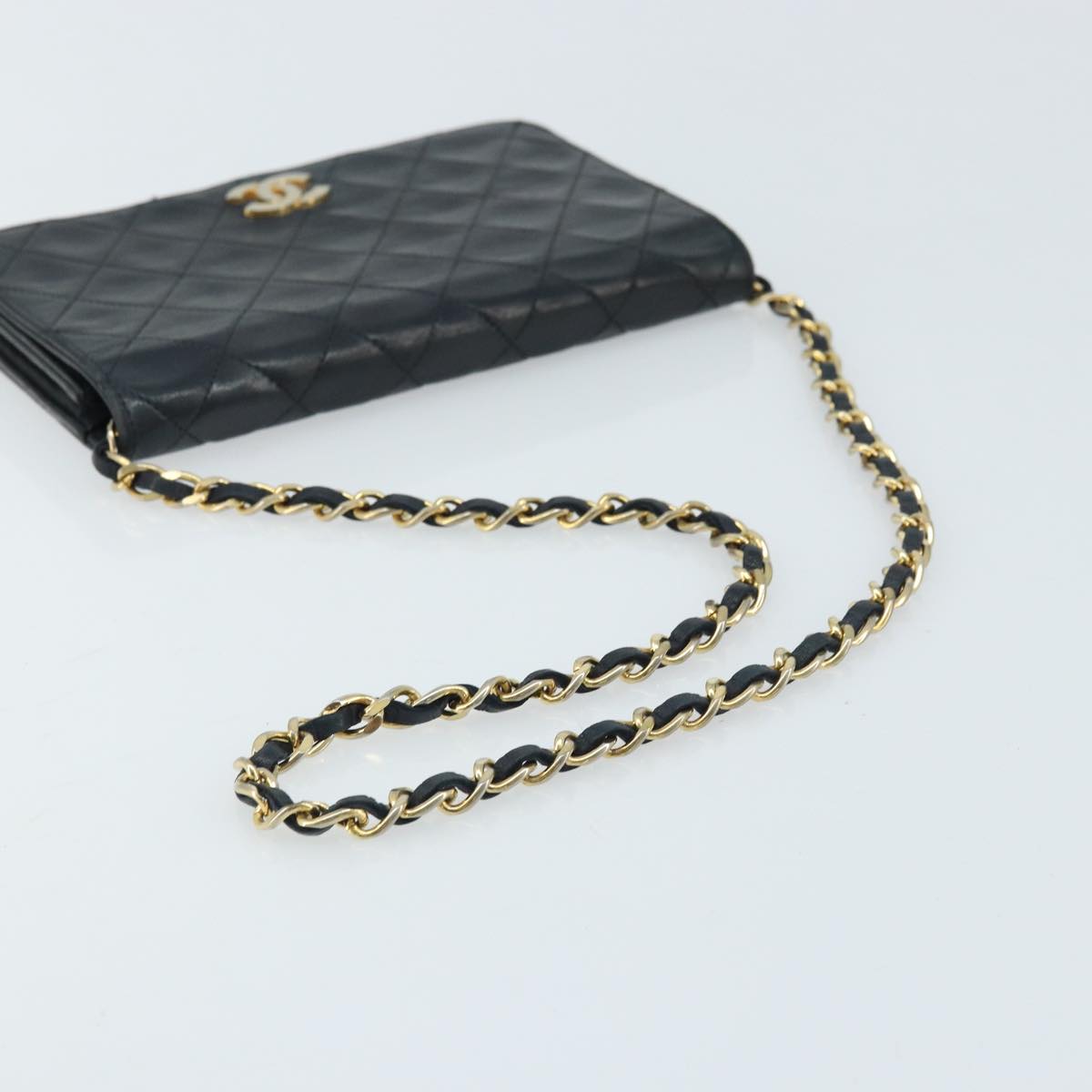 CHANEL Matelasse Chain Shoulder Bag Lamb Skin Black Gold CC Auth BA5545