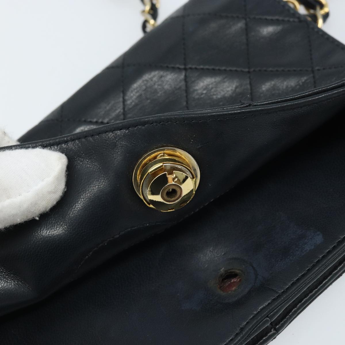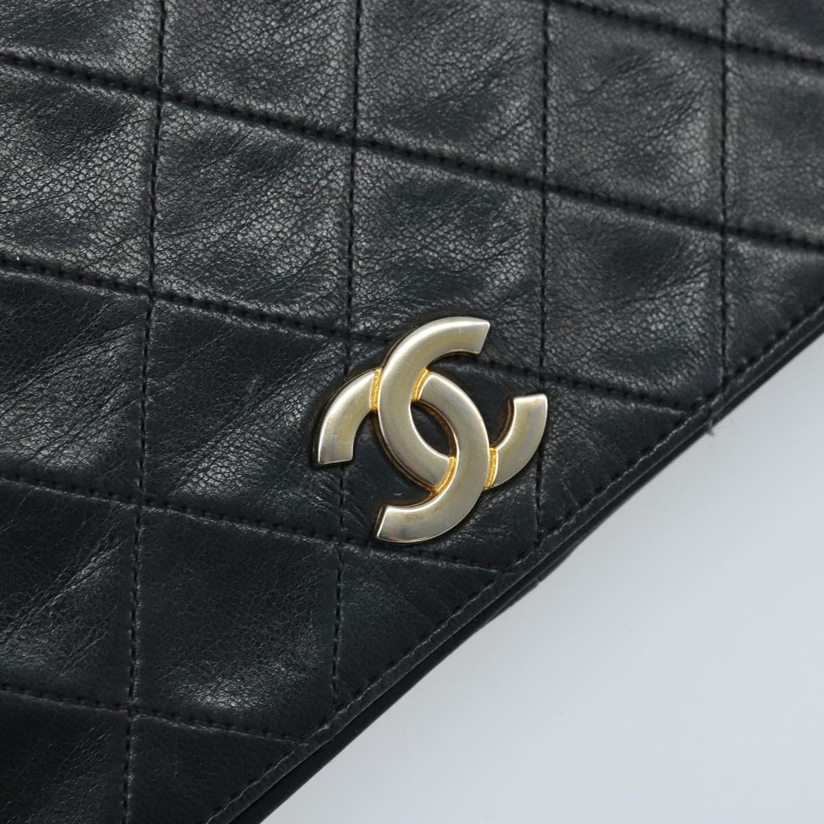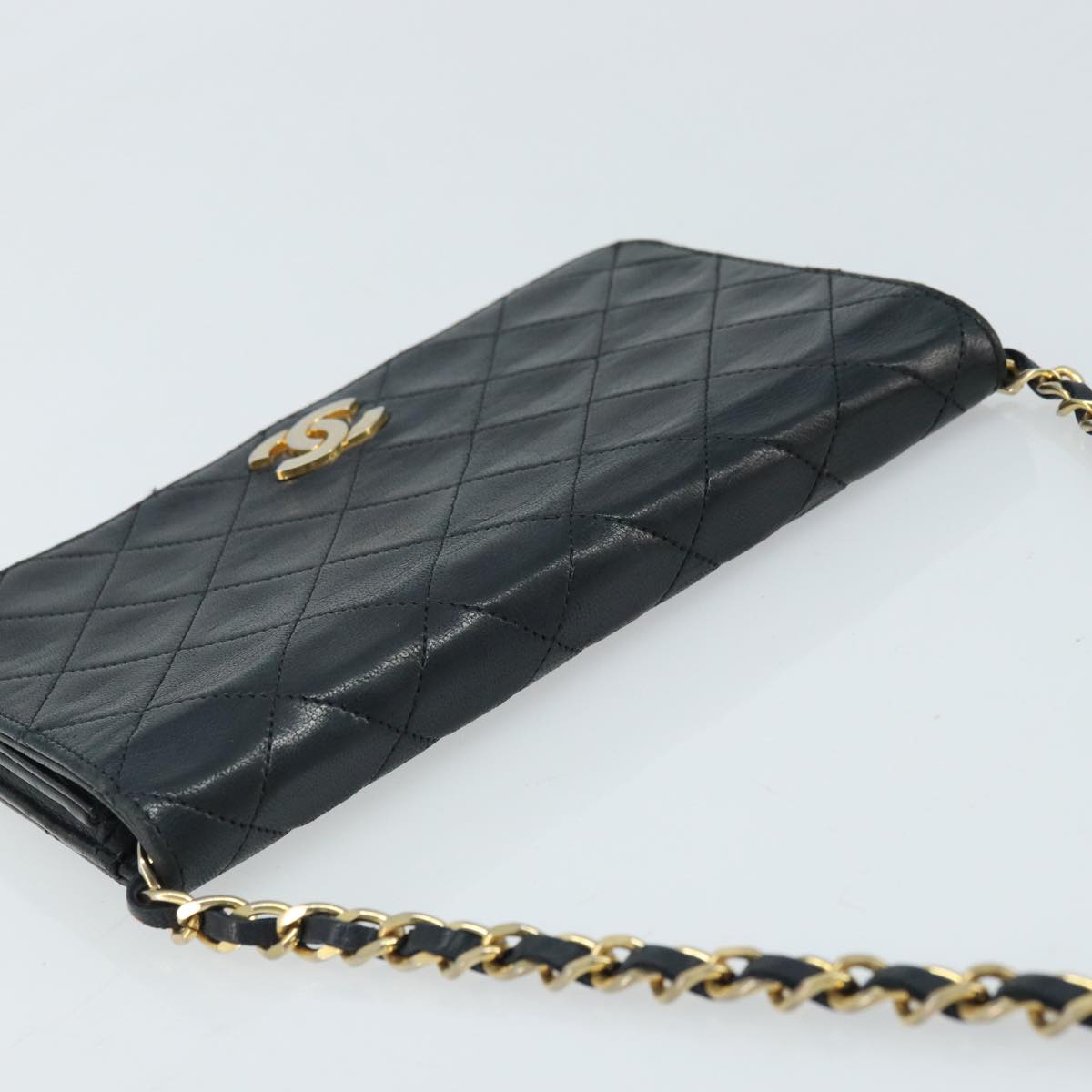 CHANEL Matelasse Chain Shoulder Bag Lamb Skin Black Gold CC Auth BA5545