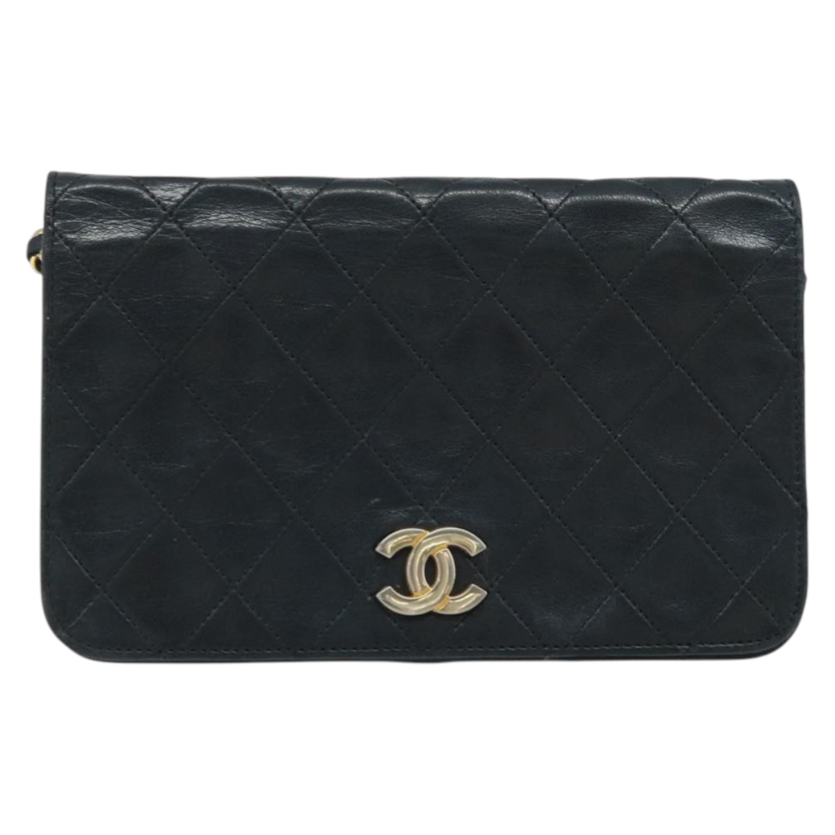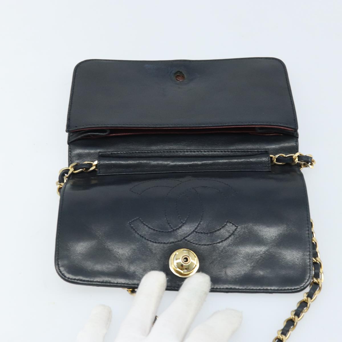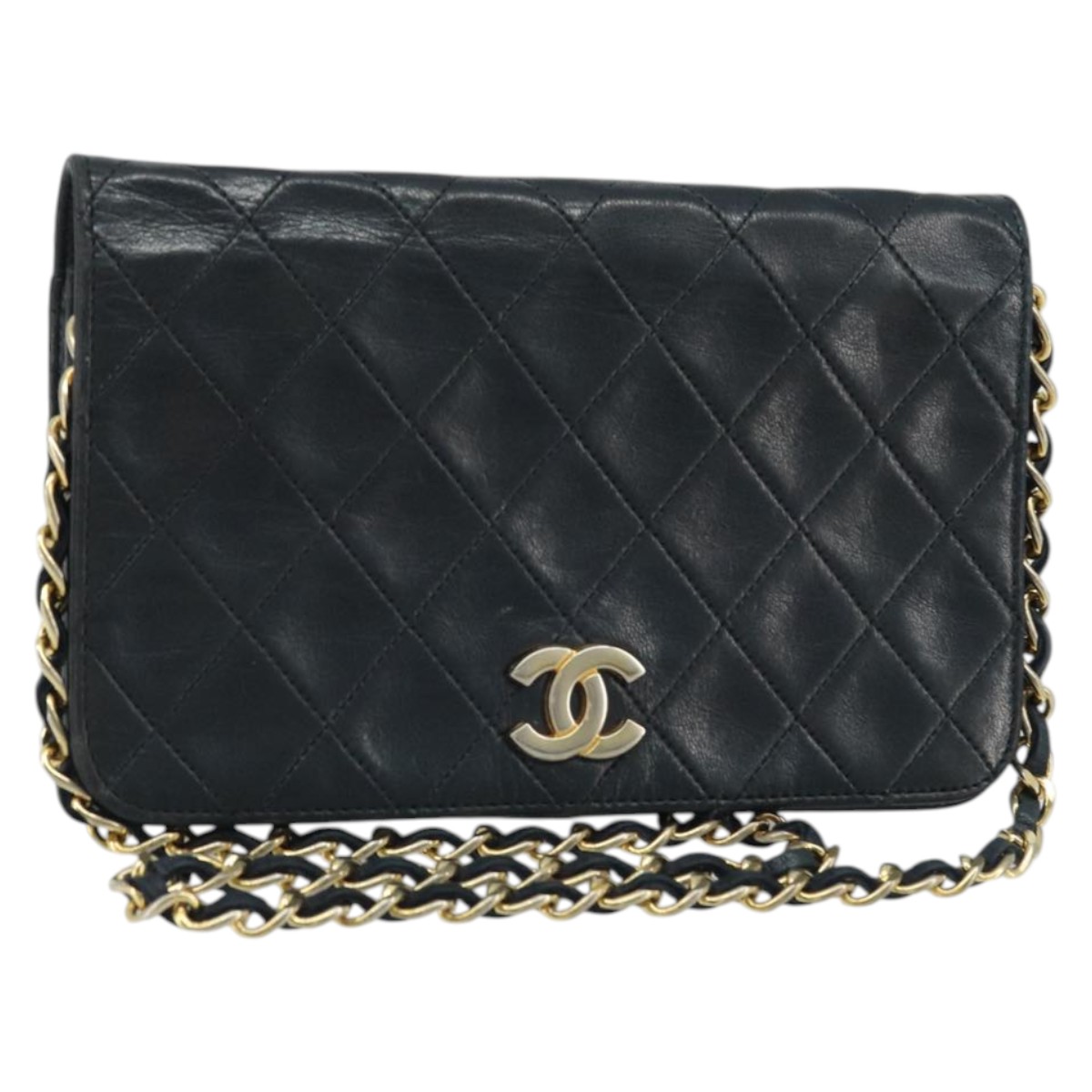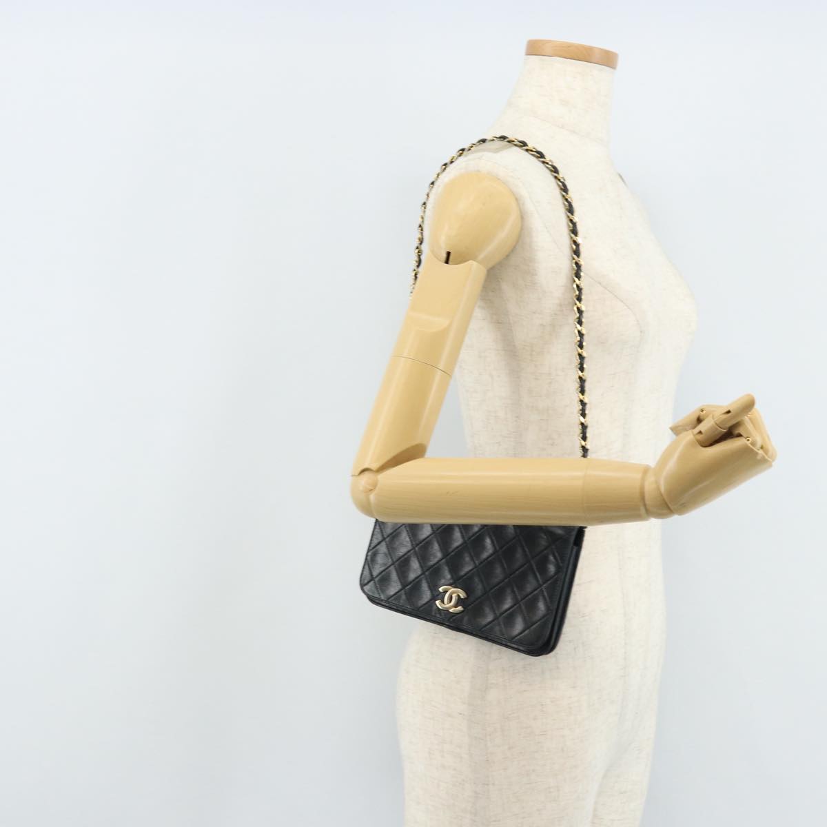 CHANEL Matelasse Chain Shoulder Bag Lamb Skin Black Gold CC Auth BA5545