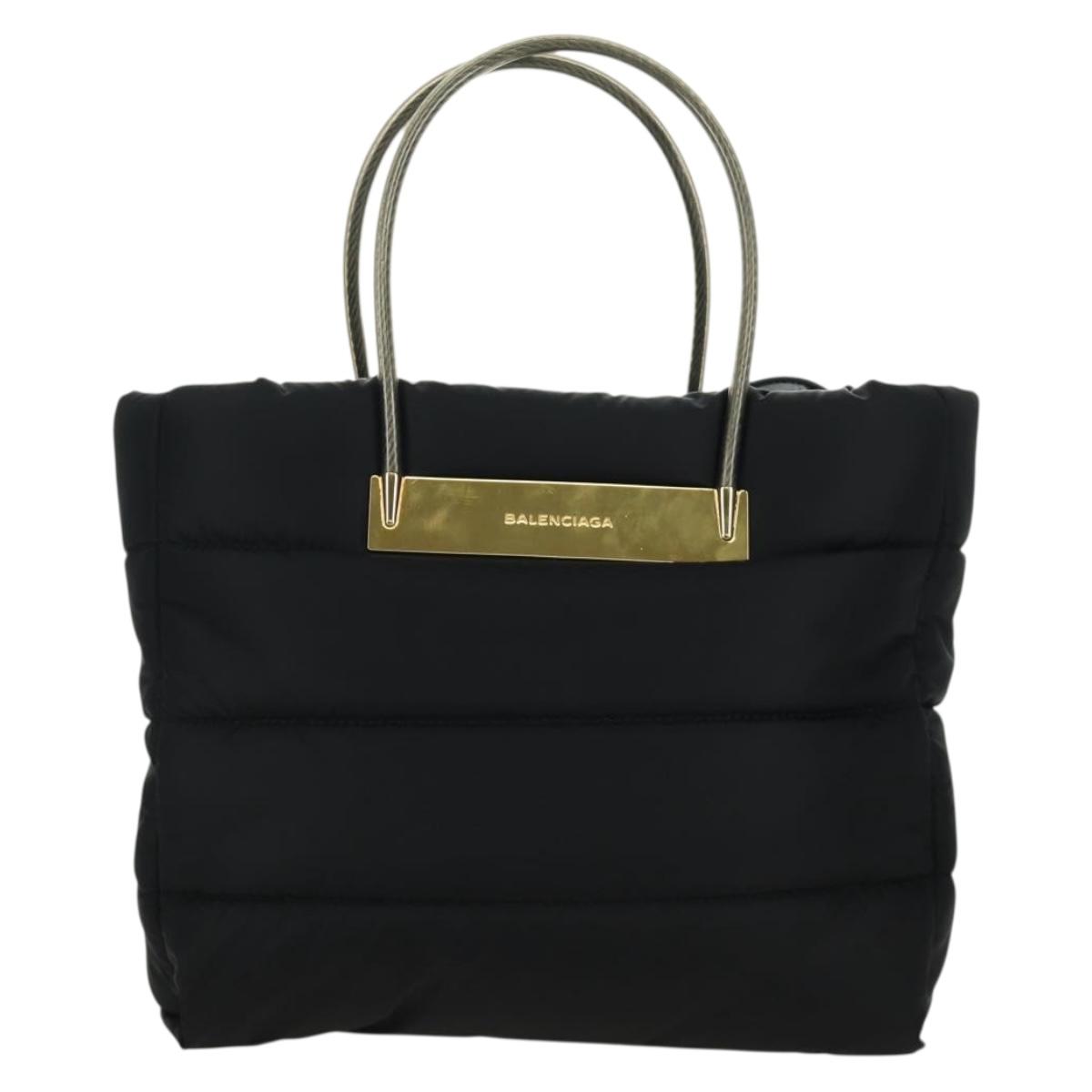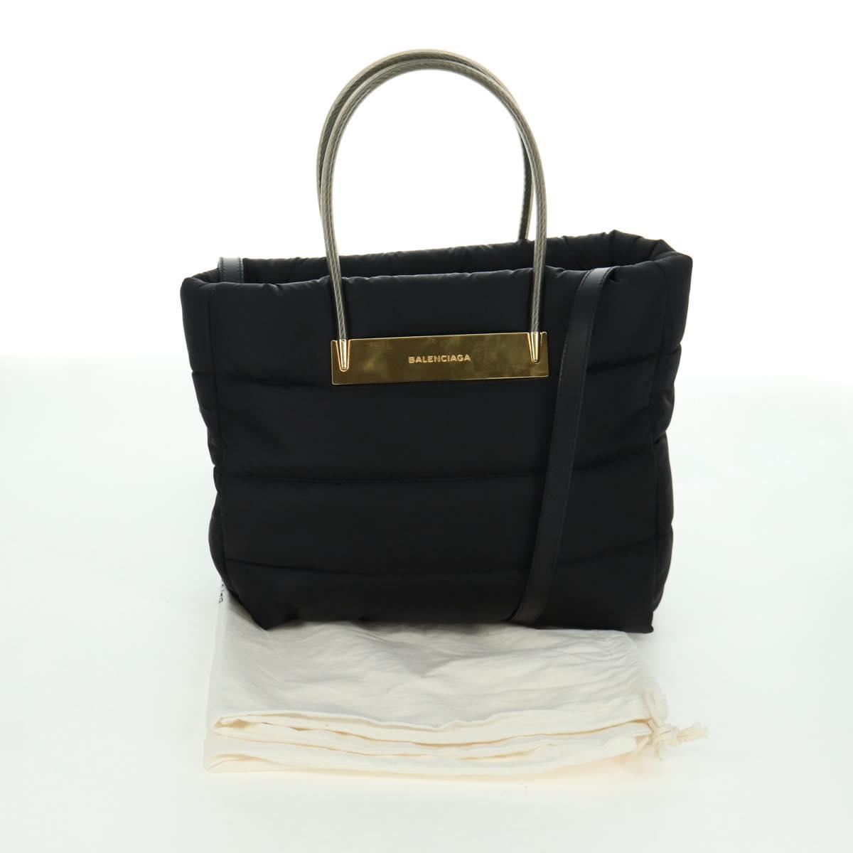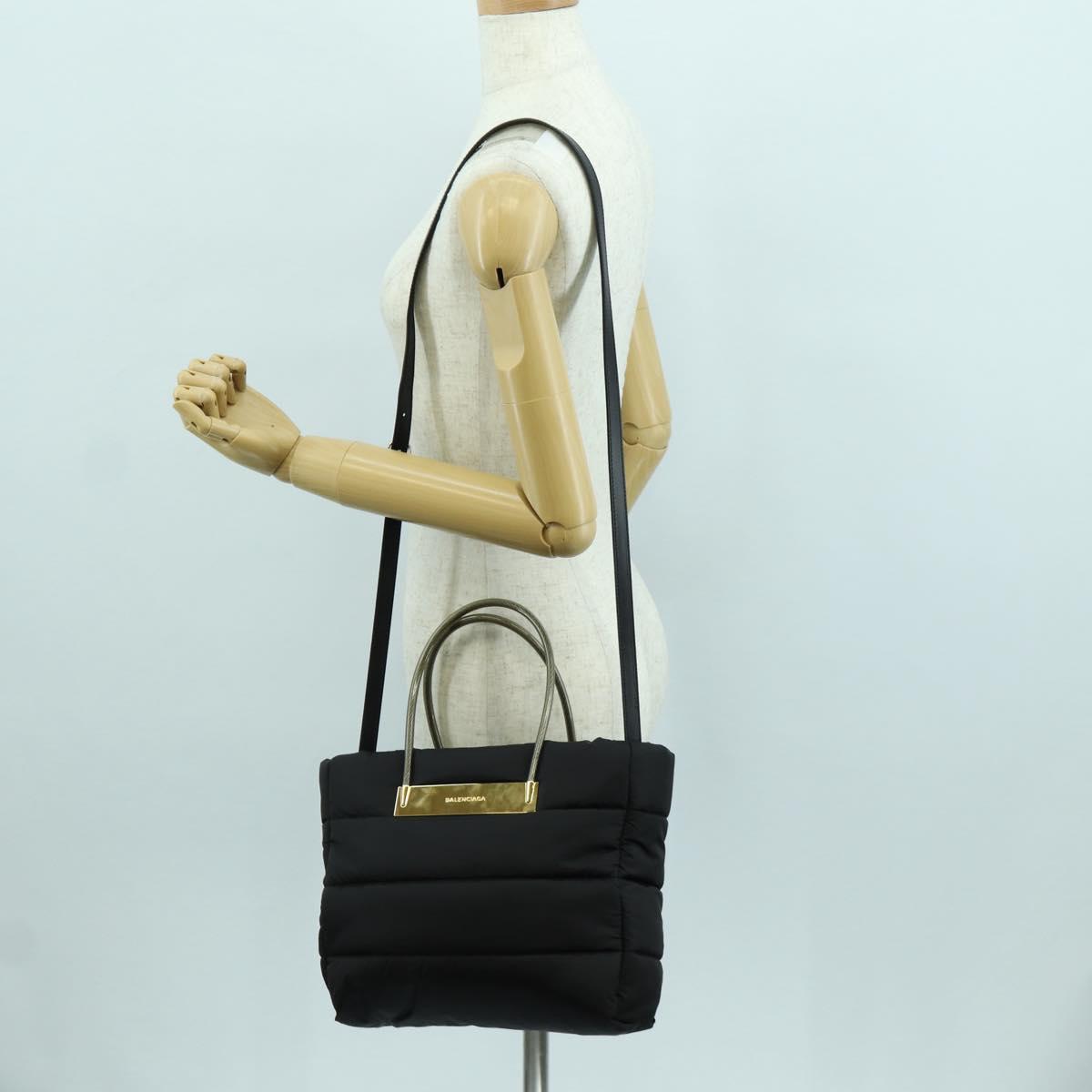 BALENCIAGA Cable Shopper S Bag Nylon 2way Black Gold Silver 371177 Auth 172521V