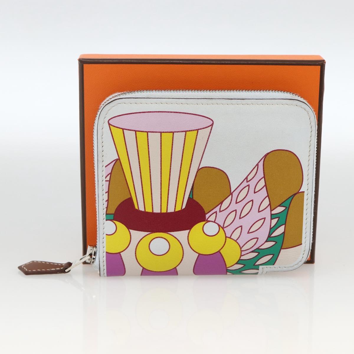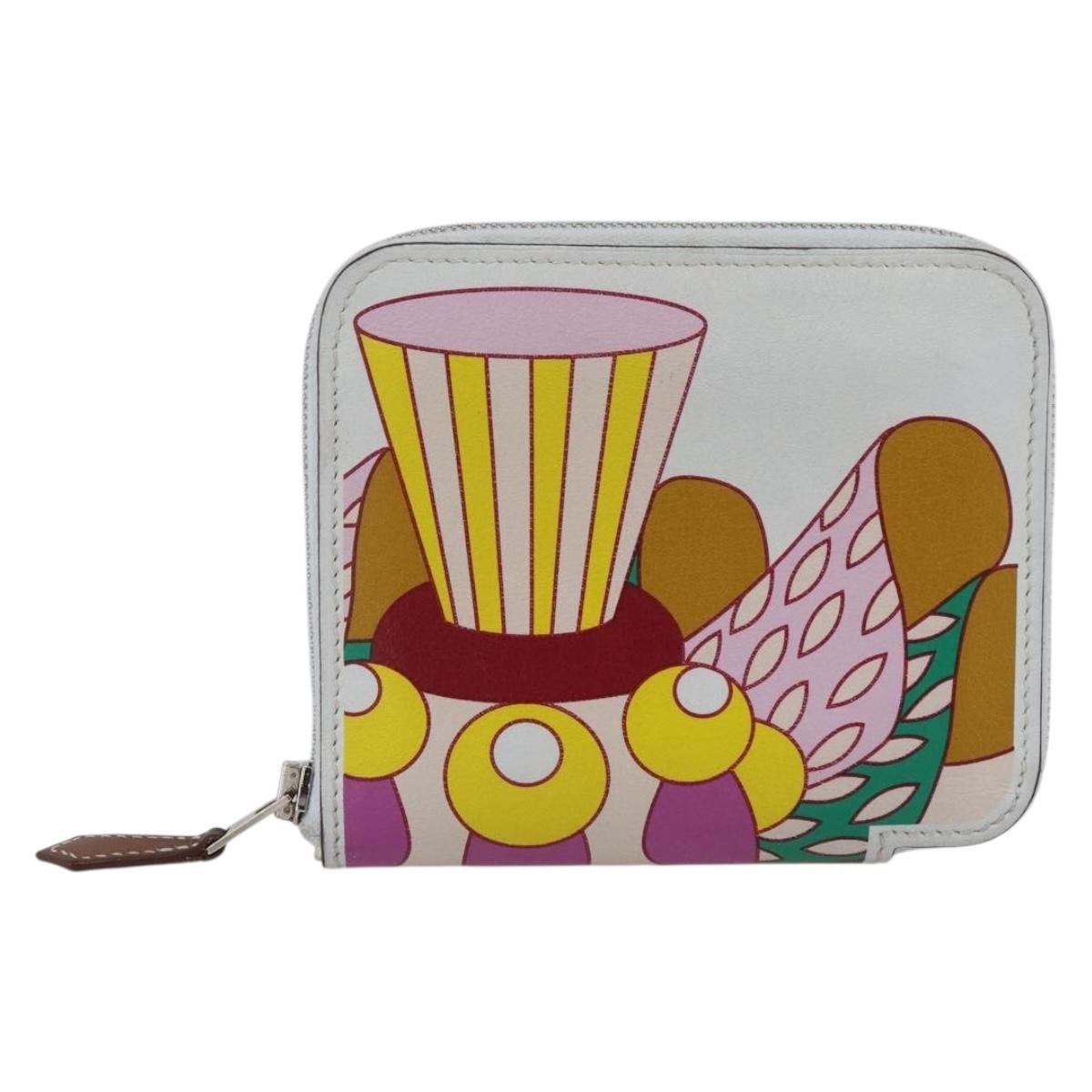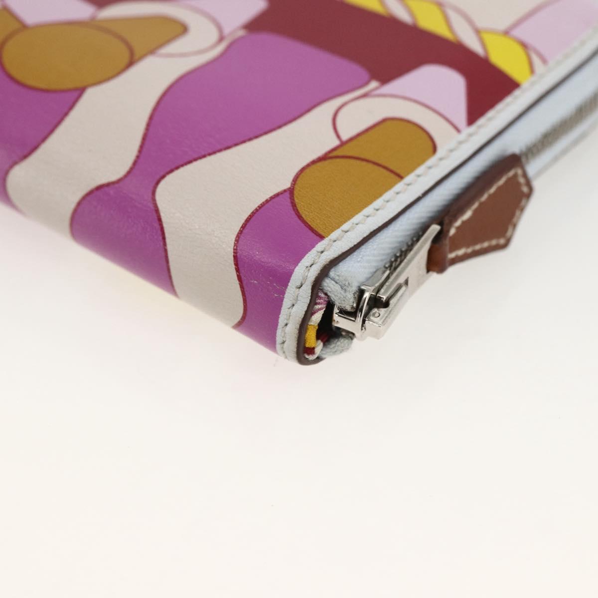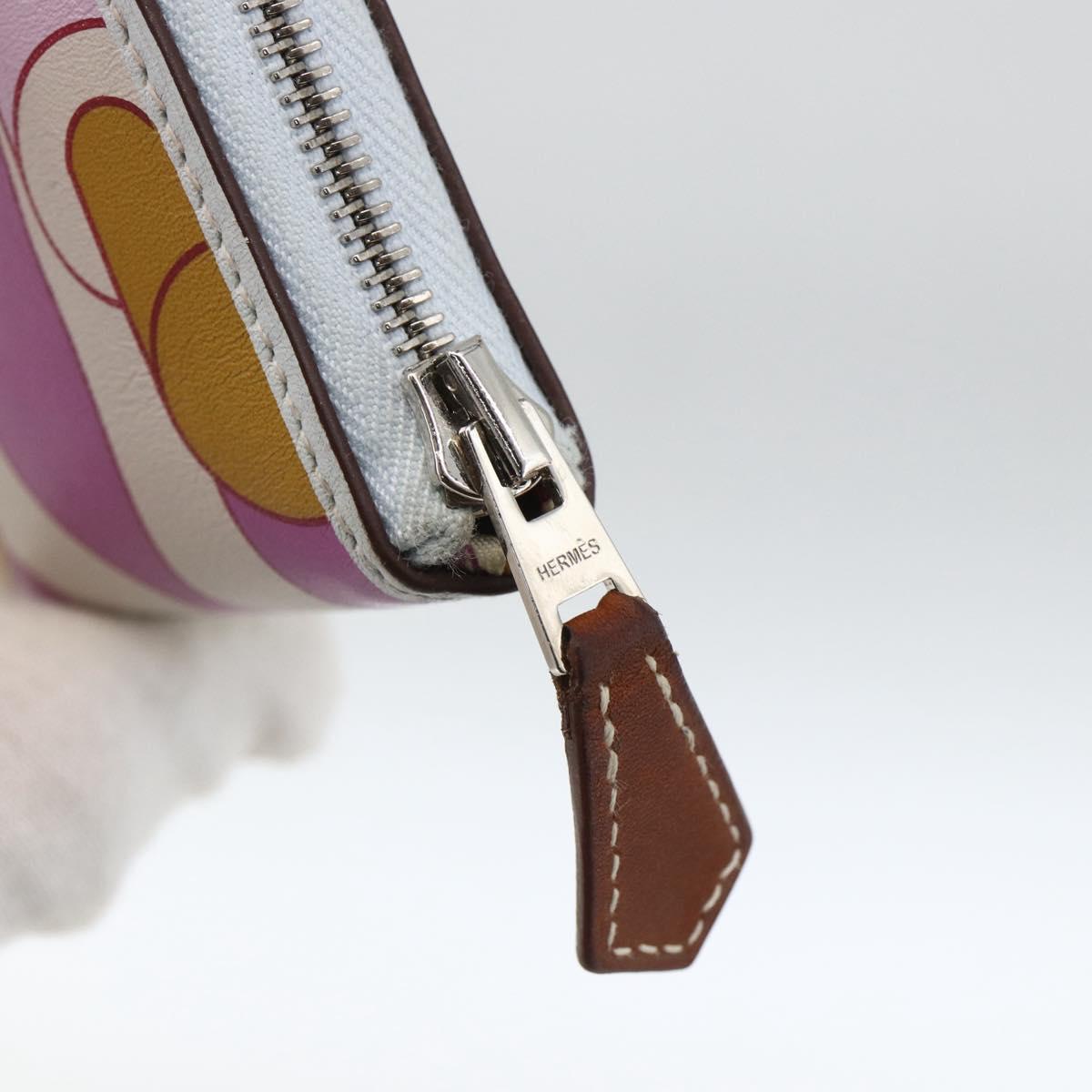 HERMES Azap Compact Silk in Wallet Leather Multicolor Silver Auth LNZ572SAM