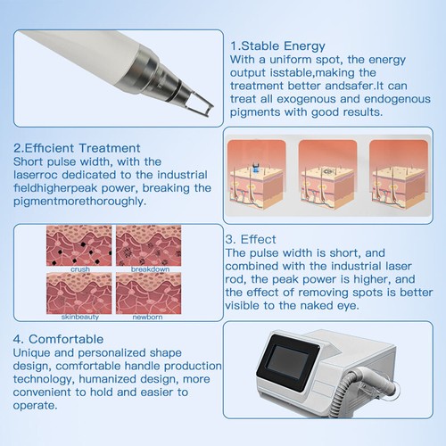 4. Comfort & Safety: It can effectively and safely treat various pigmented diseases and stubborn pigmented spots, because non-invasive laser treatment can reduce the damage to the skin to achieve the effect of removing the spots by precisely locating the target tissues.