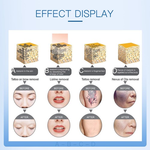 6. There will be no problem of back black: non-invasive laser energy instantly focuses and penetrates into the surface layer of the skin, accelerates the decomposition and metabolism of melanin particles, and is not easy to remain with the skin, which greatly reduces the phenomenon of redness, swelling and blackness after the operation.