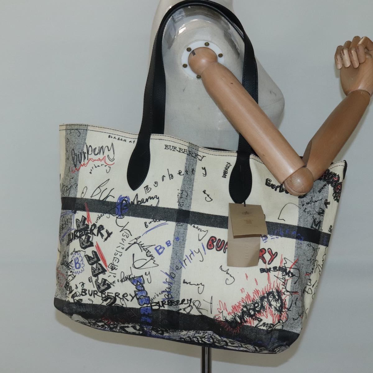 BURBERRY Tote Bag Coated Canvas White Auth KD428