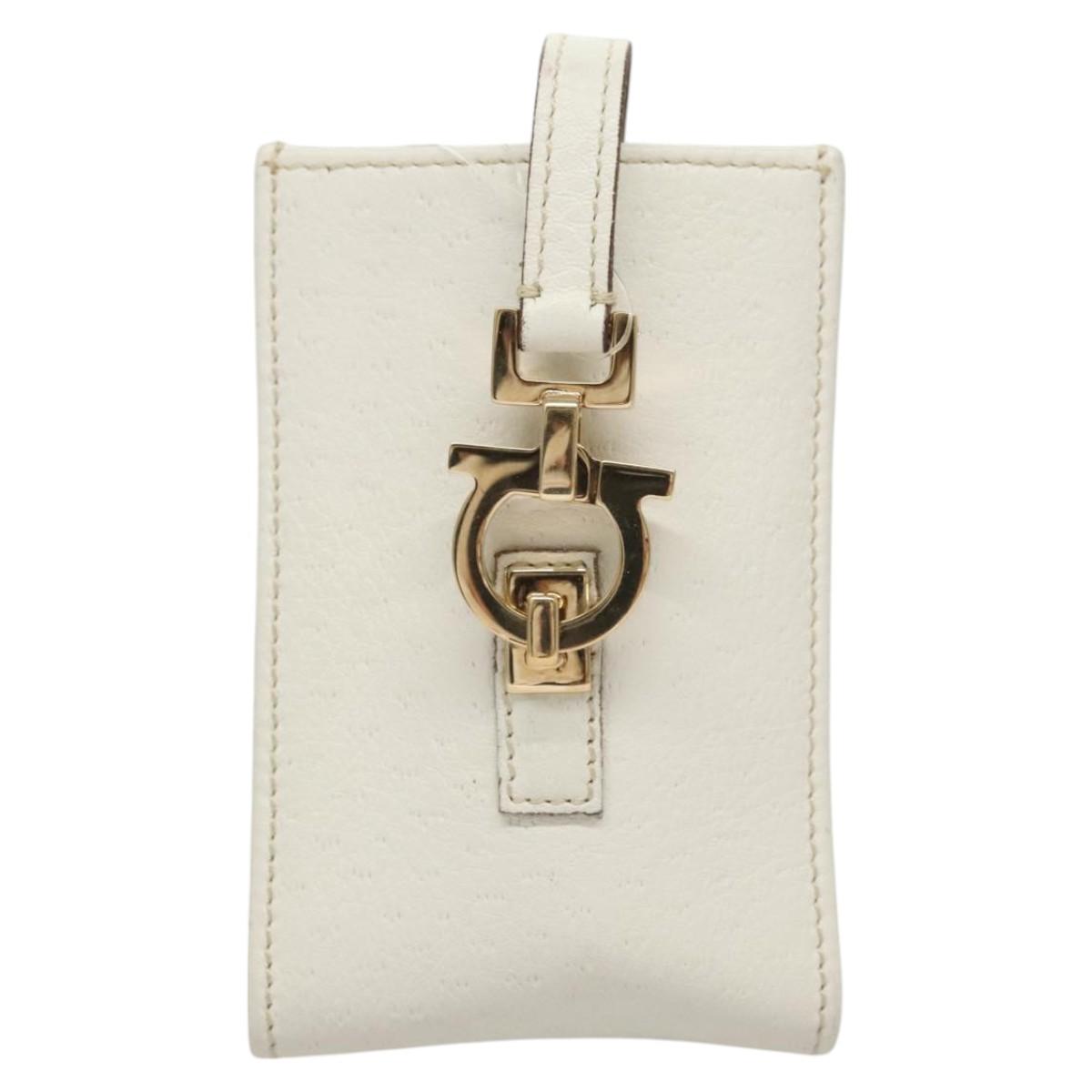 Salvatore Ferragamo Gancini Pouch Leather White Auth KD566