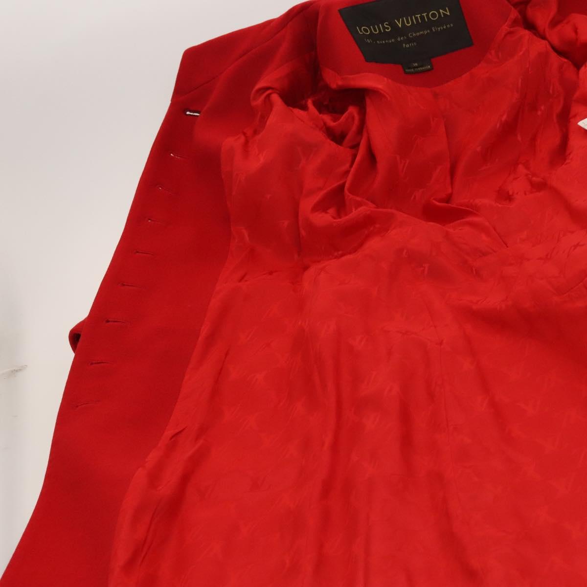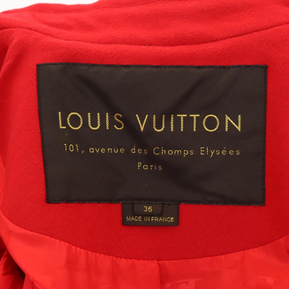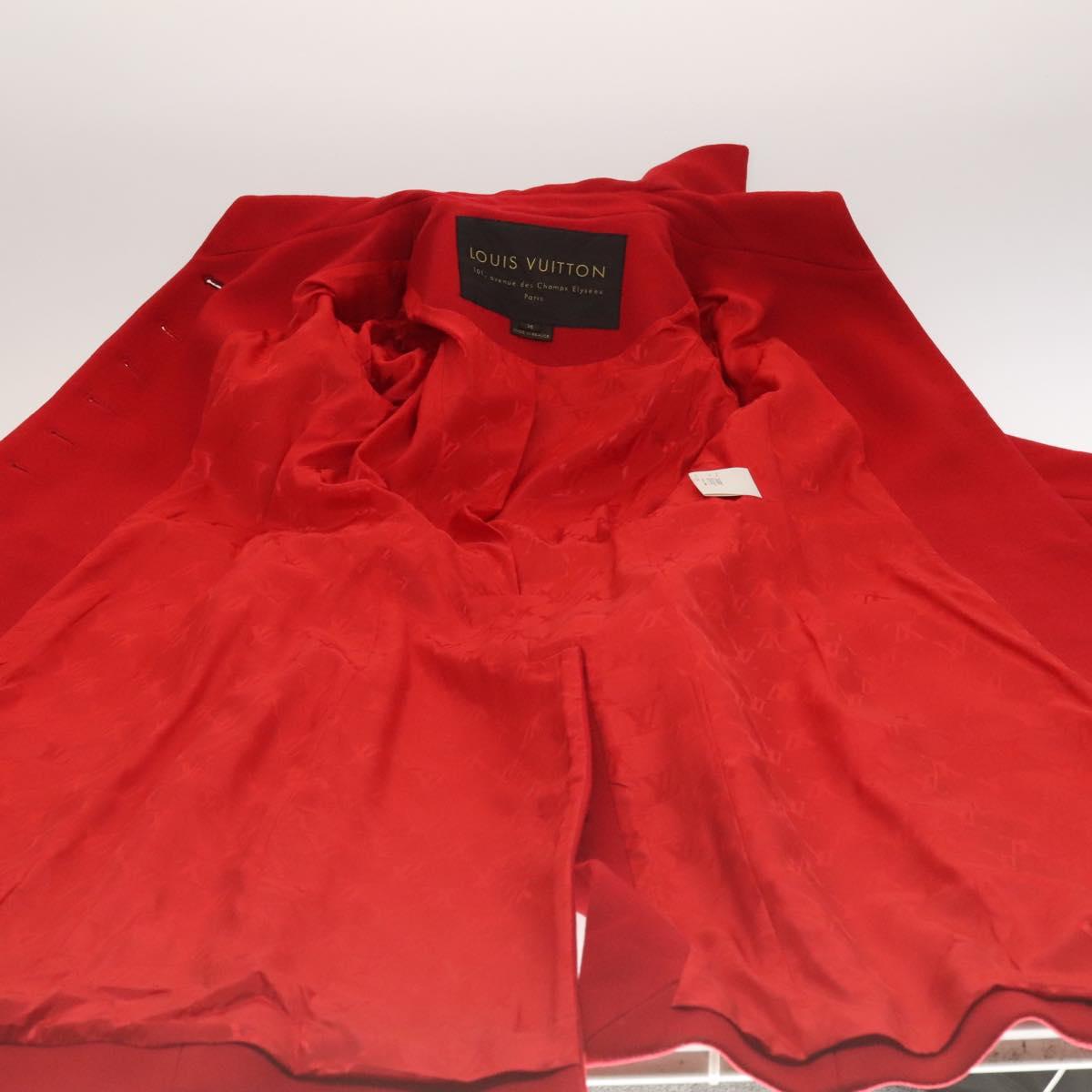 LOUIS VUITTON Long Coat Jacket Cashmere 36 Red LV Auth am7980