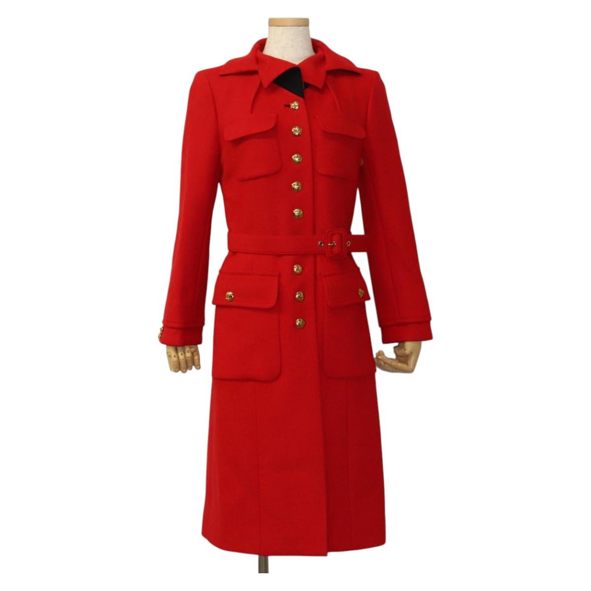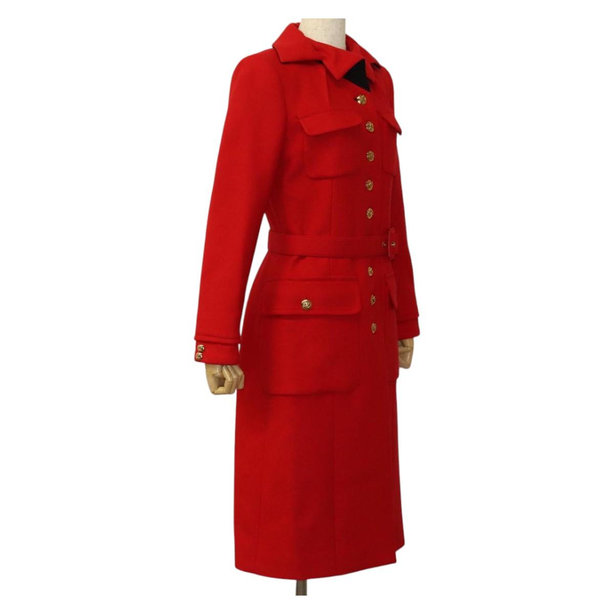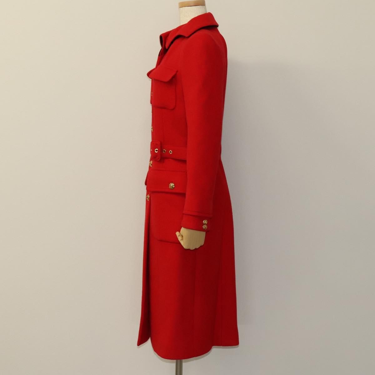 LOUIS VUITTON Long Coat Jacket Cashmere 36 Red LV Auth am7980