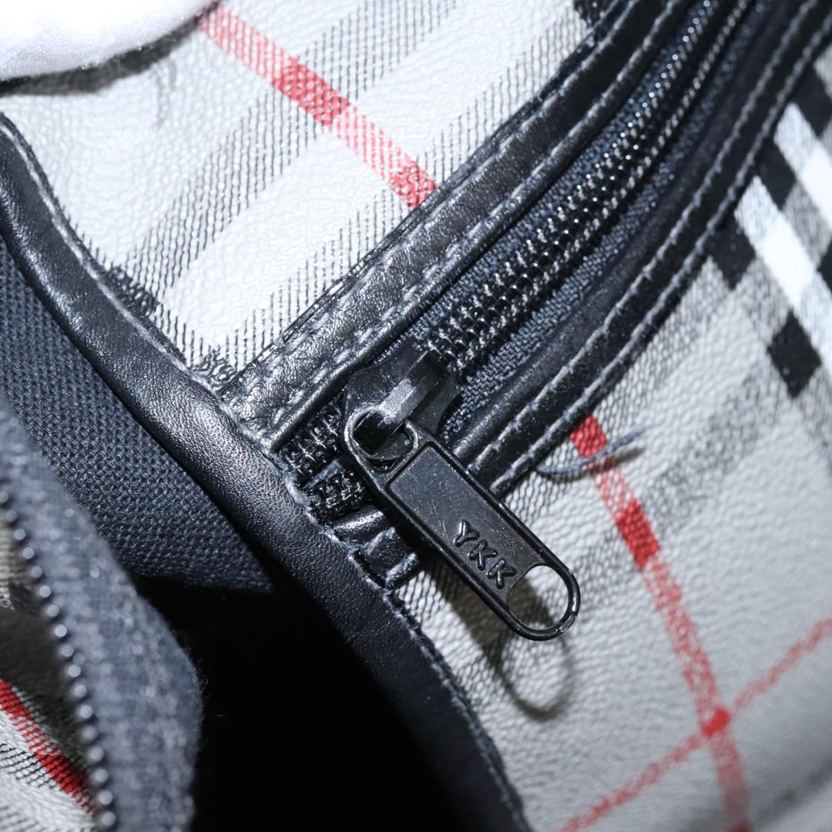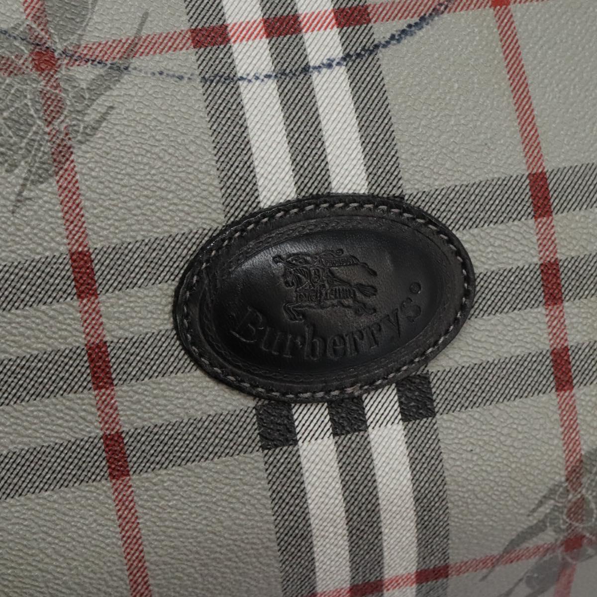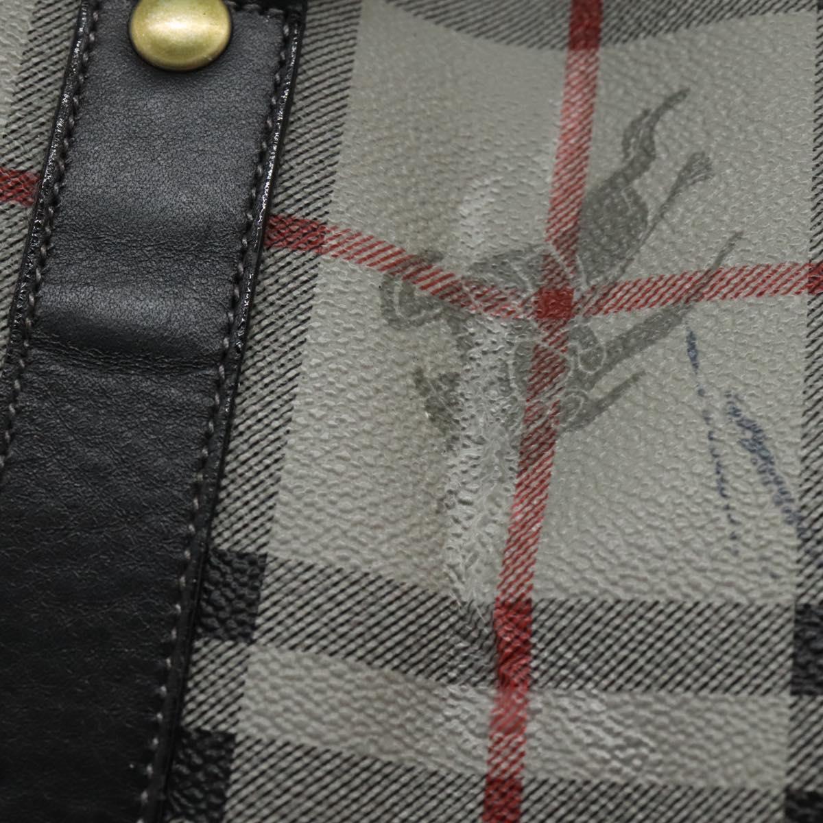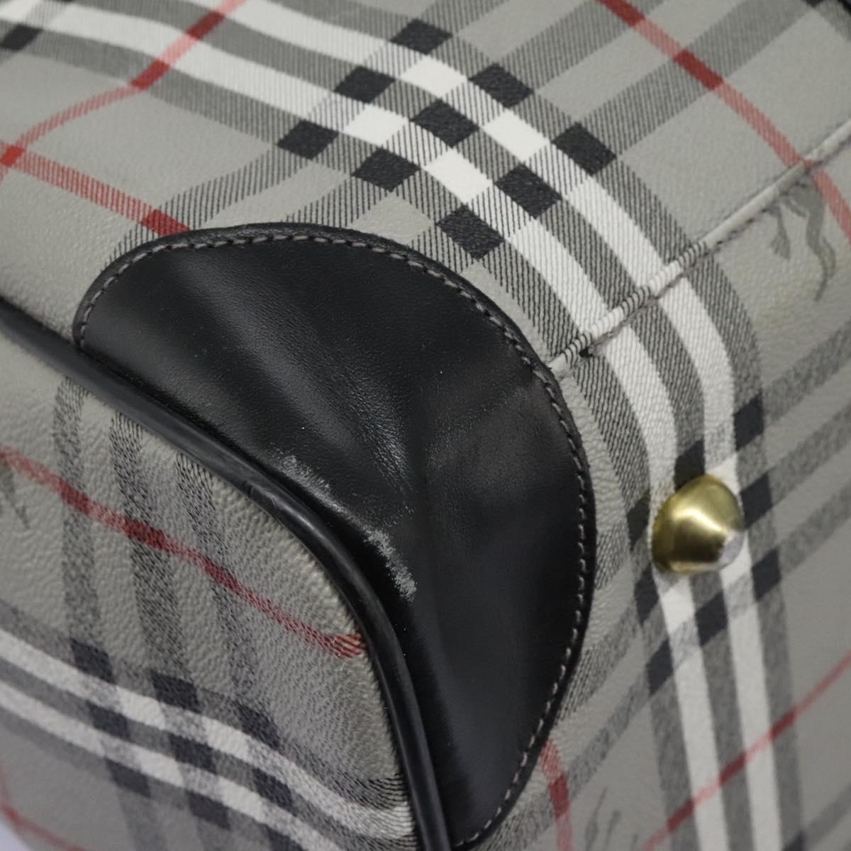Burberrys Nova Check Boston Bag PVC Gray Gold Auth 118312