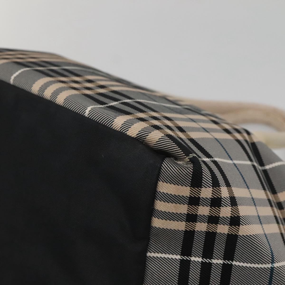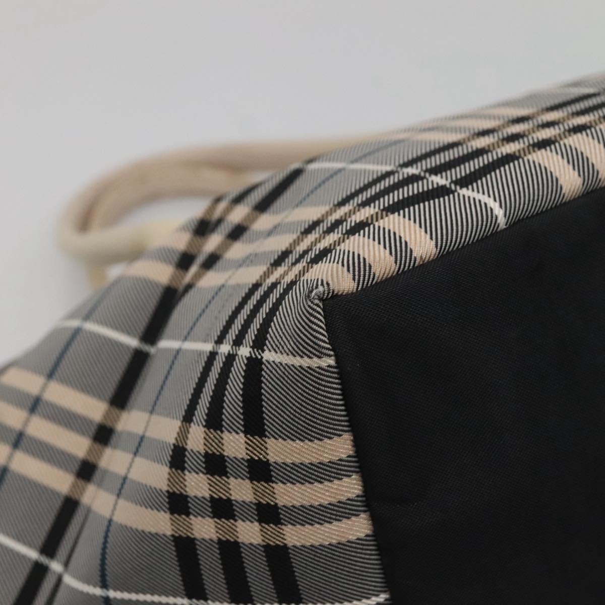 BURBERRY Nova Check Blue Label Hand Bag Nylon Gray Silver Auth ti3042