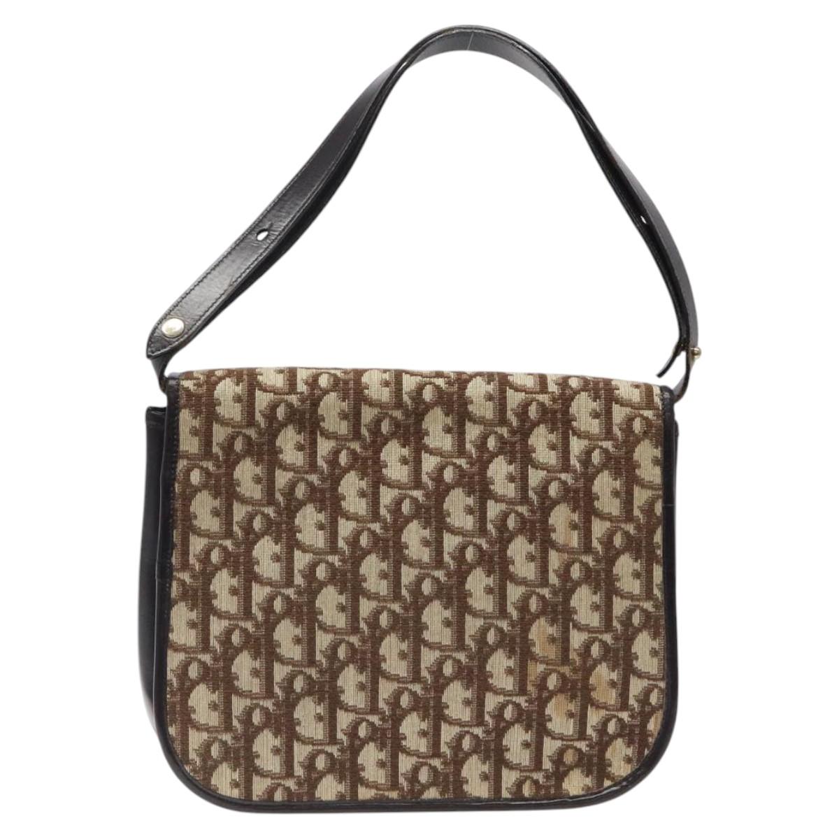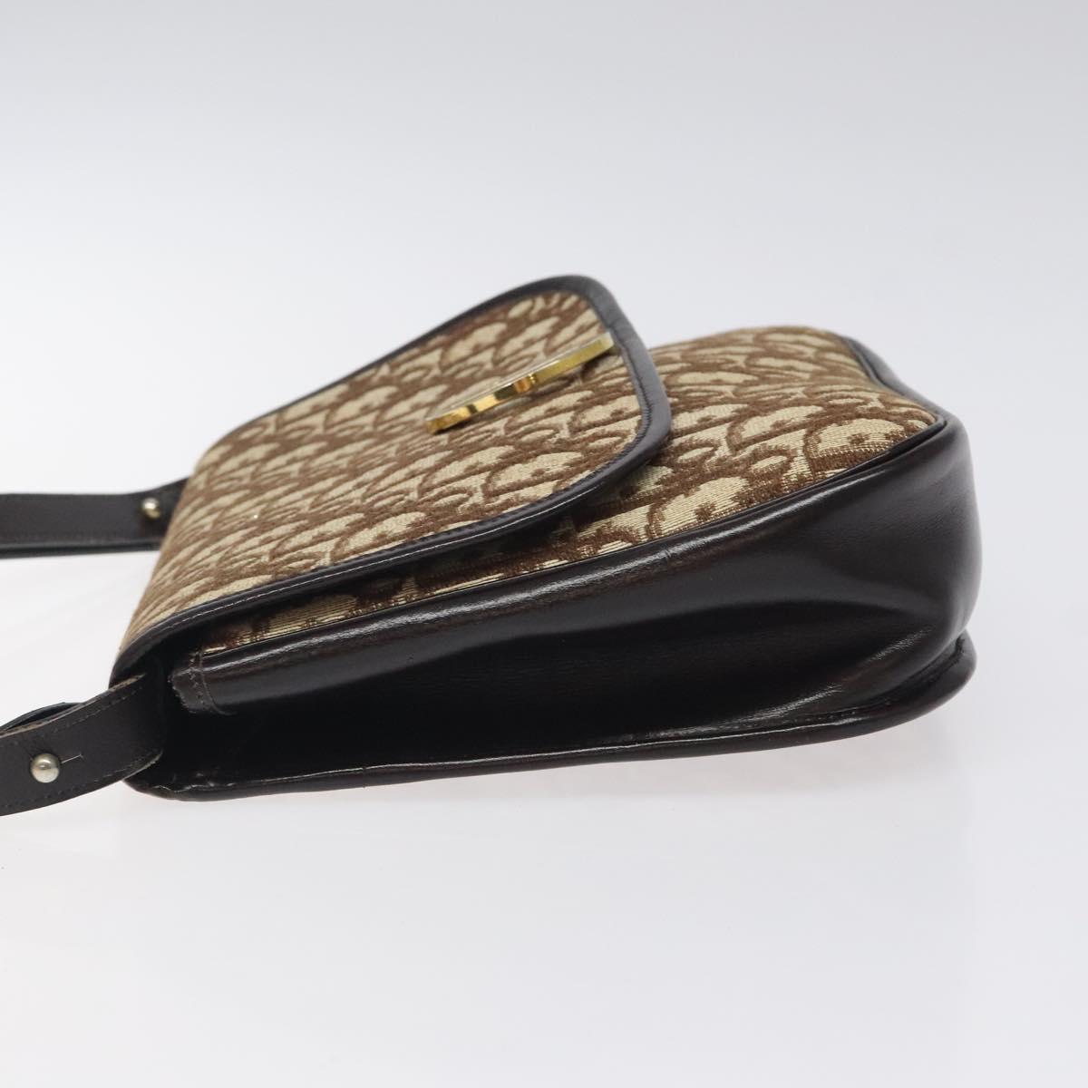 Christian Dior Trotter Canvas Shoulder Bag Brown Gold Auth MX010