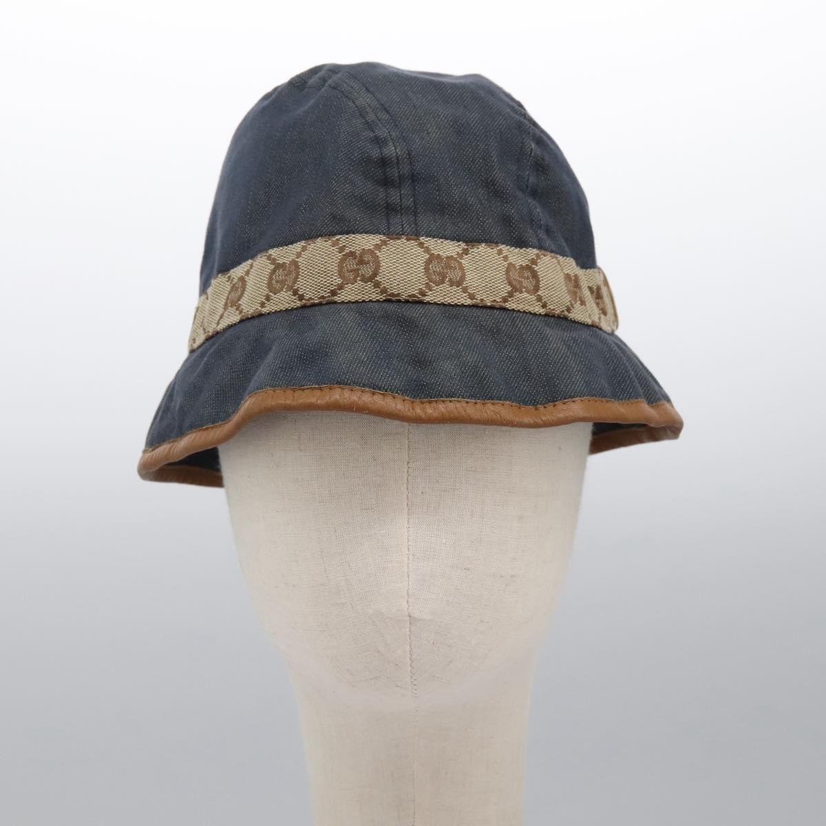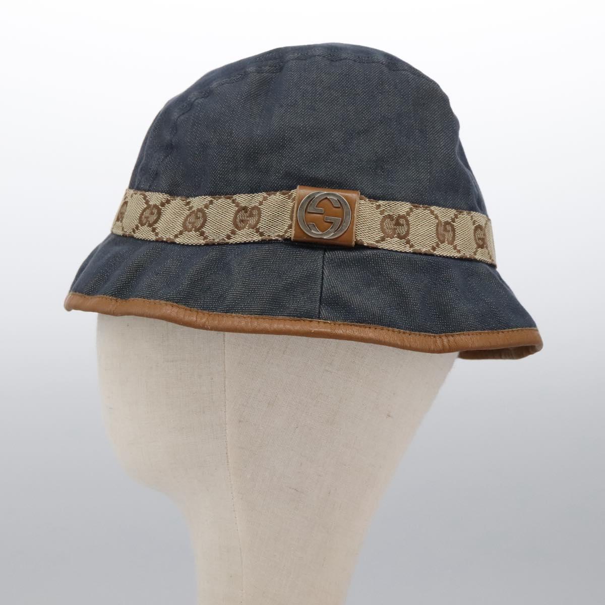 GUCCI GG Canvas Bucket Hat M Beige Blue 122118 Auth hk2073