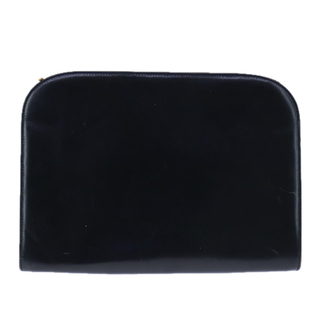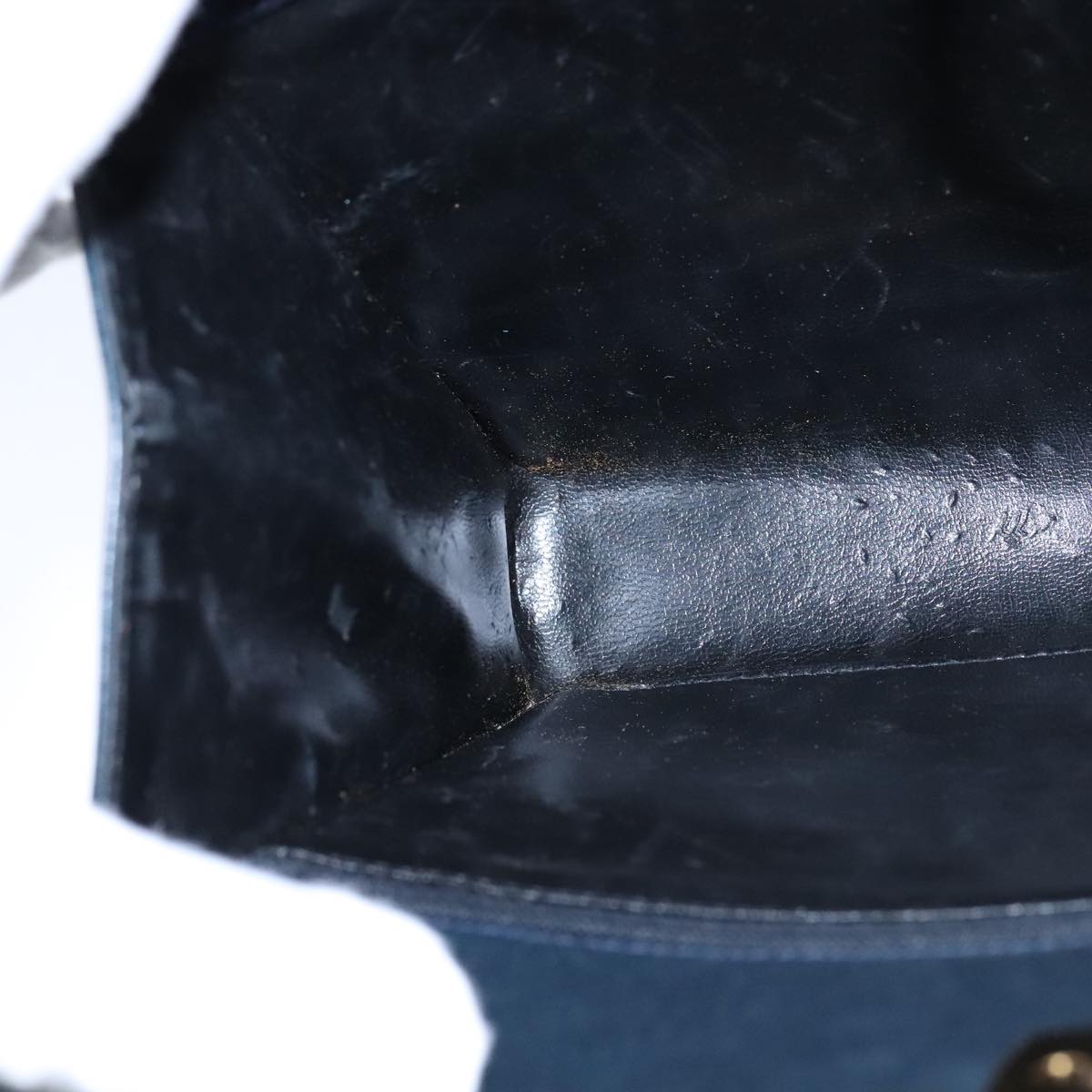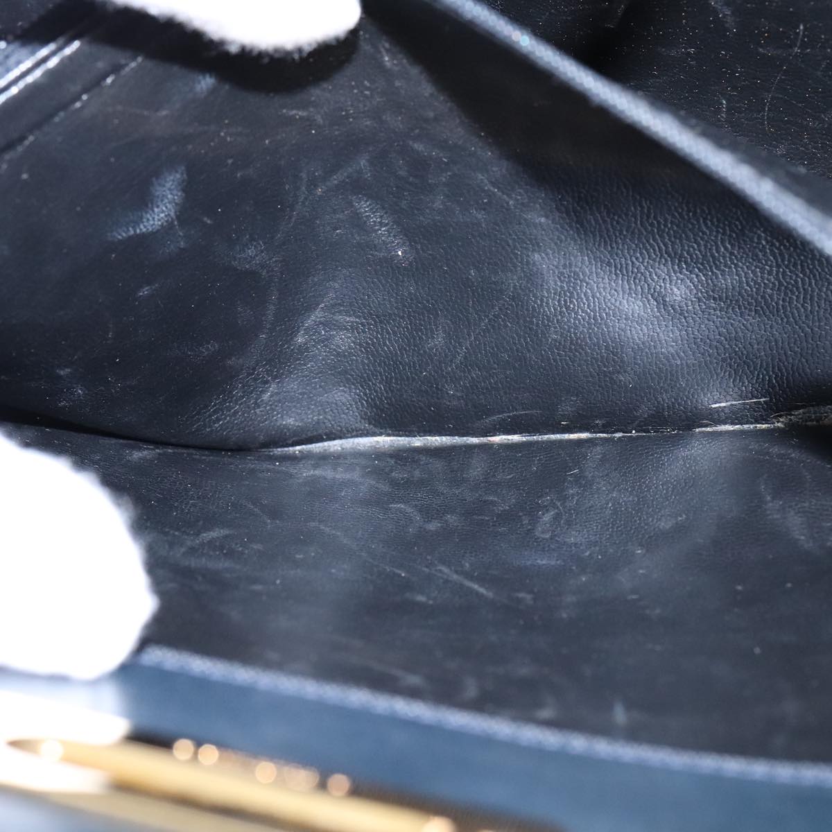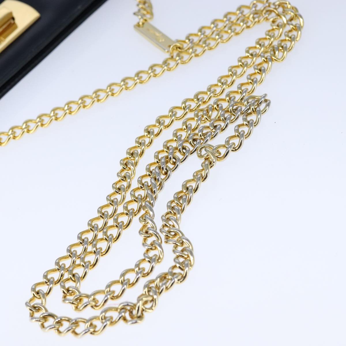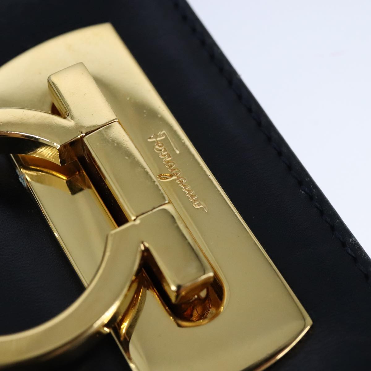 Salvatore Ferragamo Gancini Chain Shoulder Bag Leather Navy Gold Auth 105376