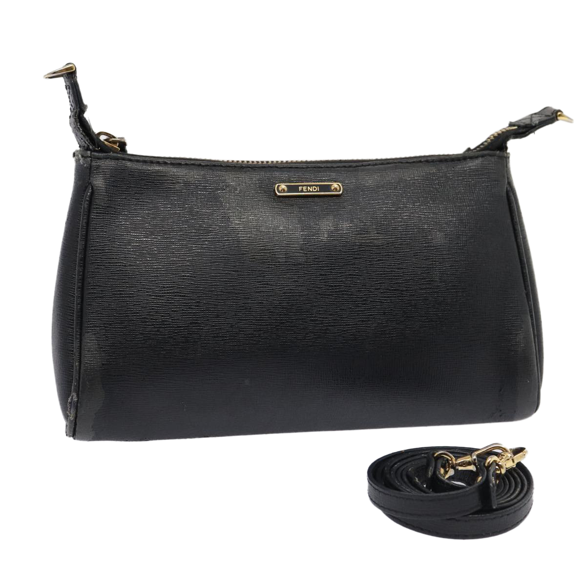 FENDI Shoulder Bag Leather Navy Auth 80189