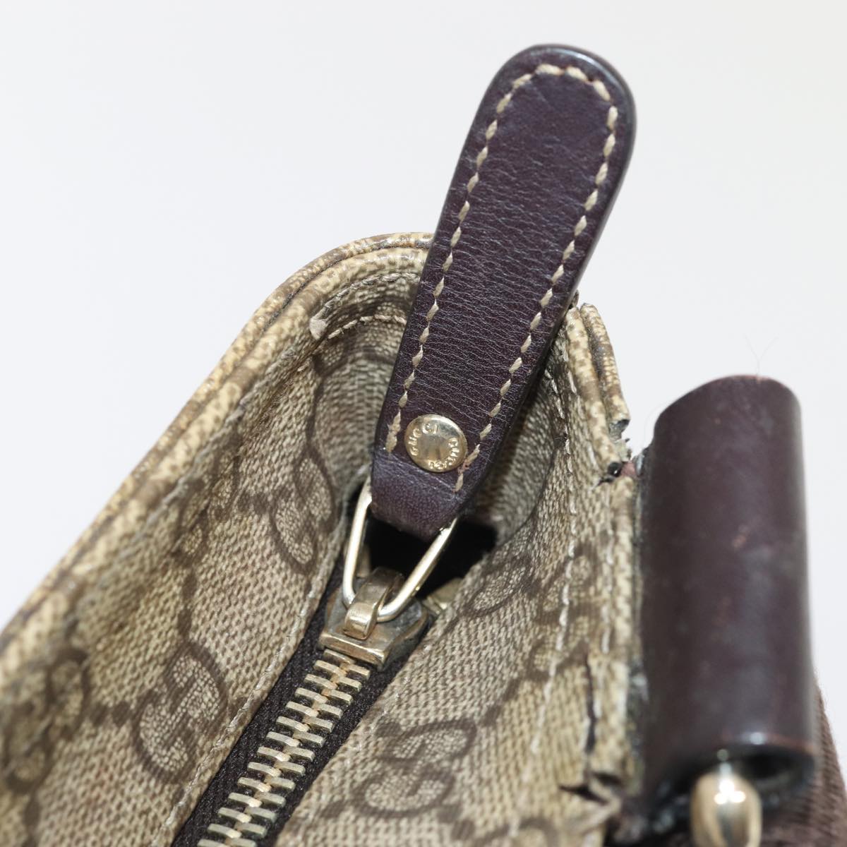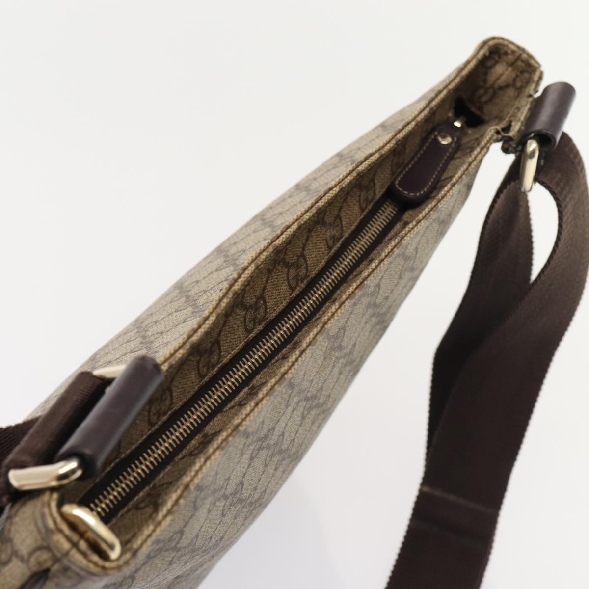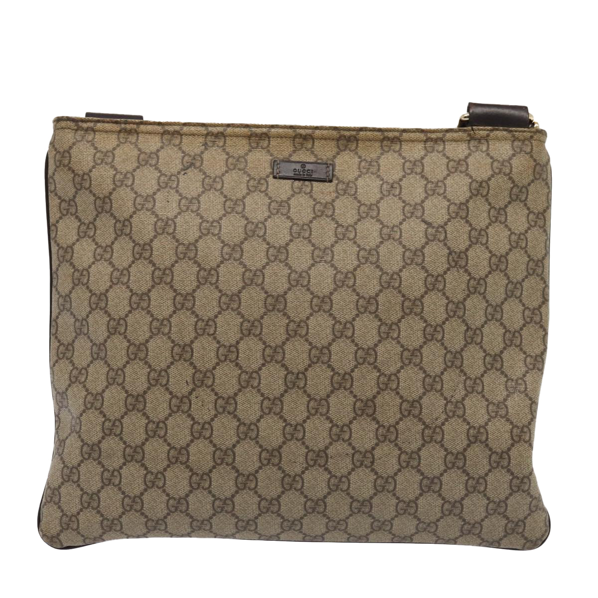 GUCCI GG Supreme Shoulder Bag PVC Leather Beige Silver 201446 Auth 85724