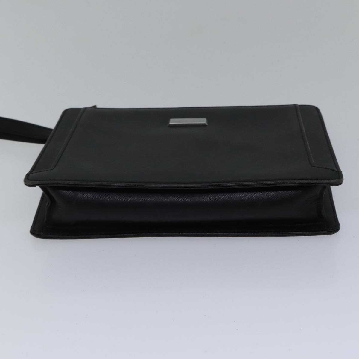 BURBERRY Clutch Bag Leather Black Silver Auth bs17644