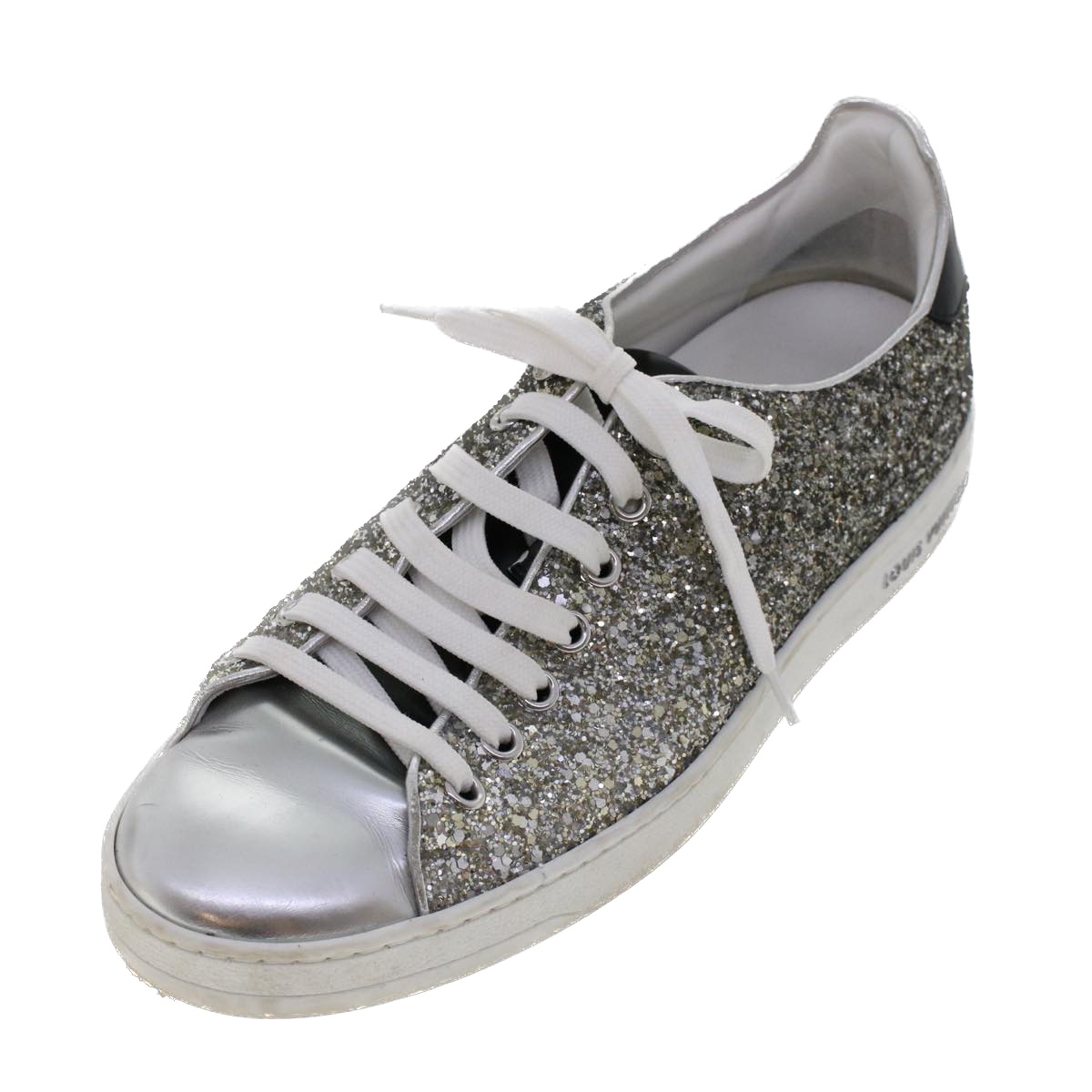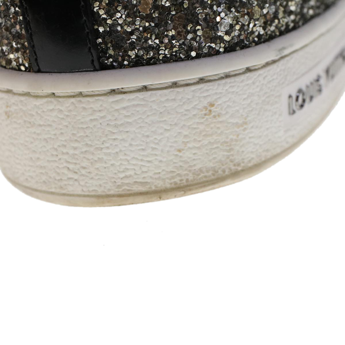 LOUIS VUITTON Front Low Line Glitter Sneakers Leather 38.5 Silver LV Auth ak199
