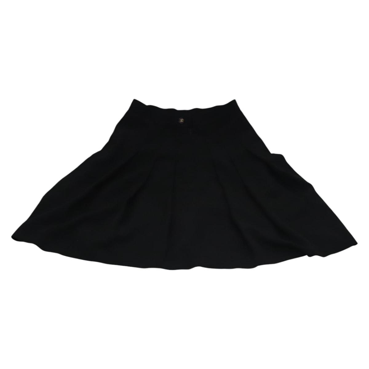 CHANEL Skirt Cotton Black CC Auth ac3620