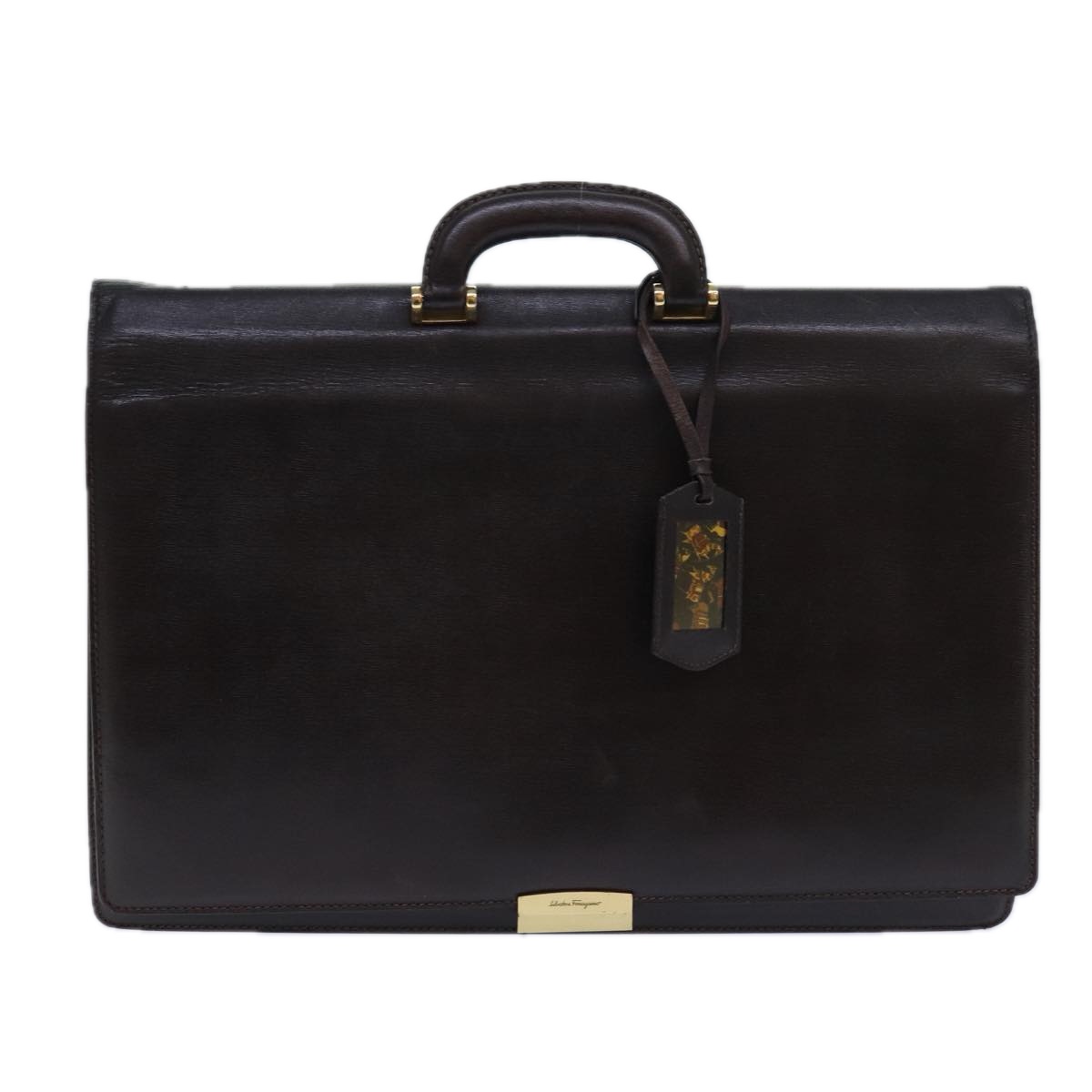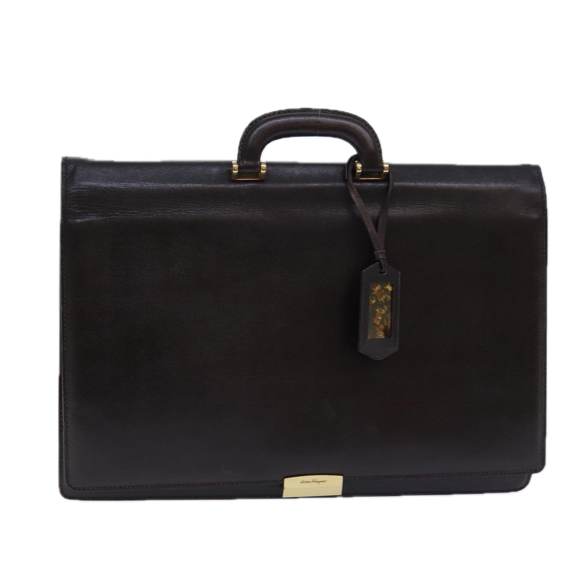 Salvatore Ferragamo Hand Bag Leather Brown Auth bs16506