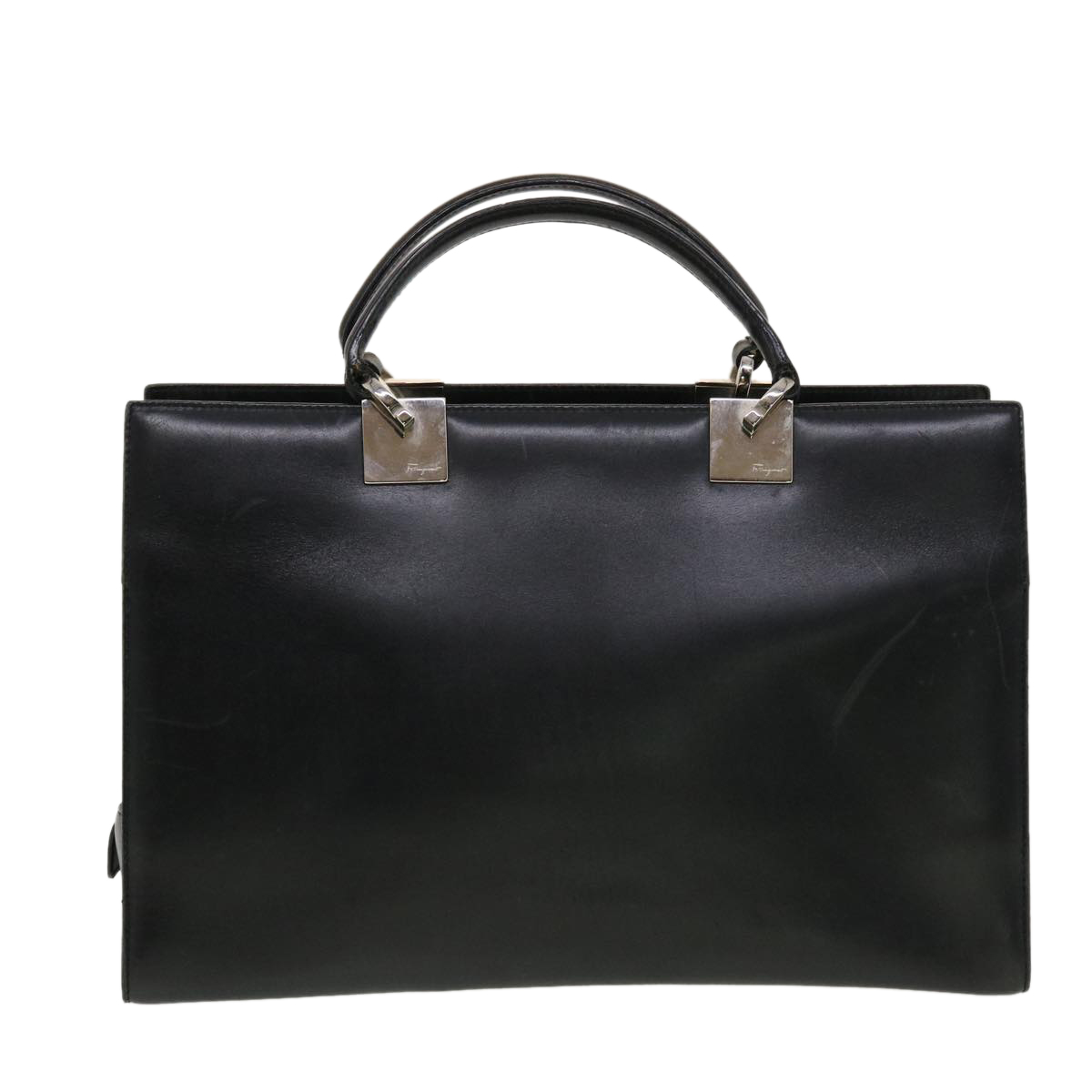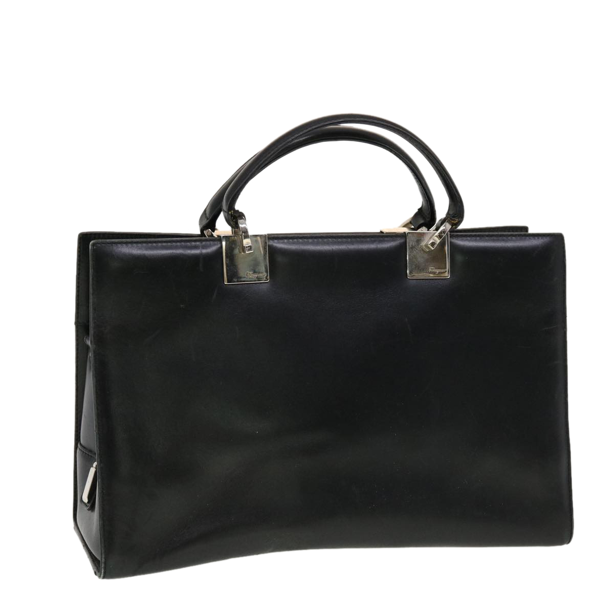 Salvatore Ferragamo Hand Bag Leather Black Auth cl501