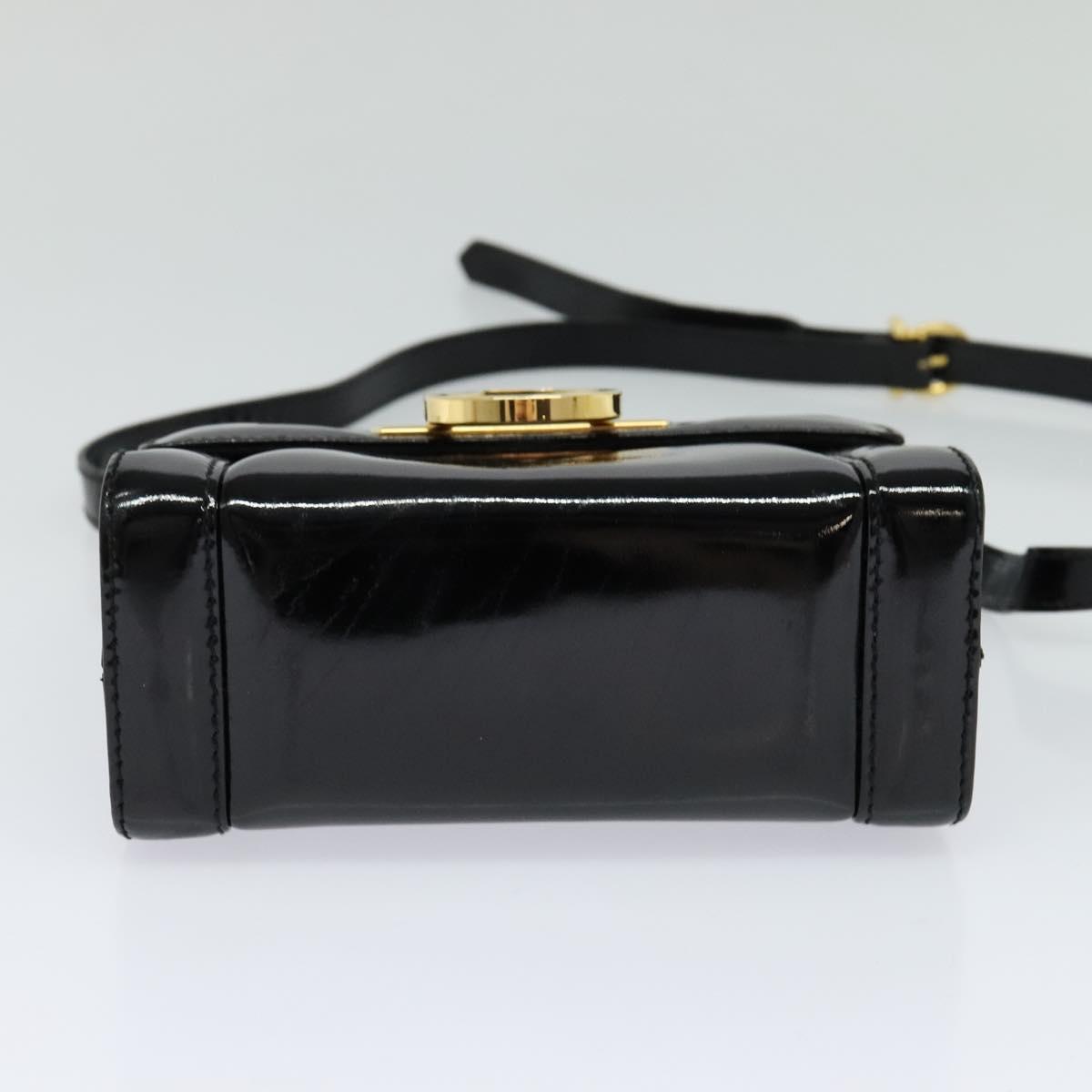 Salvatore Ferragamo Gancini Shoulder Bag Enamel Black Gold Auth KD105