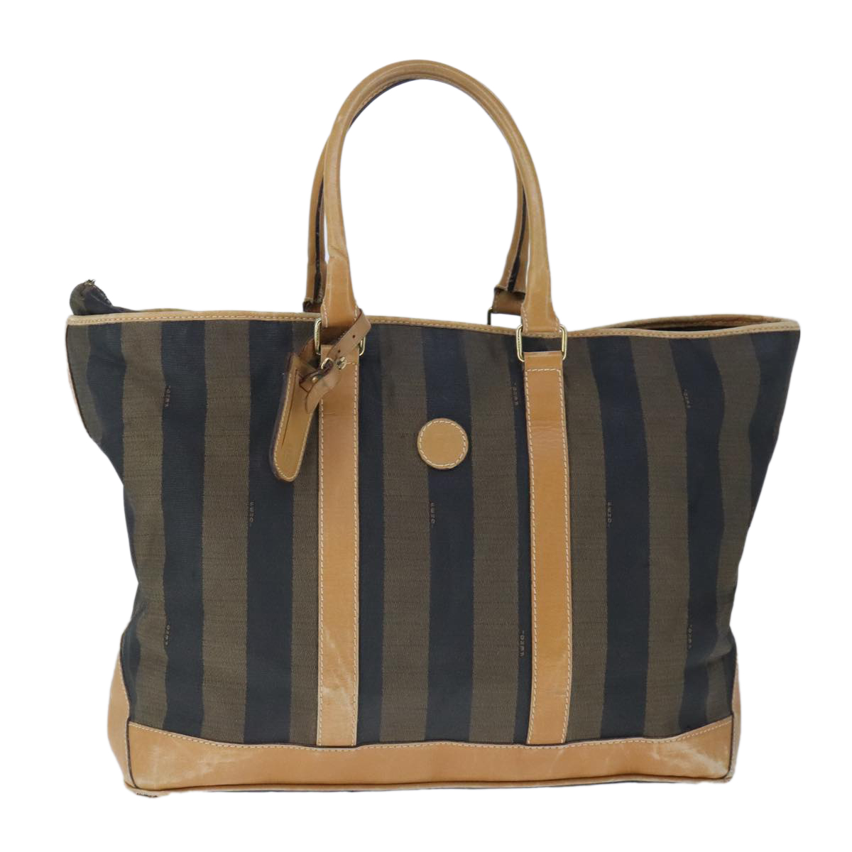 FENDI Pecan Canvas Boston Bag Coated Canvas Khaki Brown Auth ti2355