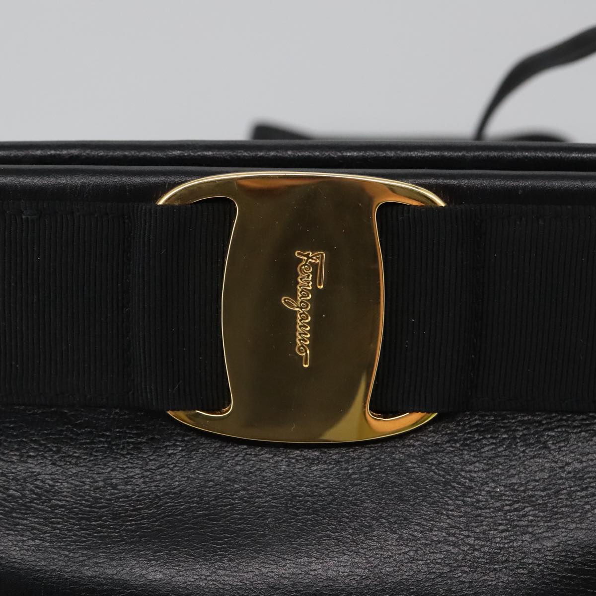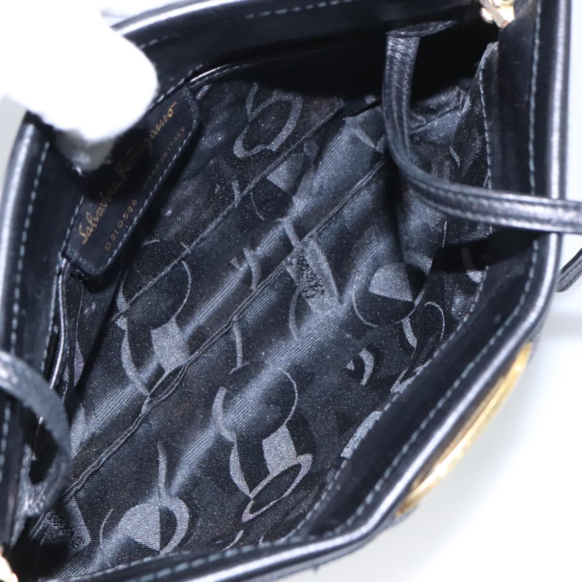 Salvatore Ferragamo Shoulder Bag Leather Black Gold Auth yk15984