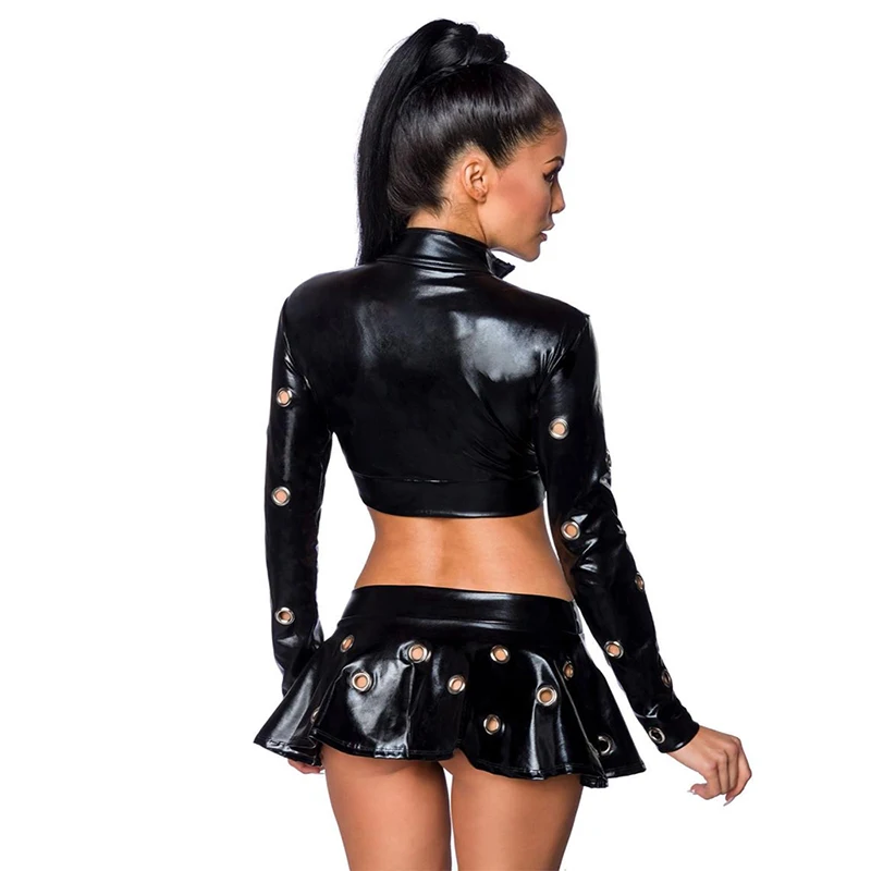 Crafted from high-quality, stretchy materials, this two-piece set provides a flattering fit that accentuates your curves in all the right places. The crop top's zipper can be adjusted to your desired level of exposure, allowing you to customize your look to match your mood. The low waist skater skirt is designed to sit perfectly on your hips, creating a seamless and flattering line. Whether you're hitting the dance floor or enjoying a night out with friends, this outfit will keep you feeling confident and chic.