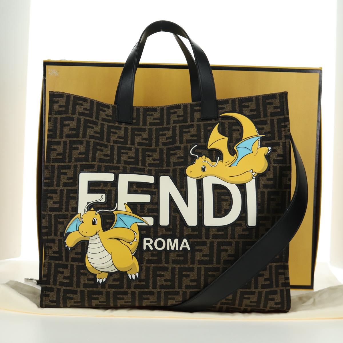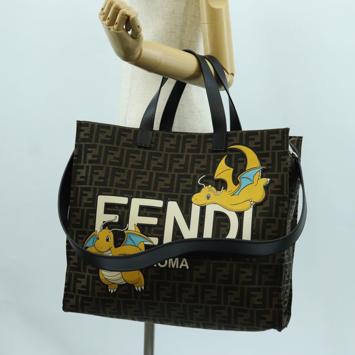 FENDI Zucca Canvas Fragment x POKÉMON Hand Bag 2way Brown Black Auth 171492SM