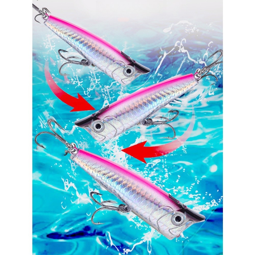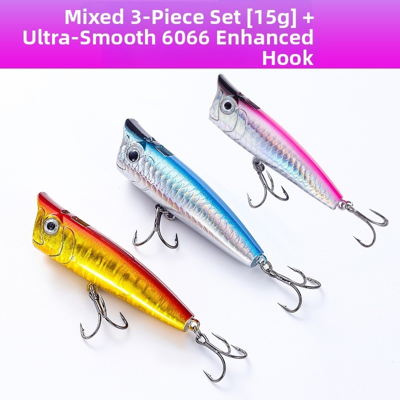 3pc Floating Popper Lure Set Topwater Fishing Bait ABS 7.5cm 9cm for Pike