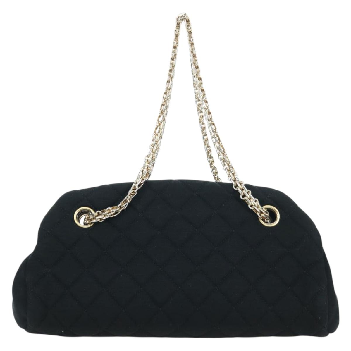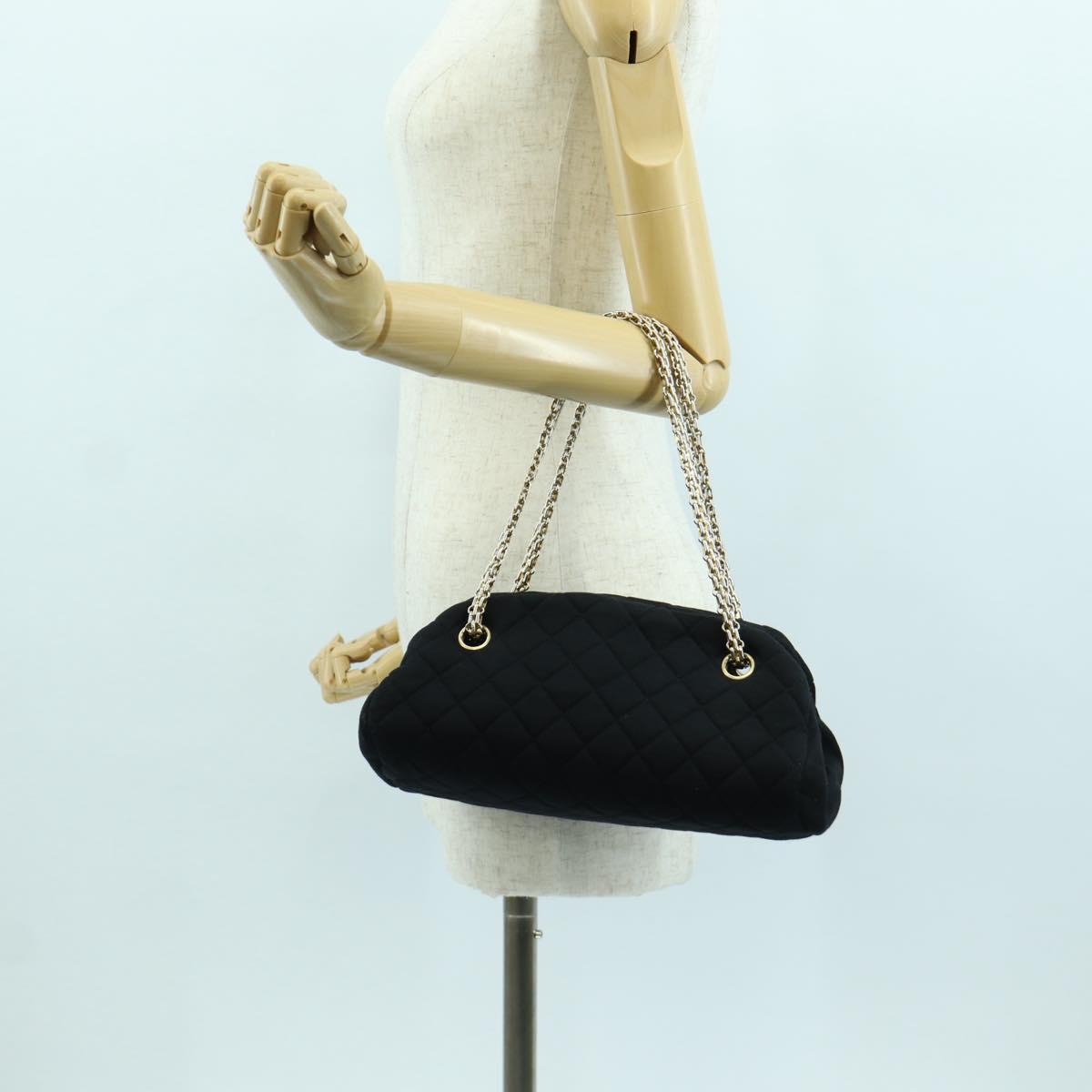 CHANEL Matelasse Chain Shoulder Bag Jersey Black Gold CC Auth 168322V