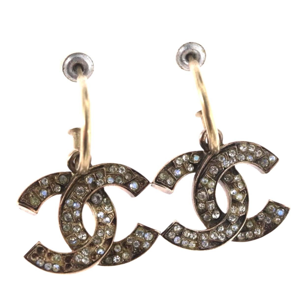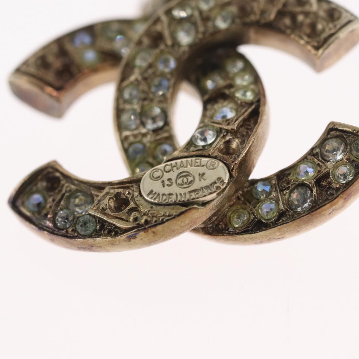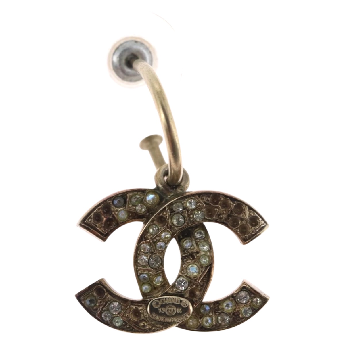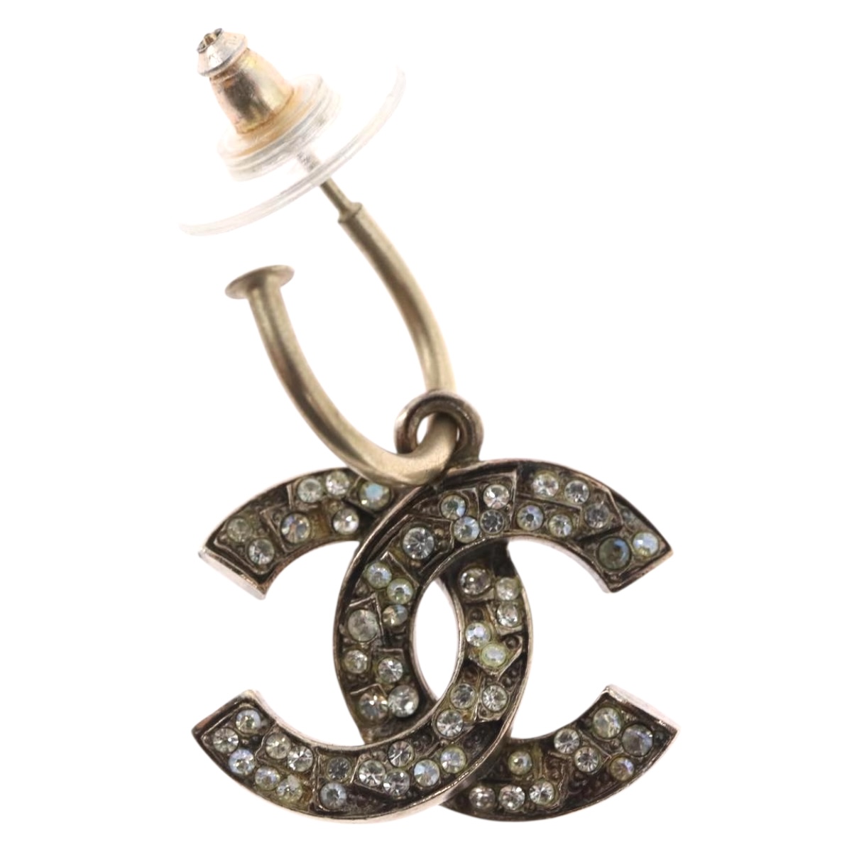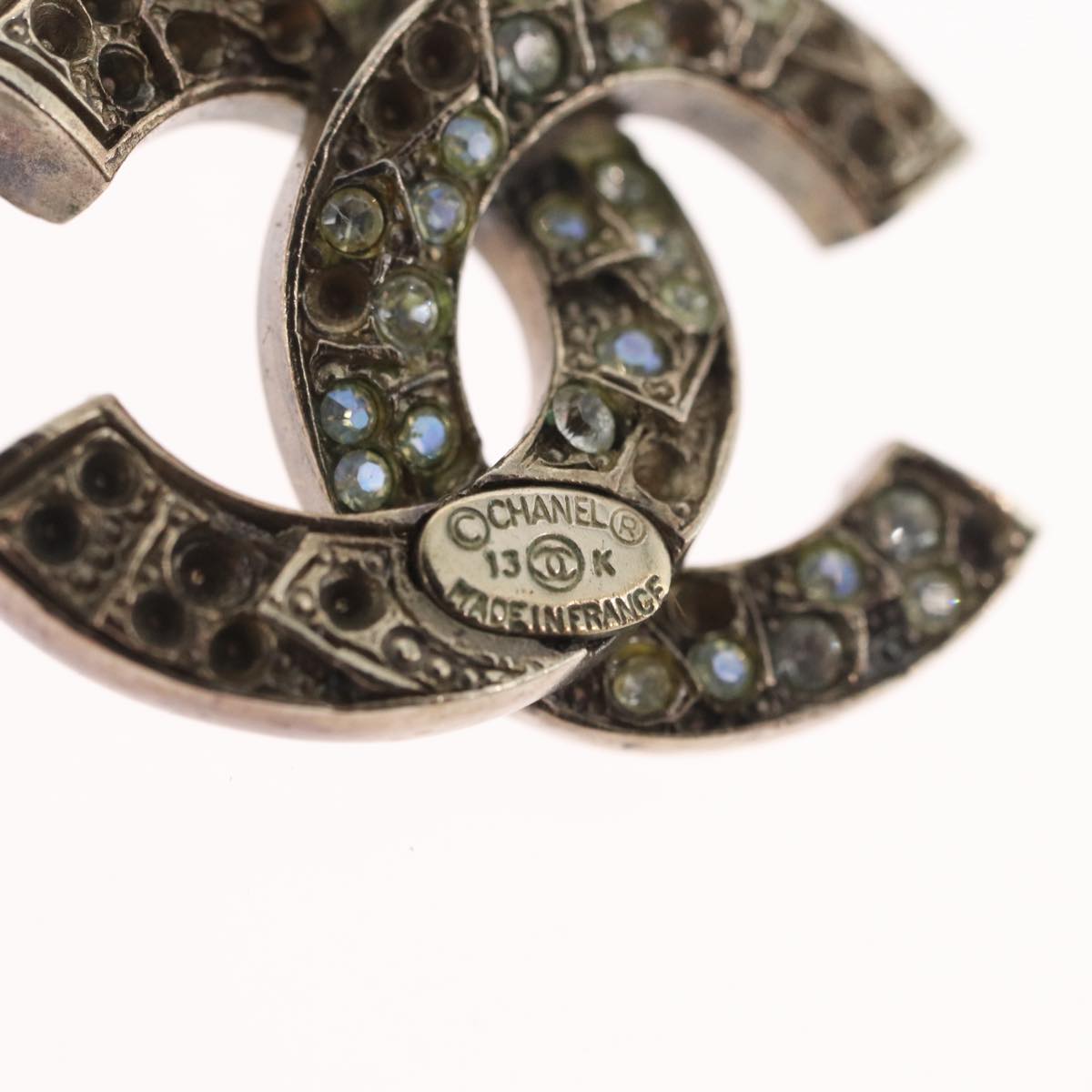 CHANEL Pierce Earring metal Silver CC Auth bs33640