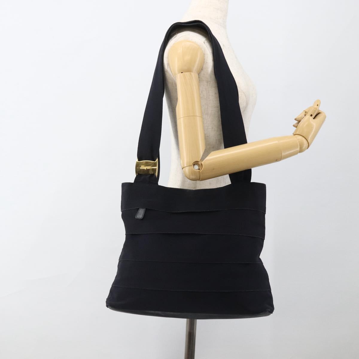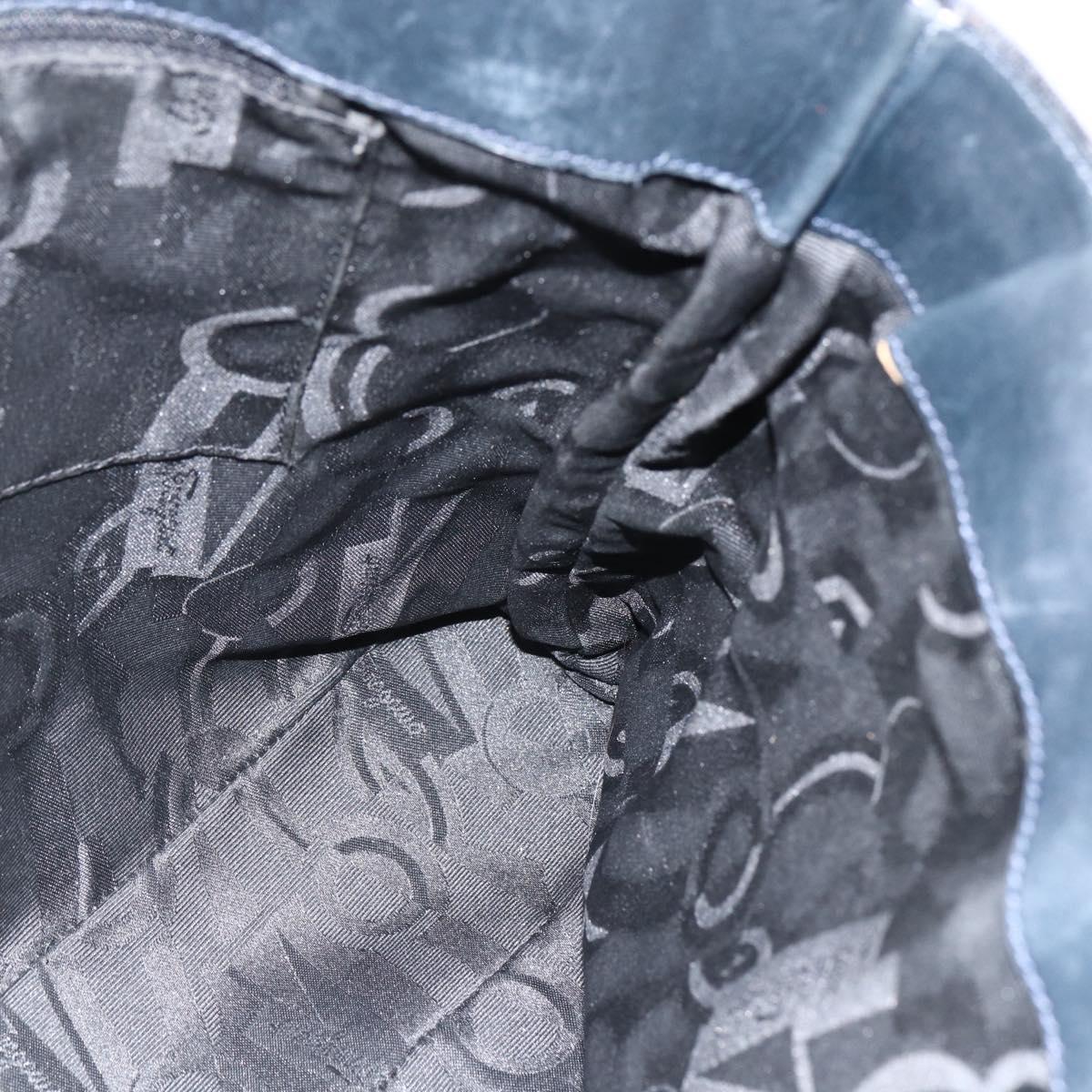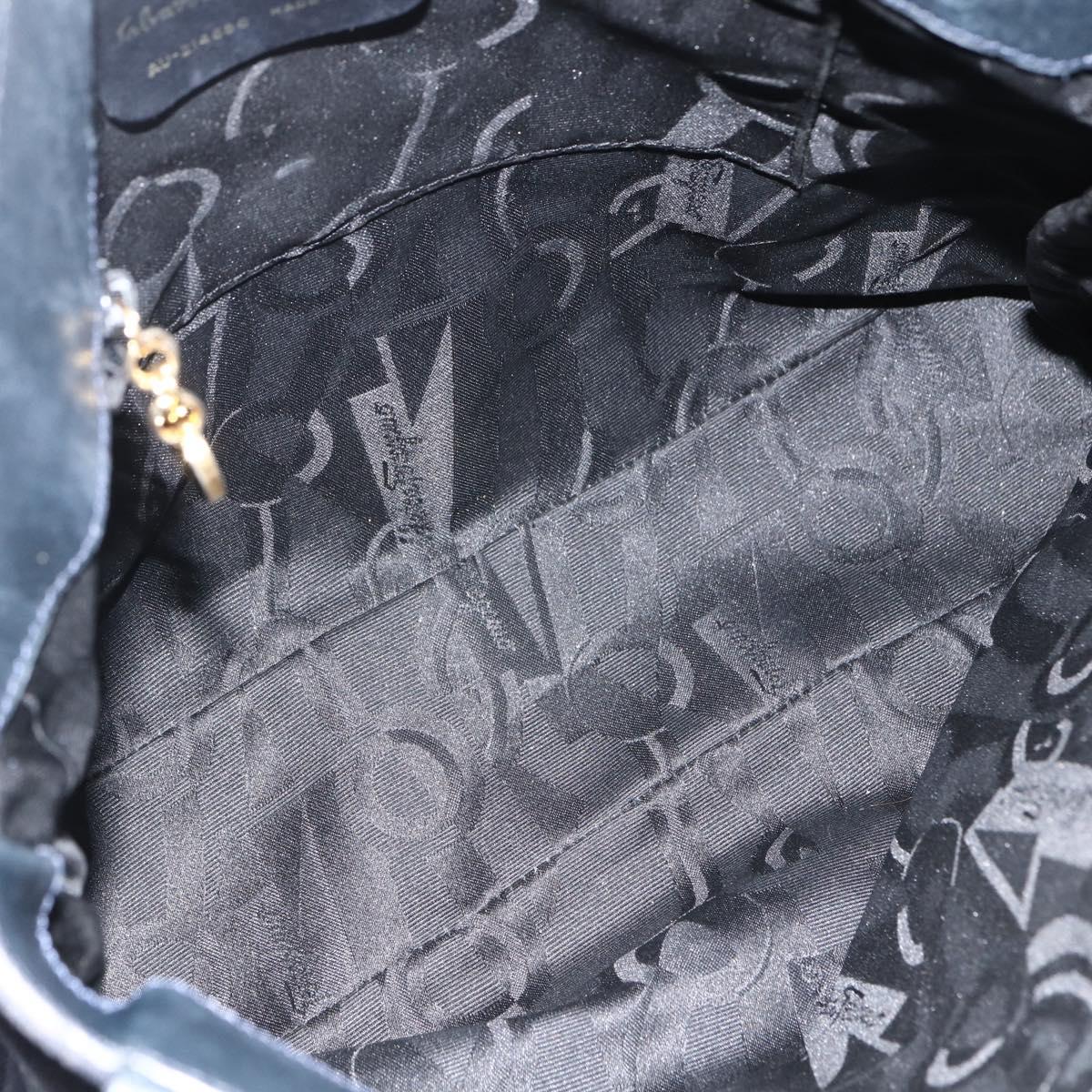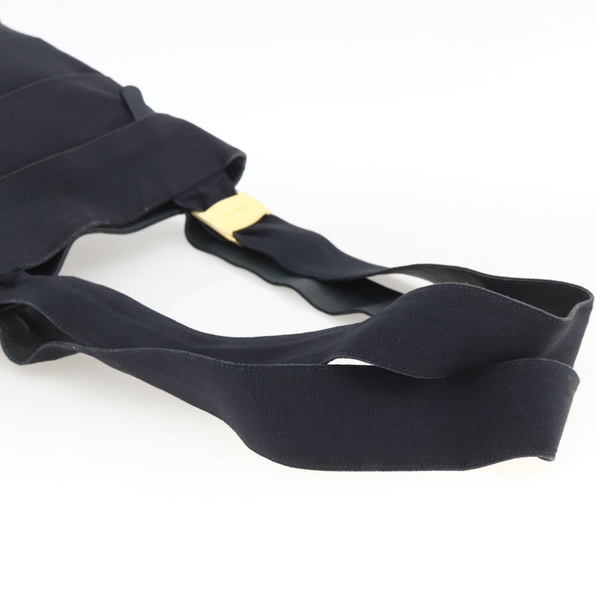 Salvatore Ferragamo Tote Bag Canvas Navy Gold Auth 173801