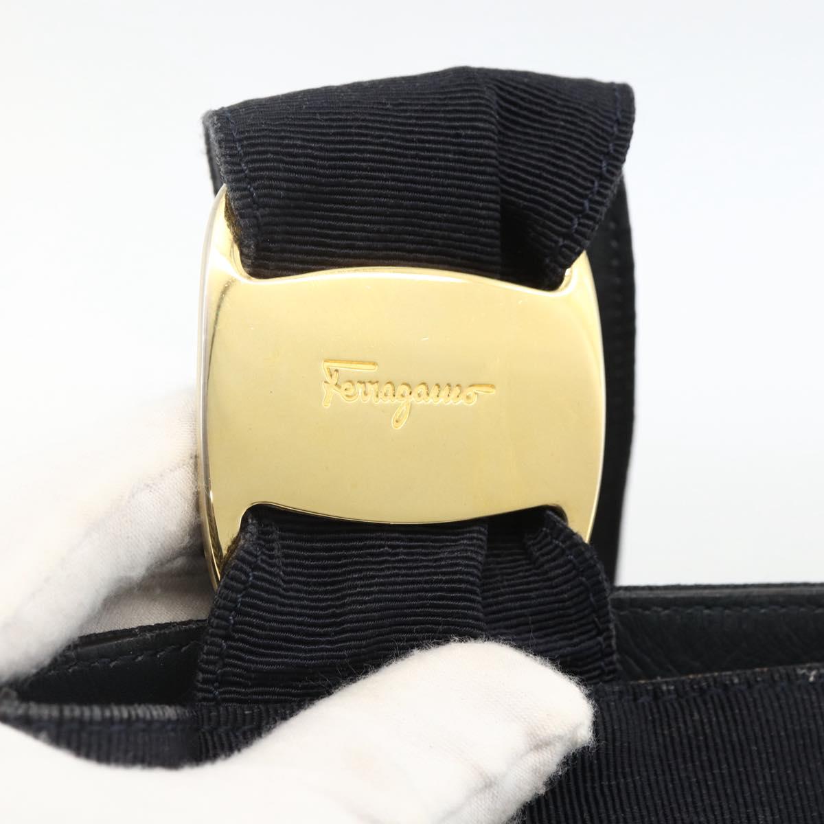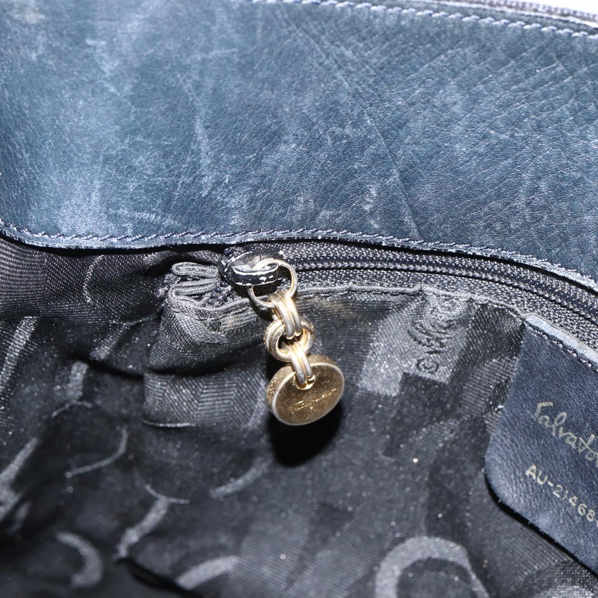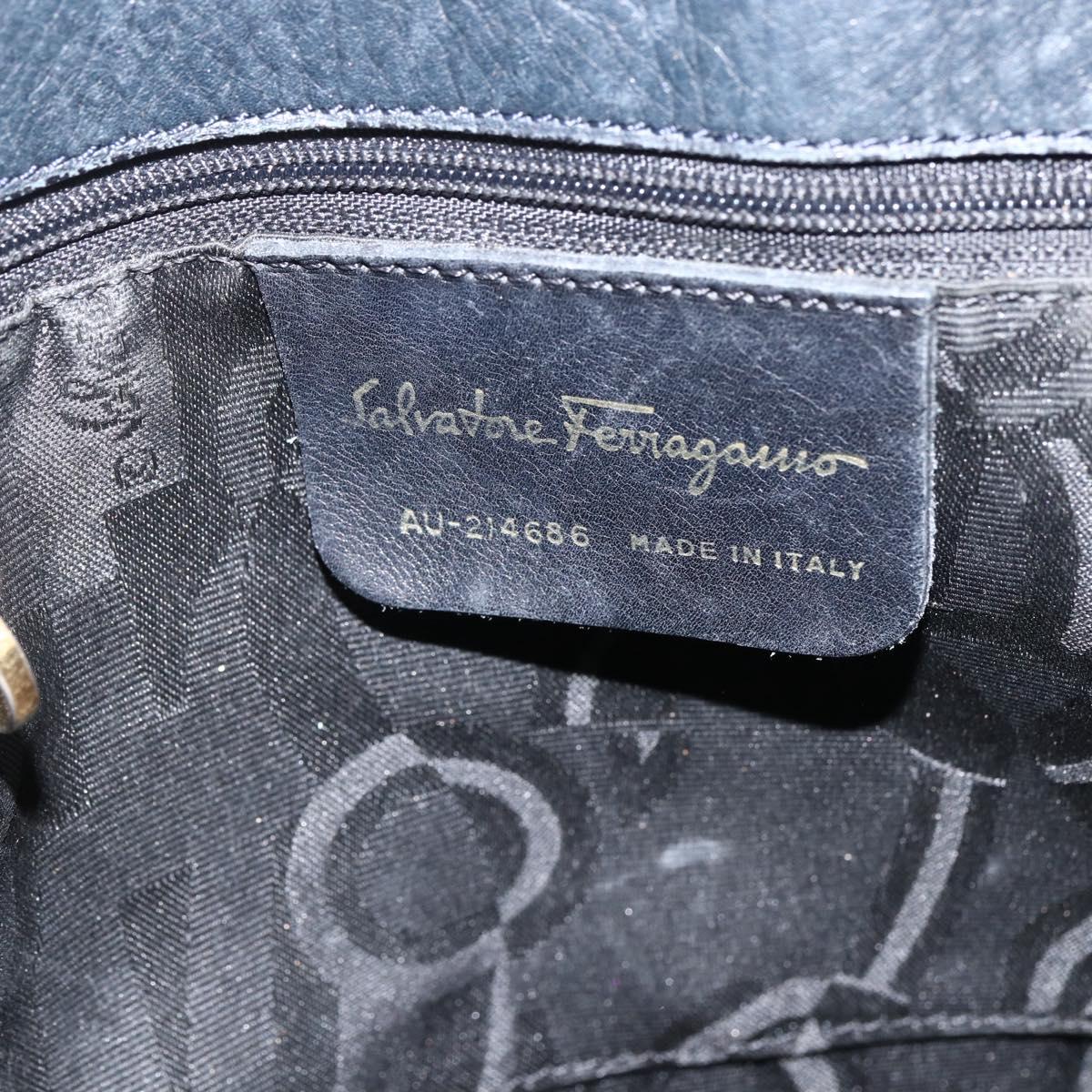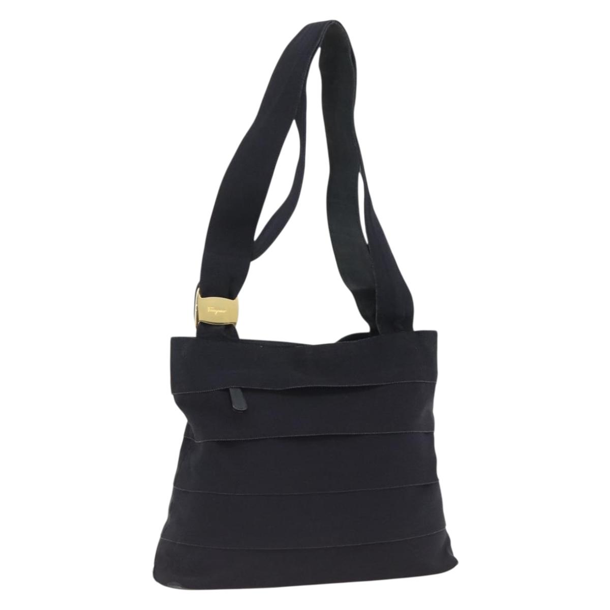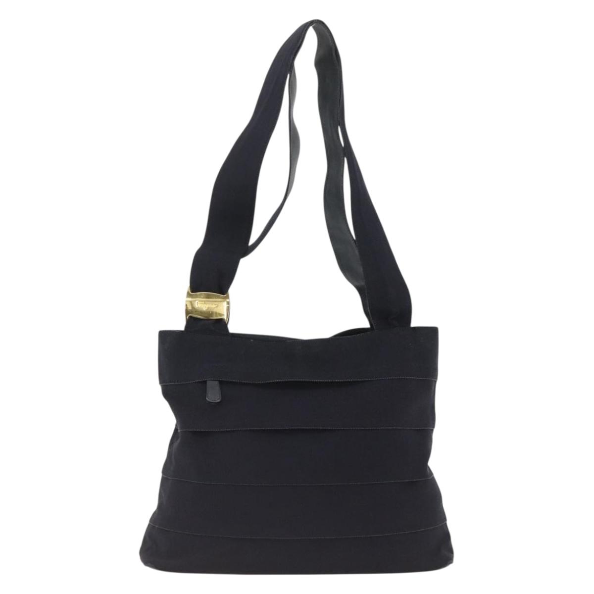Salvatore Ferragamo Tote Bag Canvas Navy Gold Auth 173801