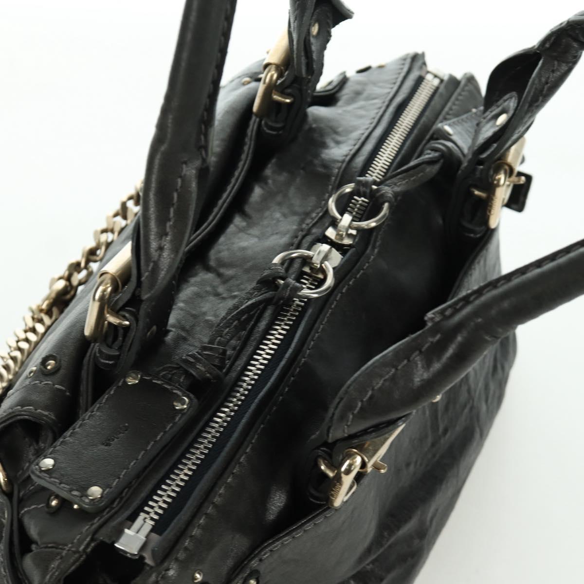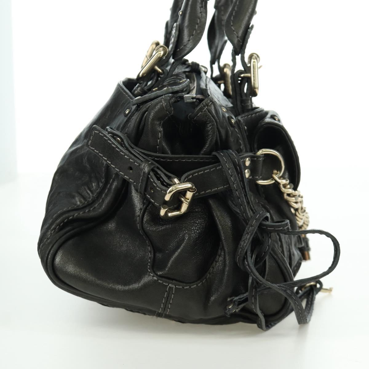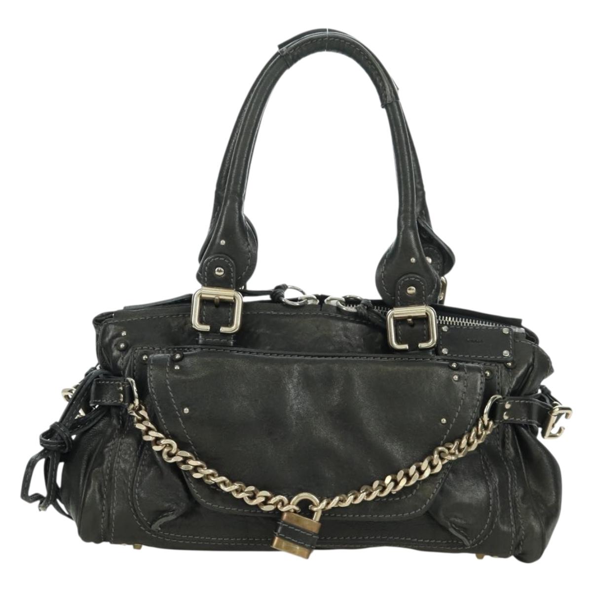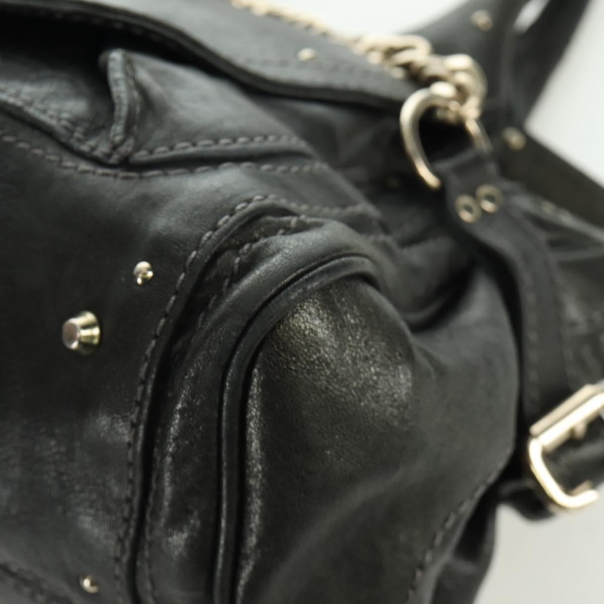 Chloe Paddington Hand Bag Leather Black Gold Silver Auth bs33836A