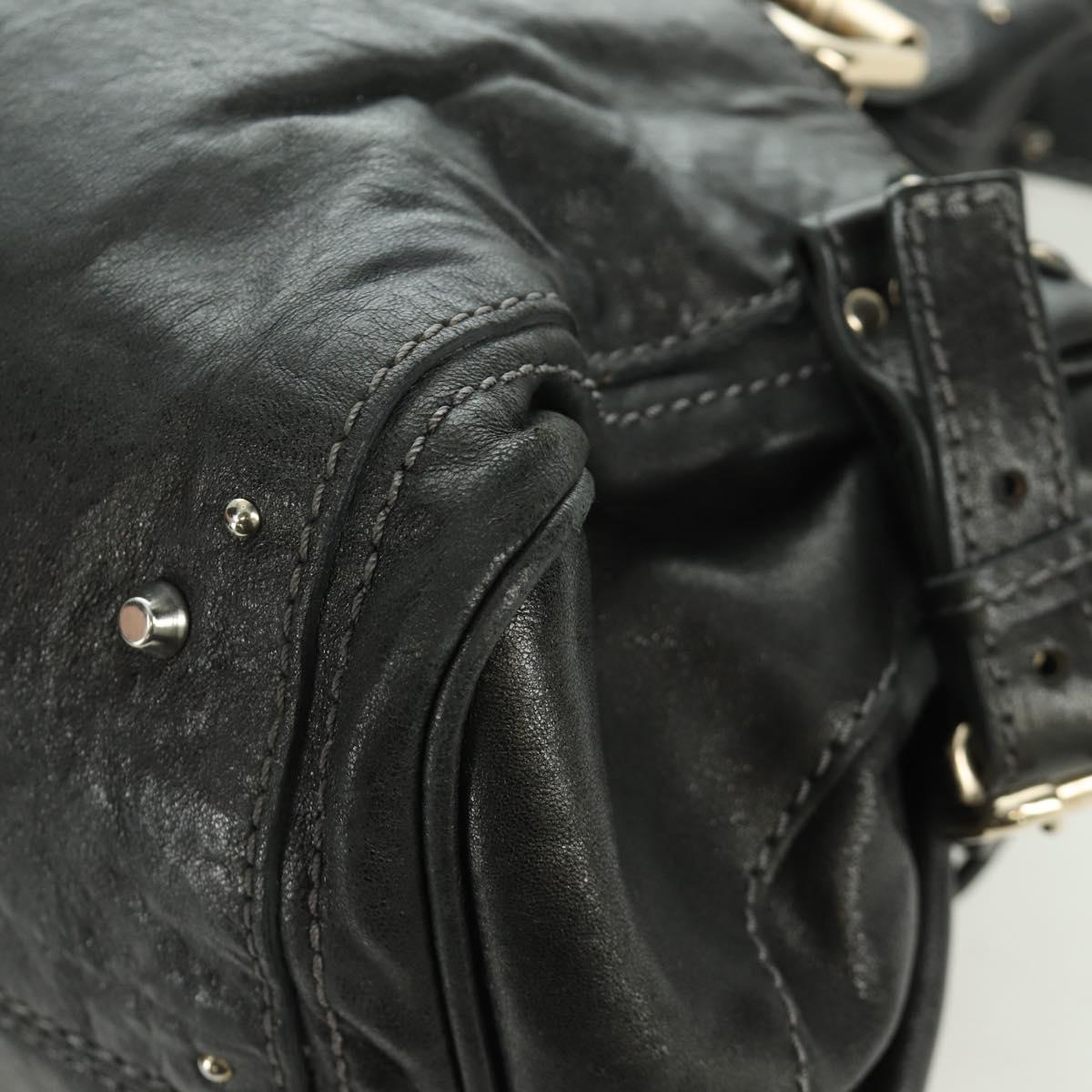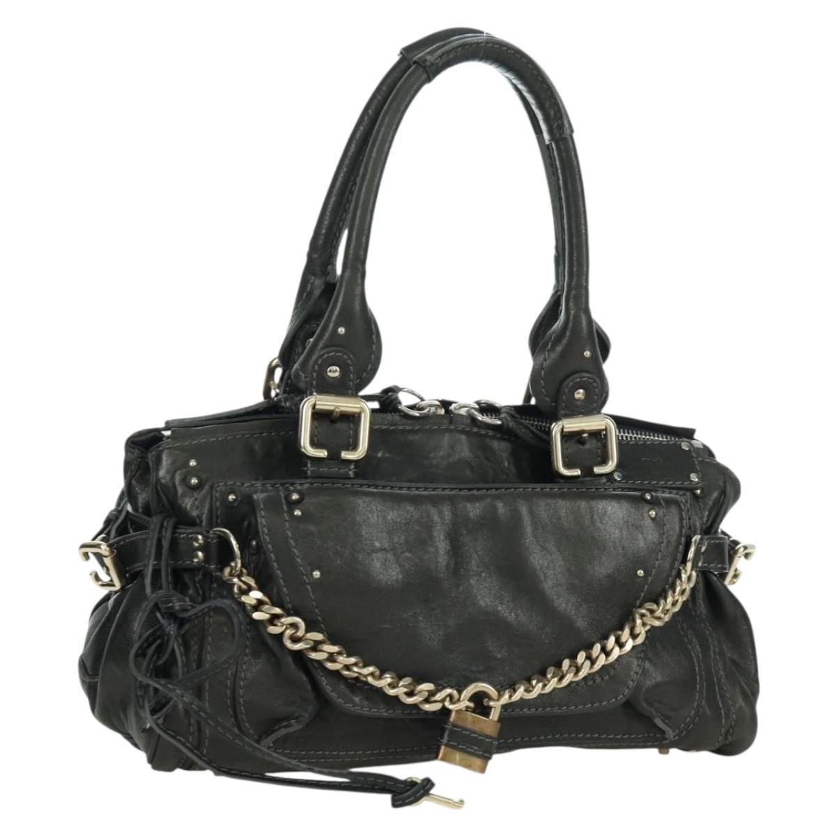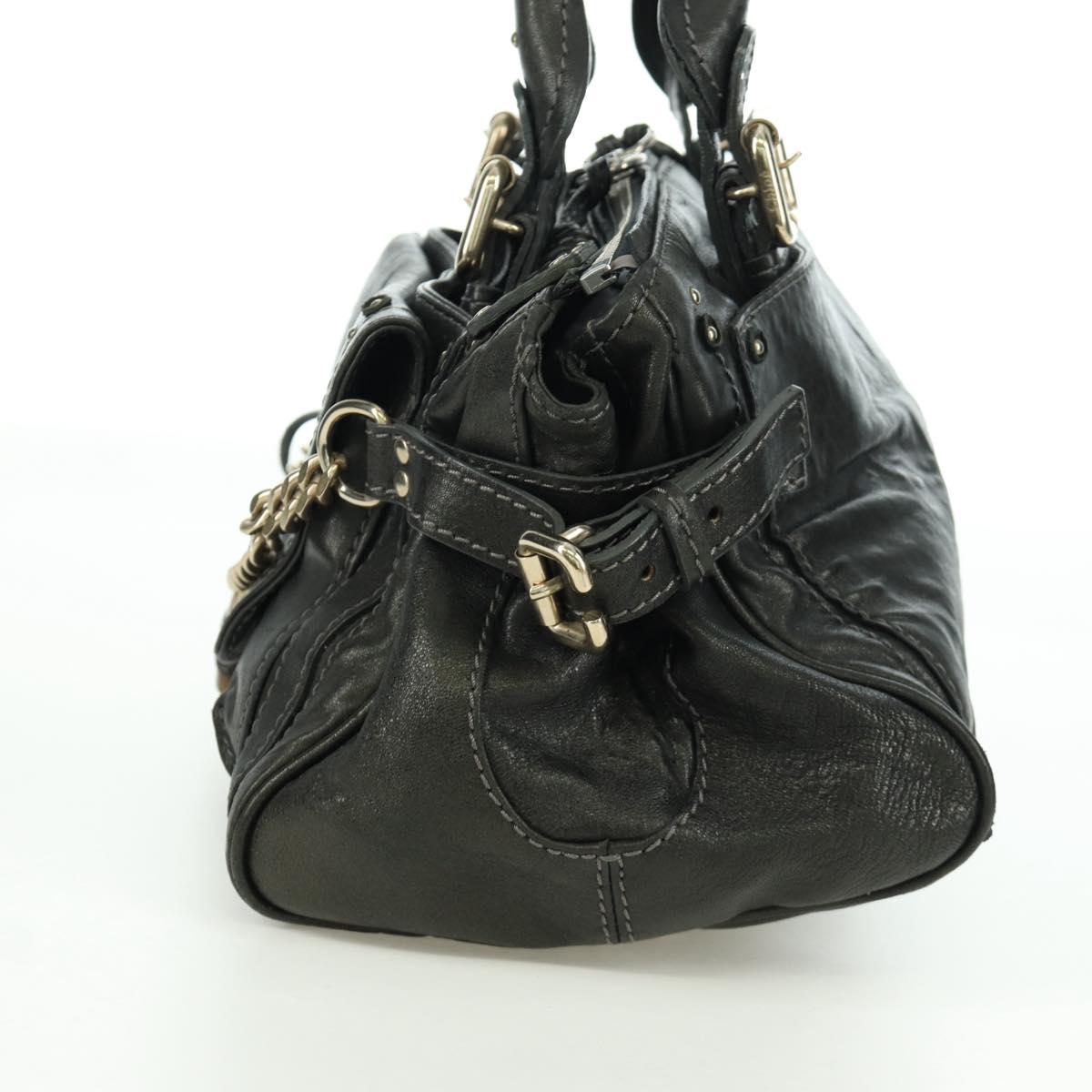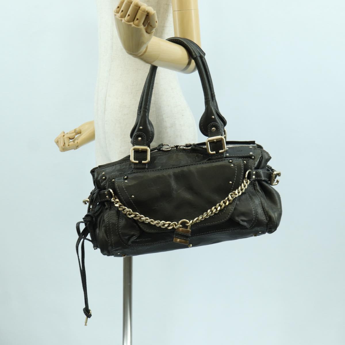 Chloe Paddington Hand Bag Leather Black Gold Silver Auth bs33836A